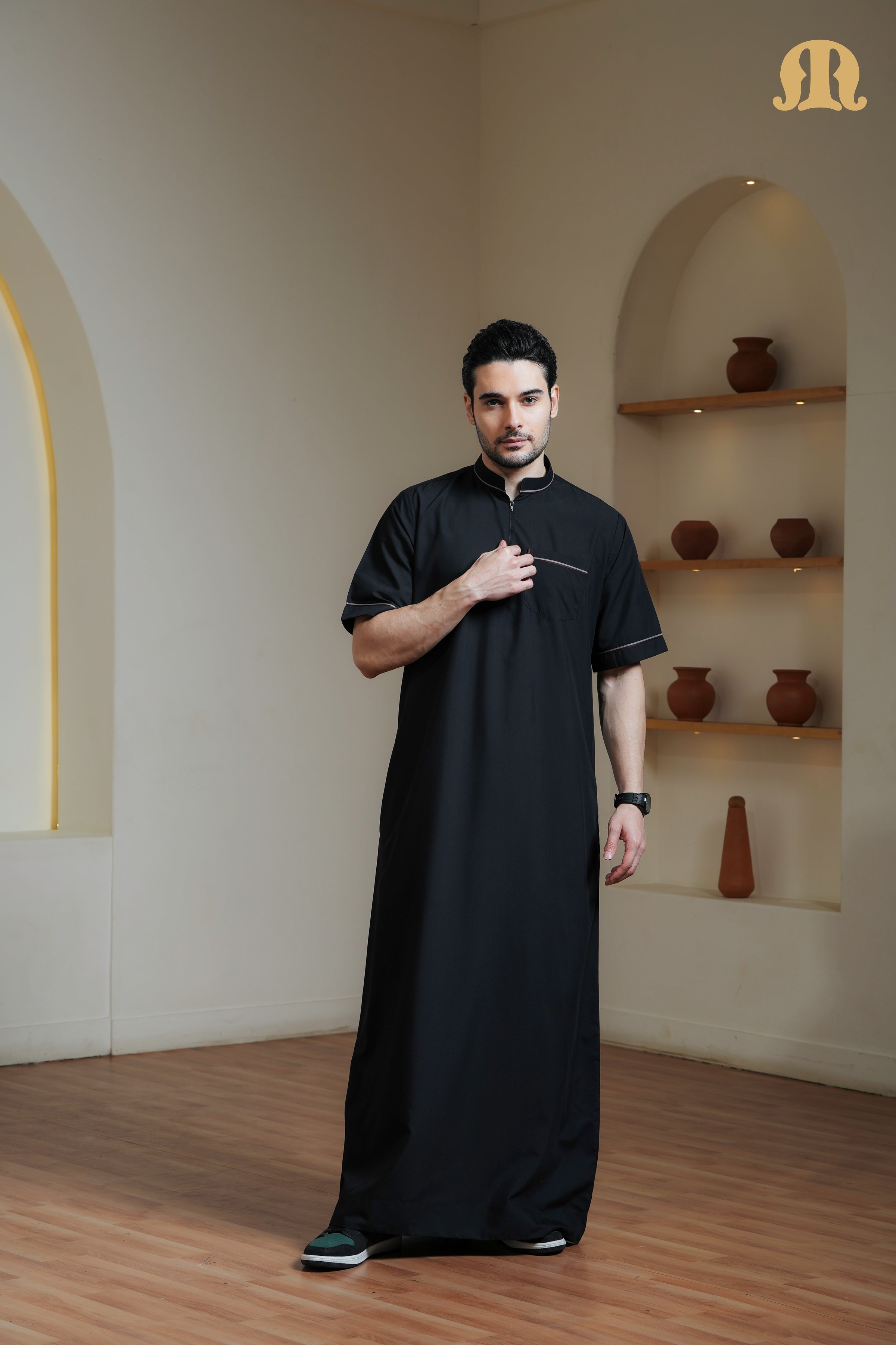 Black Basico Half Sleeve Thobe Men