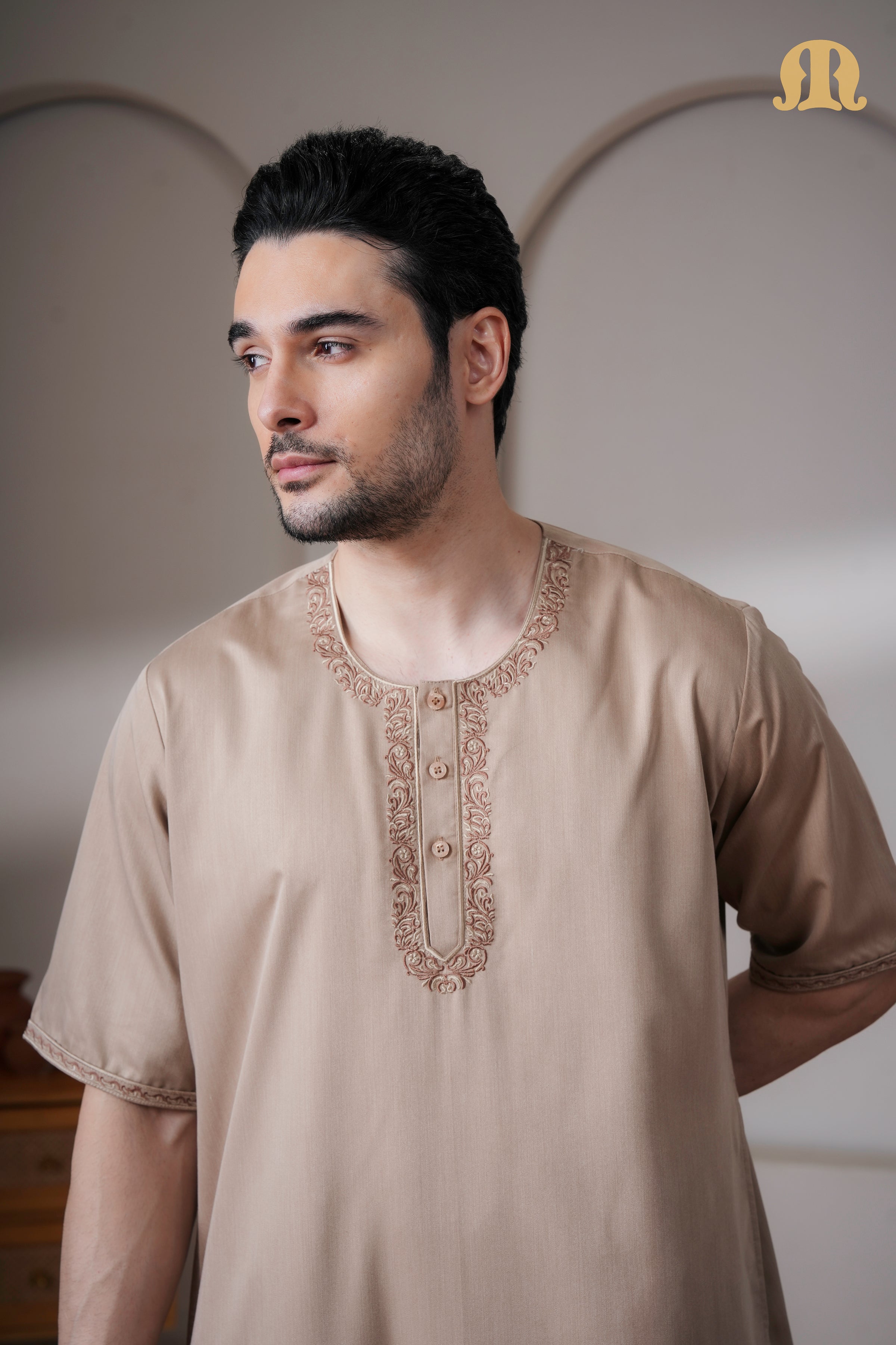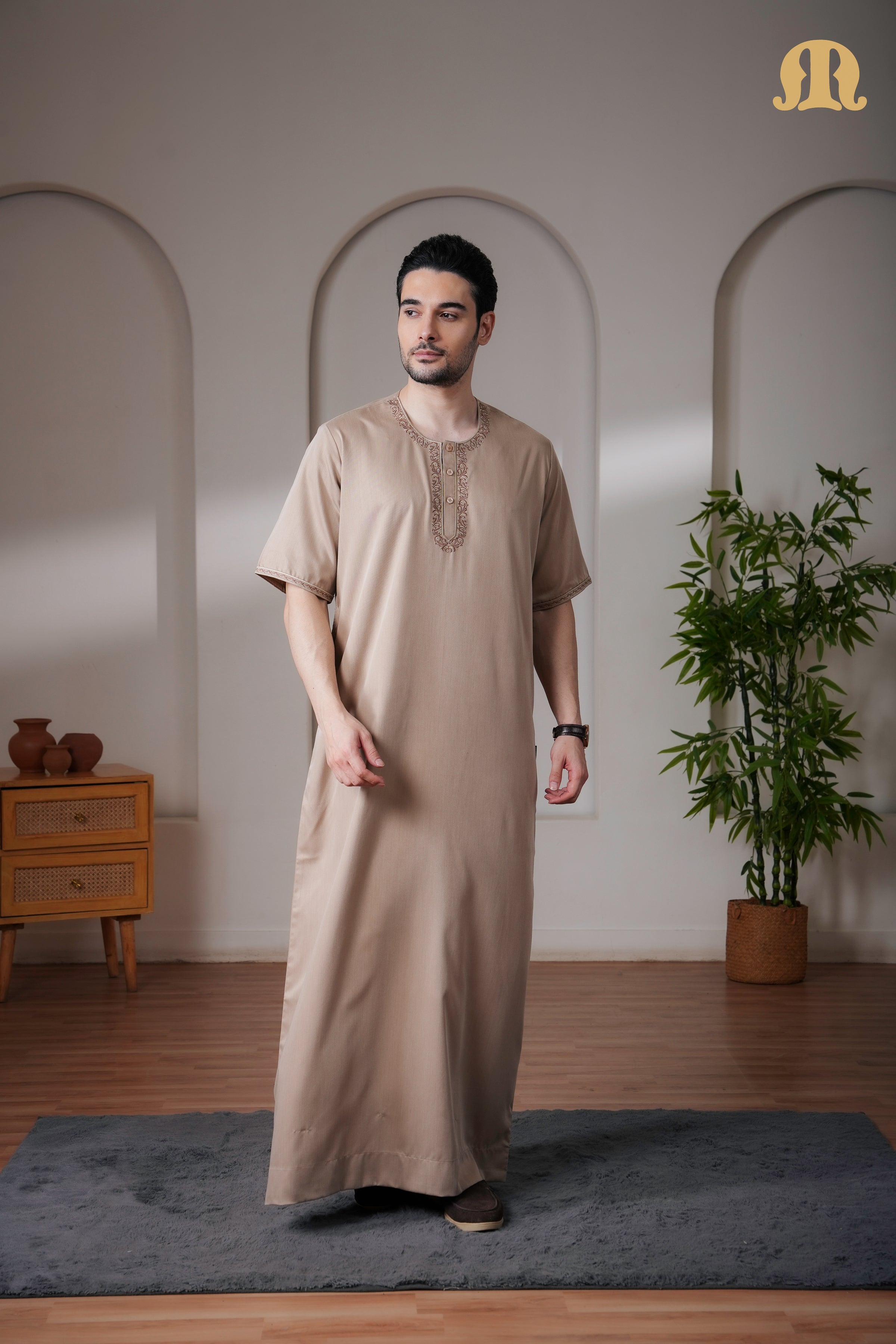Beige Andak Half Sleeve Thobe Mens