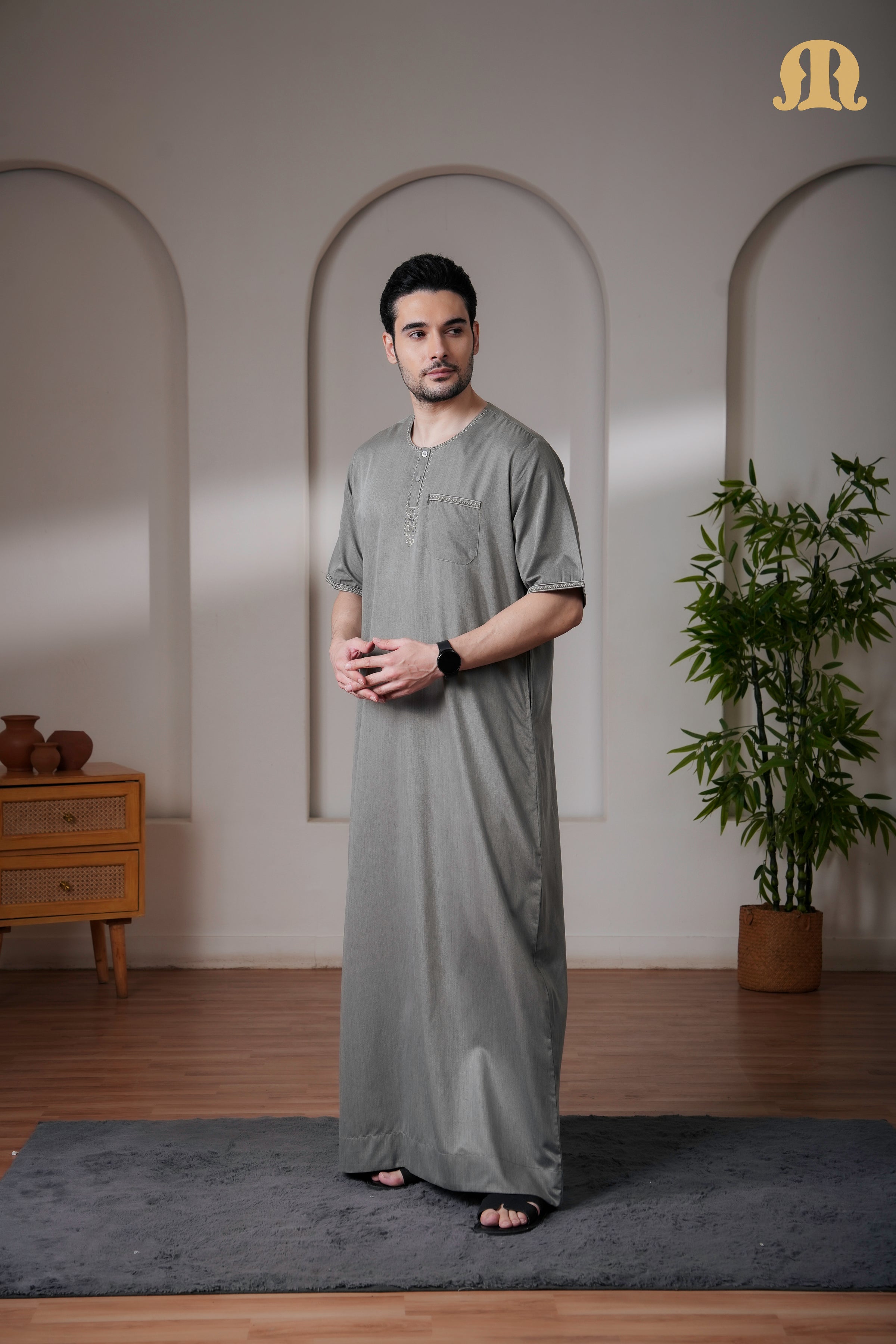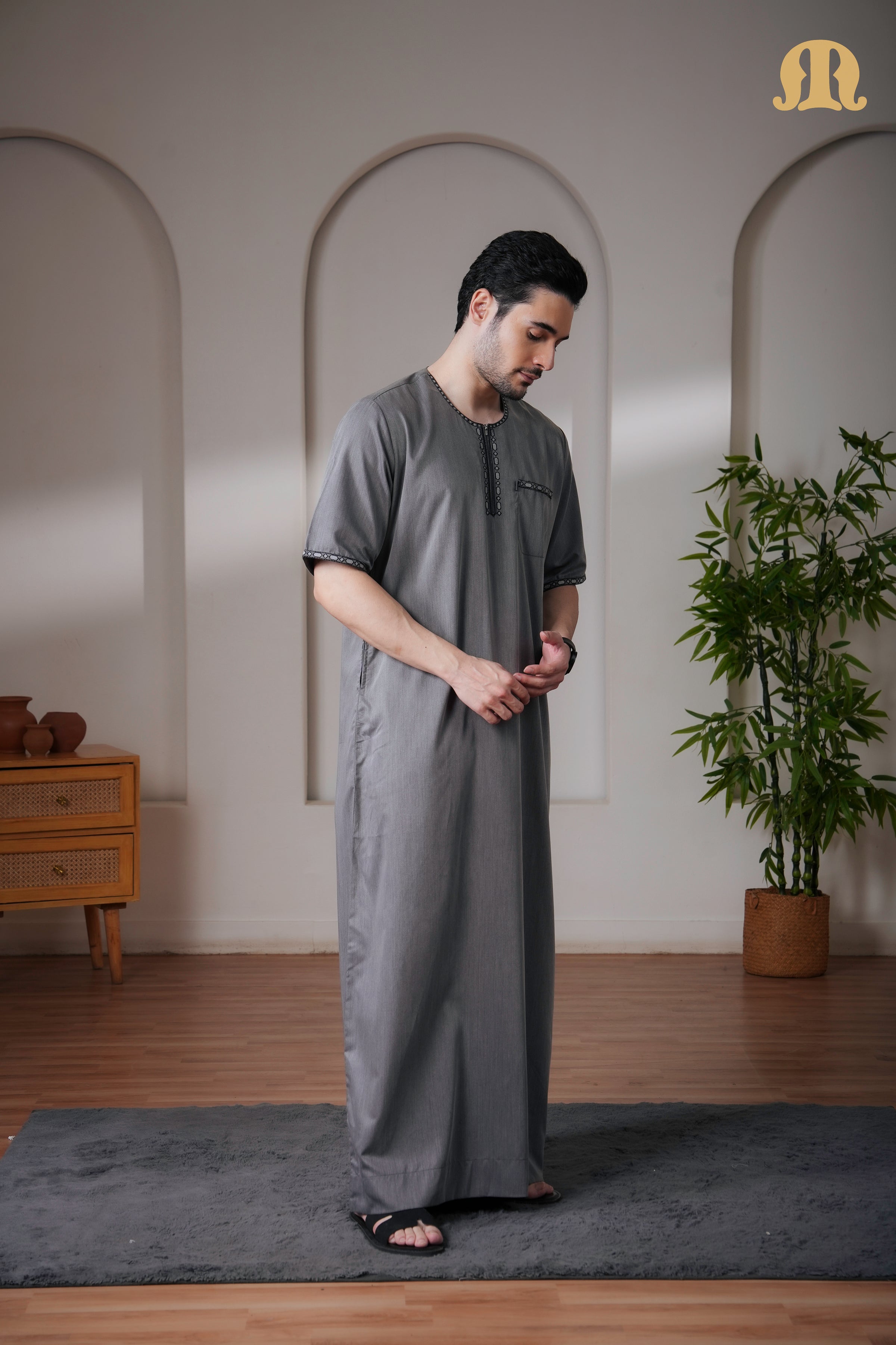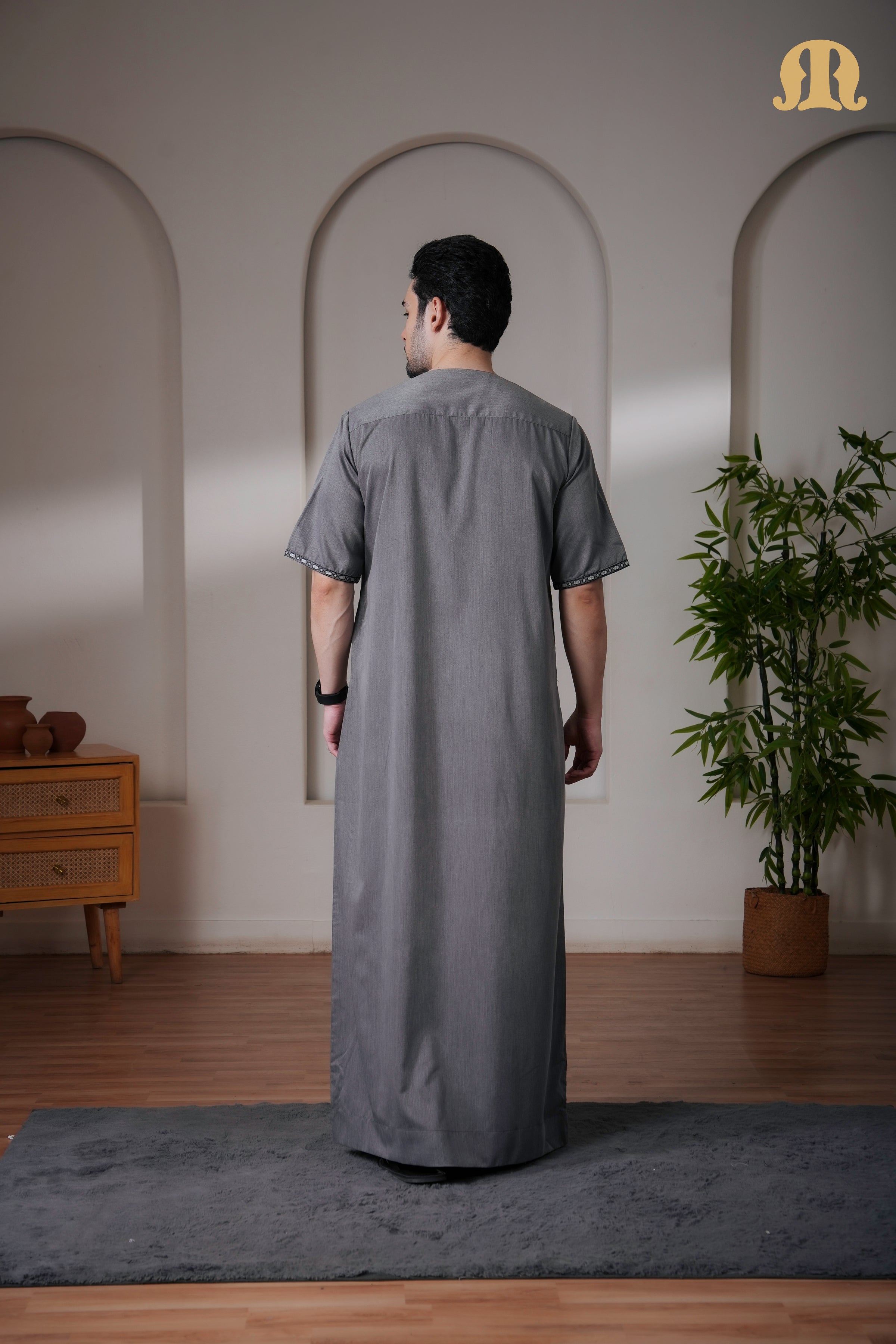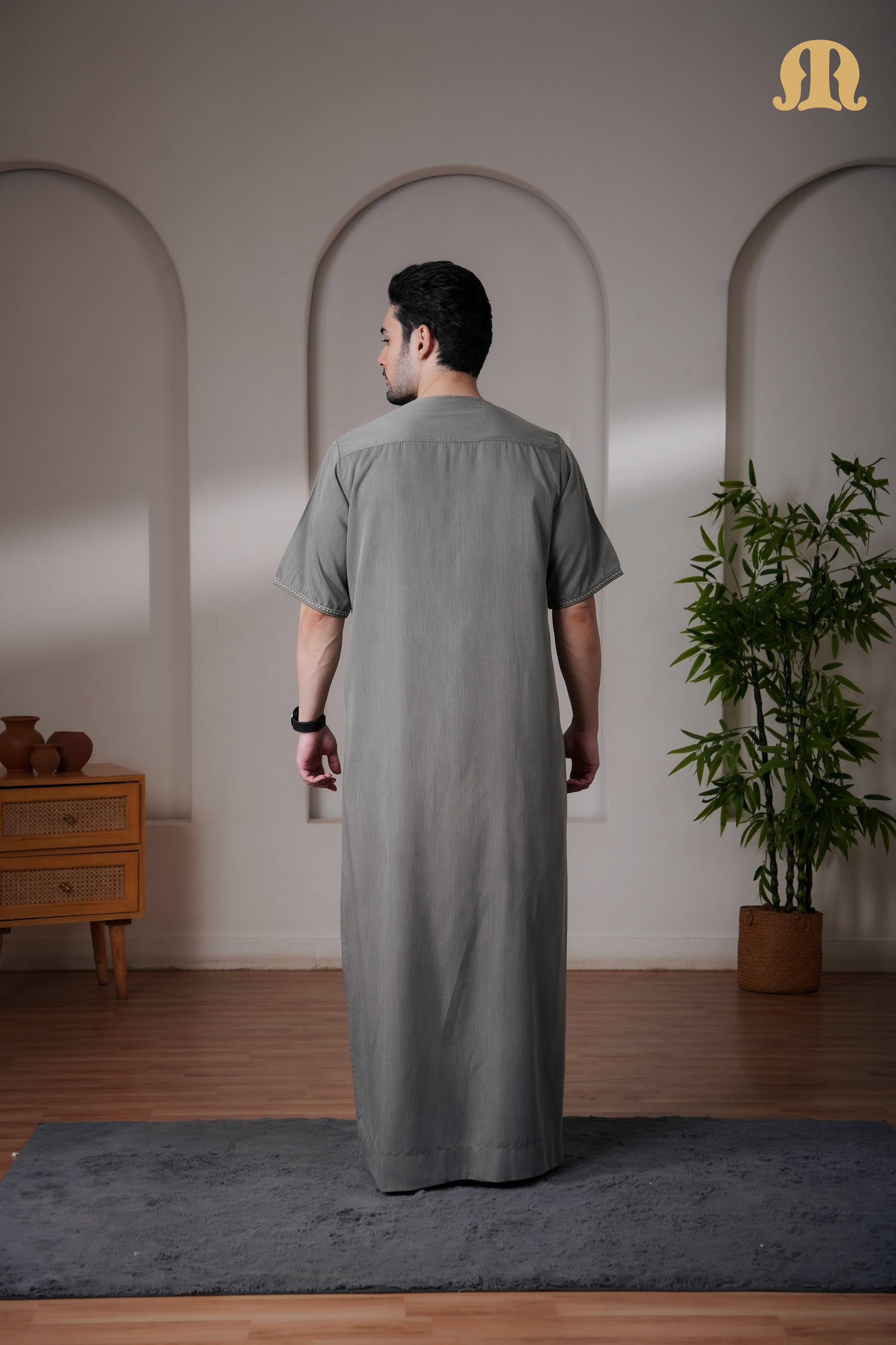 Grey Jazeb Half Sleeve Thobe Men