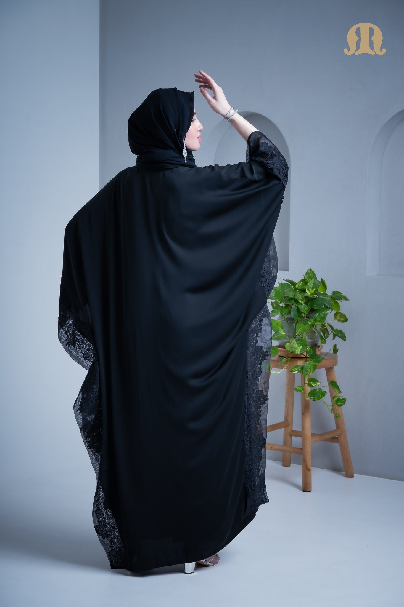 Introducing the Spitze Kaftan Abaya, where simplicity meets exquisite detailing. This kaftan is crafted from high-quality Korean Nida fabric, known for its smooth texture and lightweight feel, ensuring a comfortable fit that moves gracefully with you throughout the day.