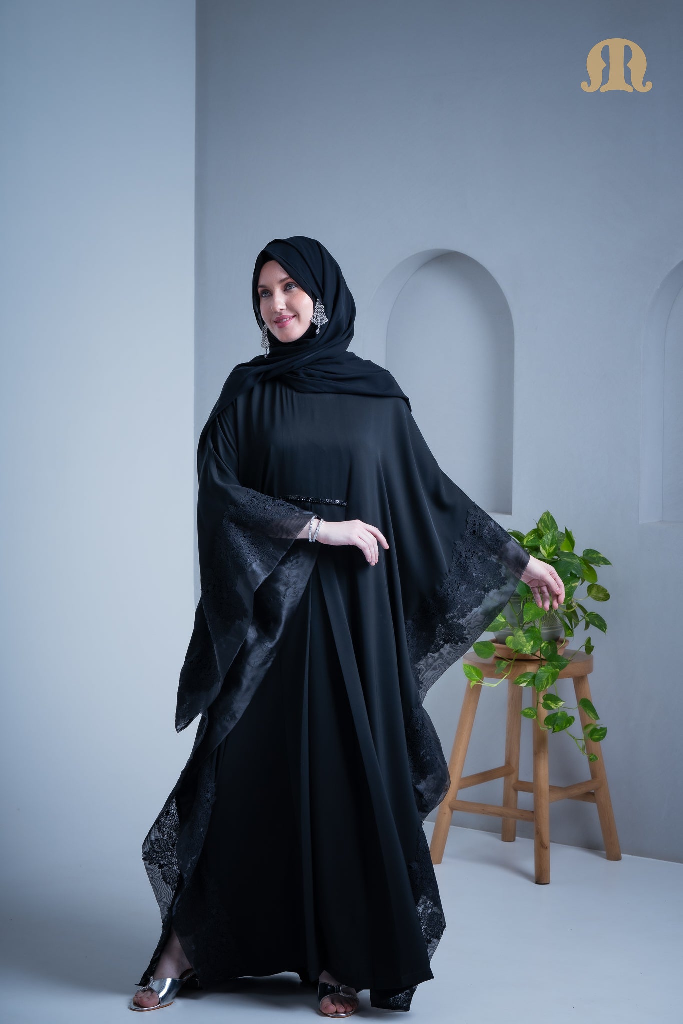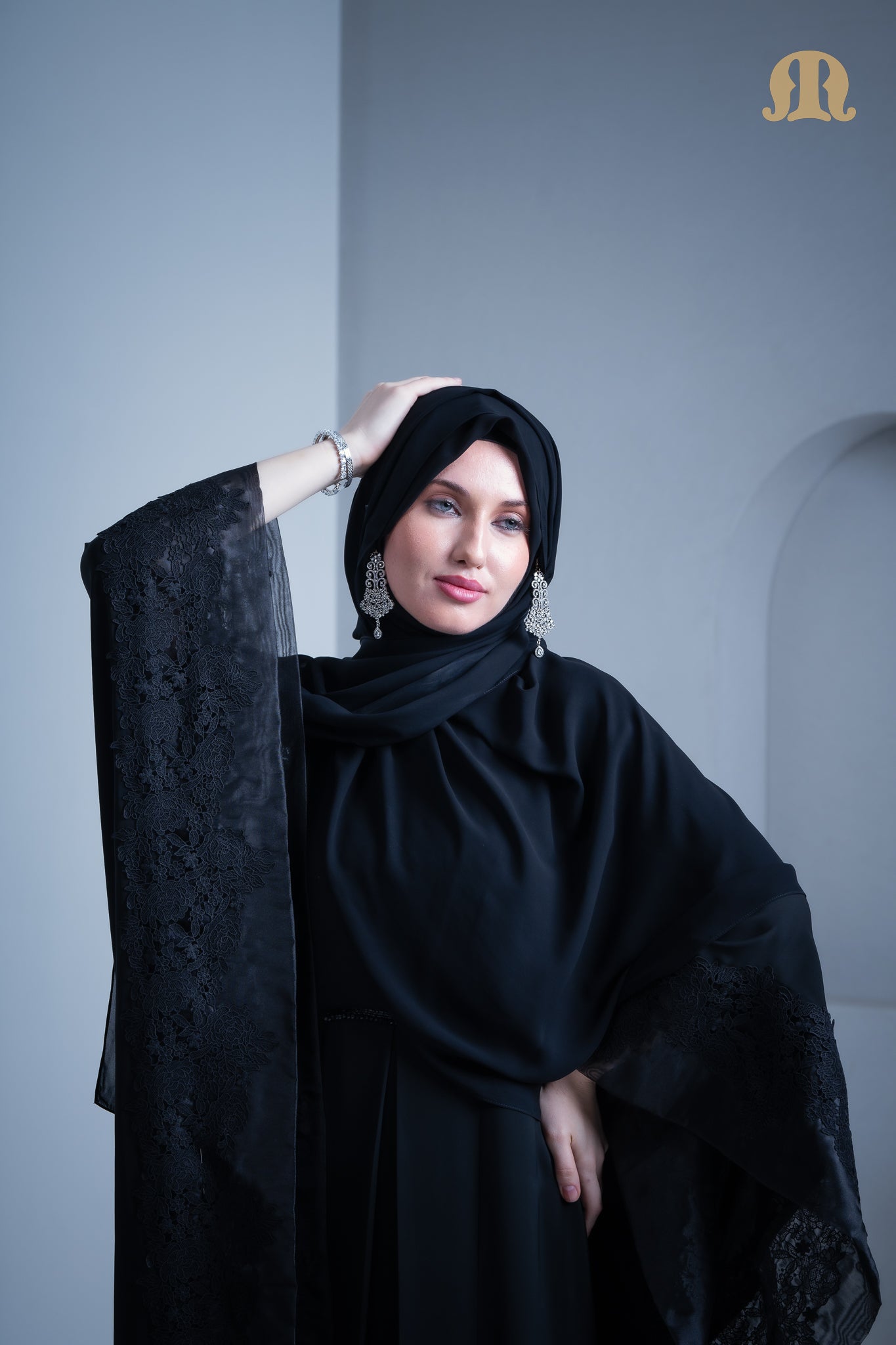 Step into refined elegance with the Spitze Kaftan Abaya. Designed for those who appreciate sophisticated simplicity, this kaftan features intricate Korean lace detailing and a flattering belt at the waist, all crafted from luxurious Chinese Nida fabric.