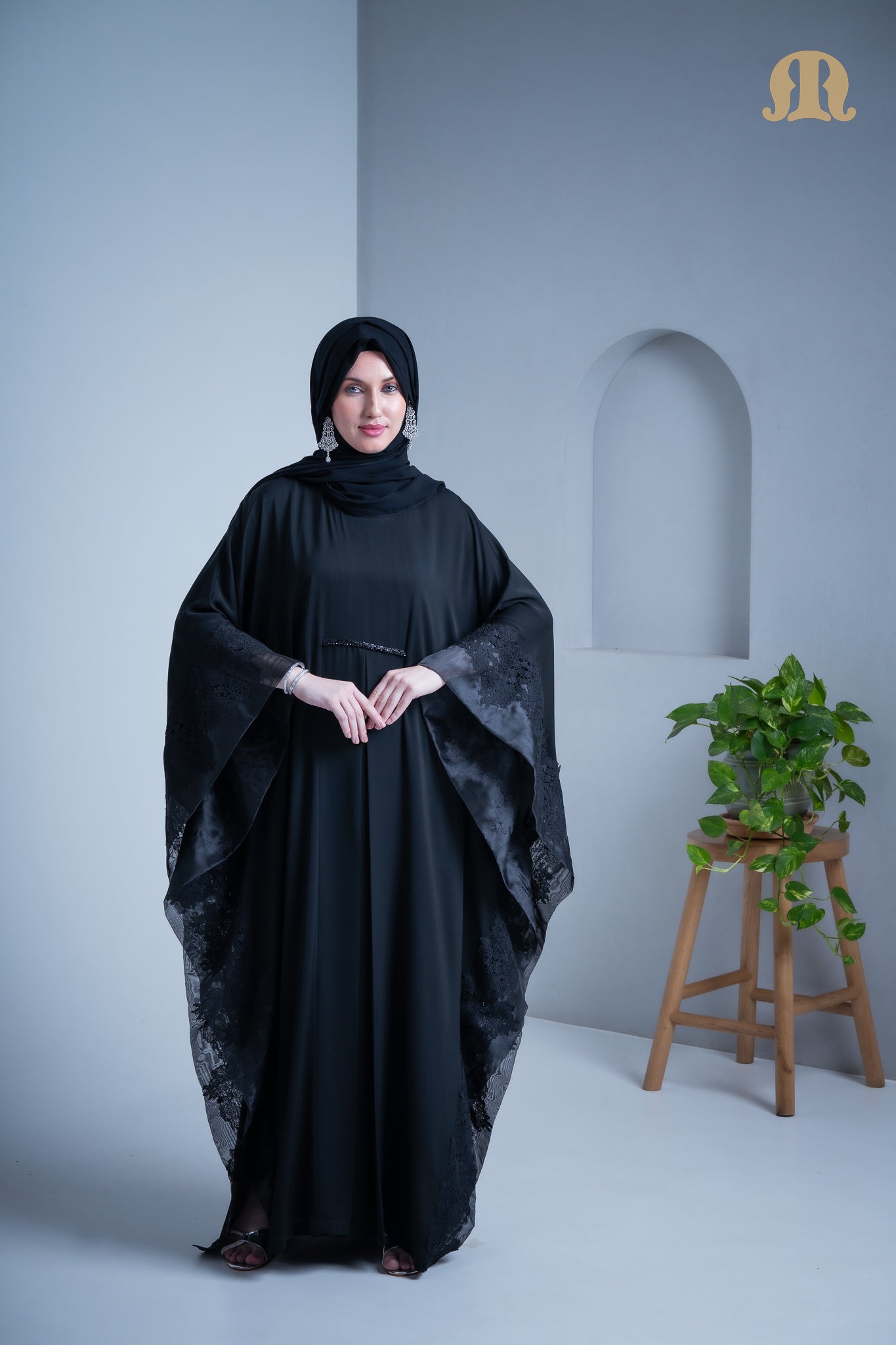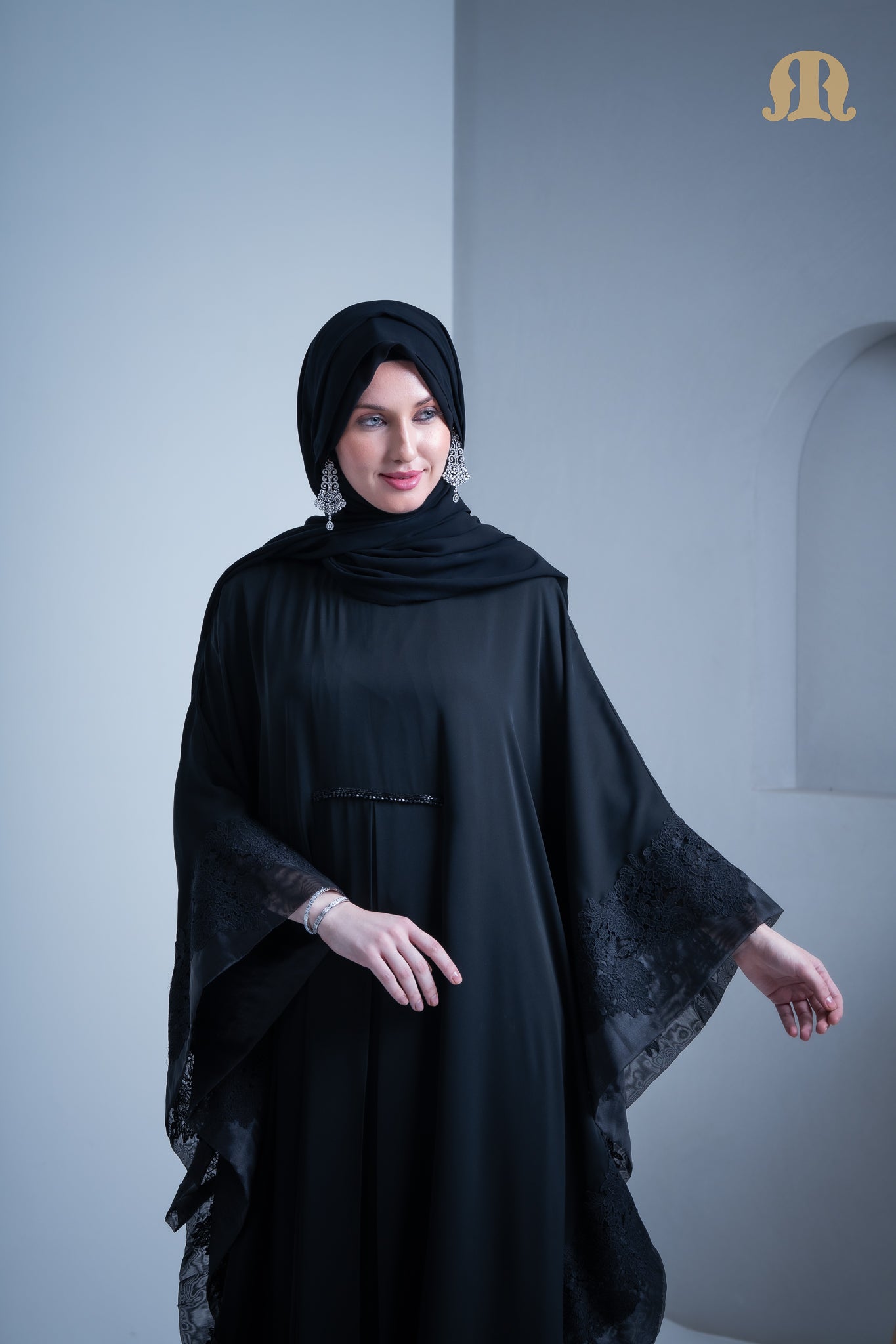 The Sekler Kaftan Abaya is adorned with delicate Korean lace, which enhances the design with a touch of timeless charm. The lace detailing is carefully placed to complement the overall silhouette, adding a layer of sophistication without overwhelming the kaftan’s clean lines.