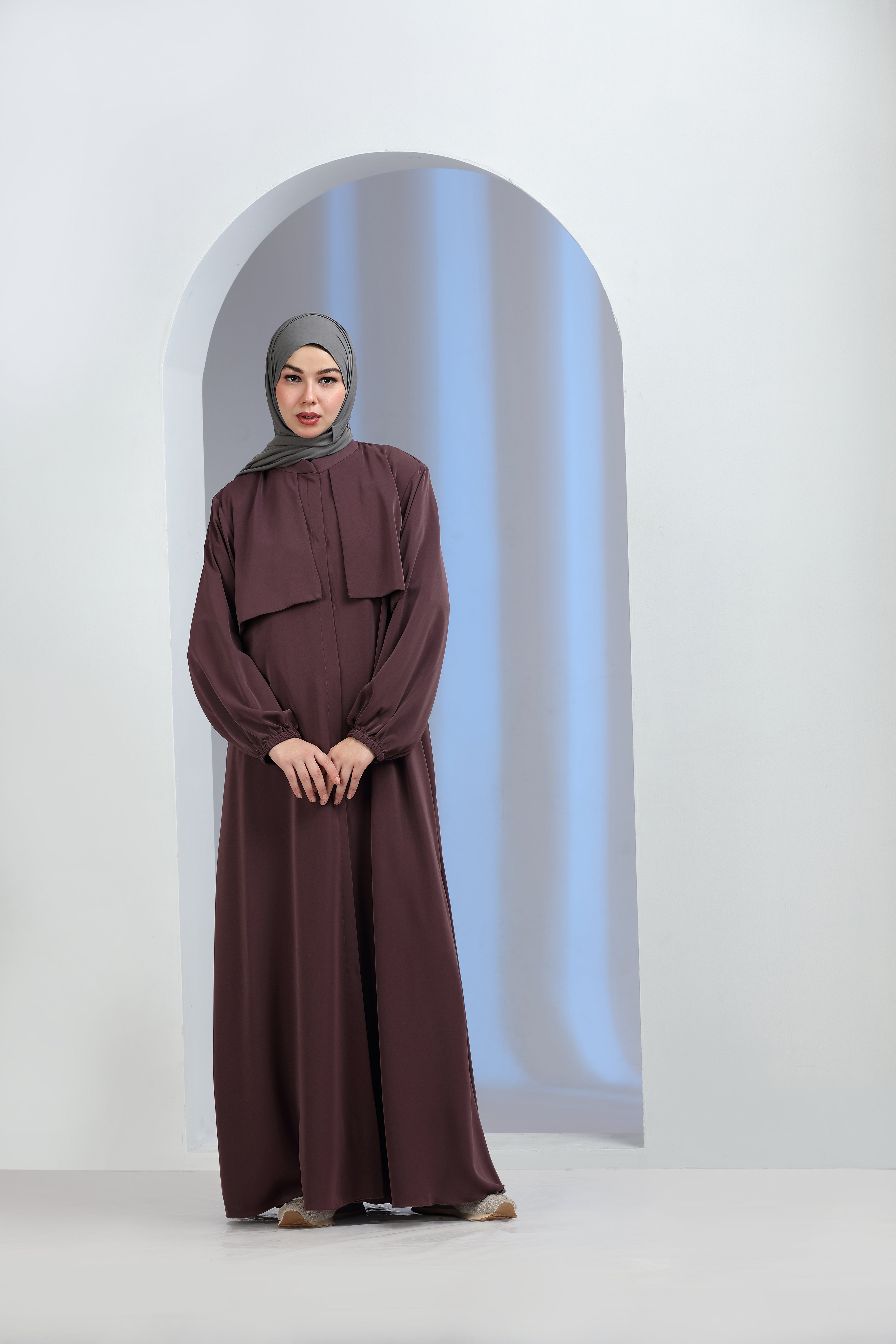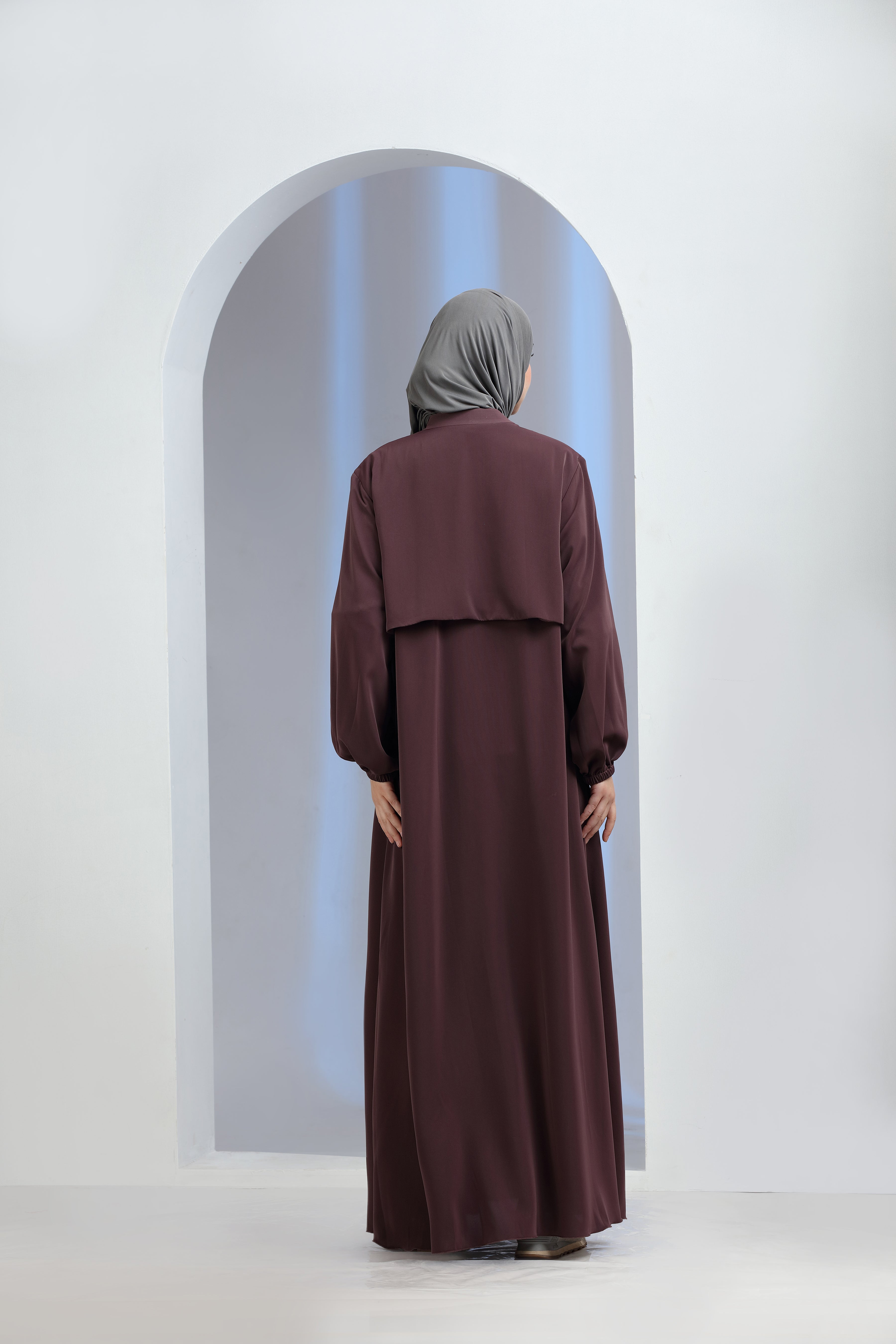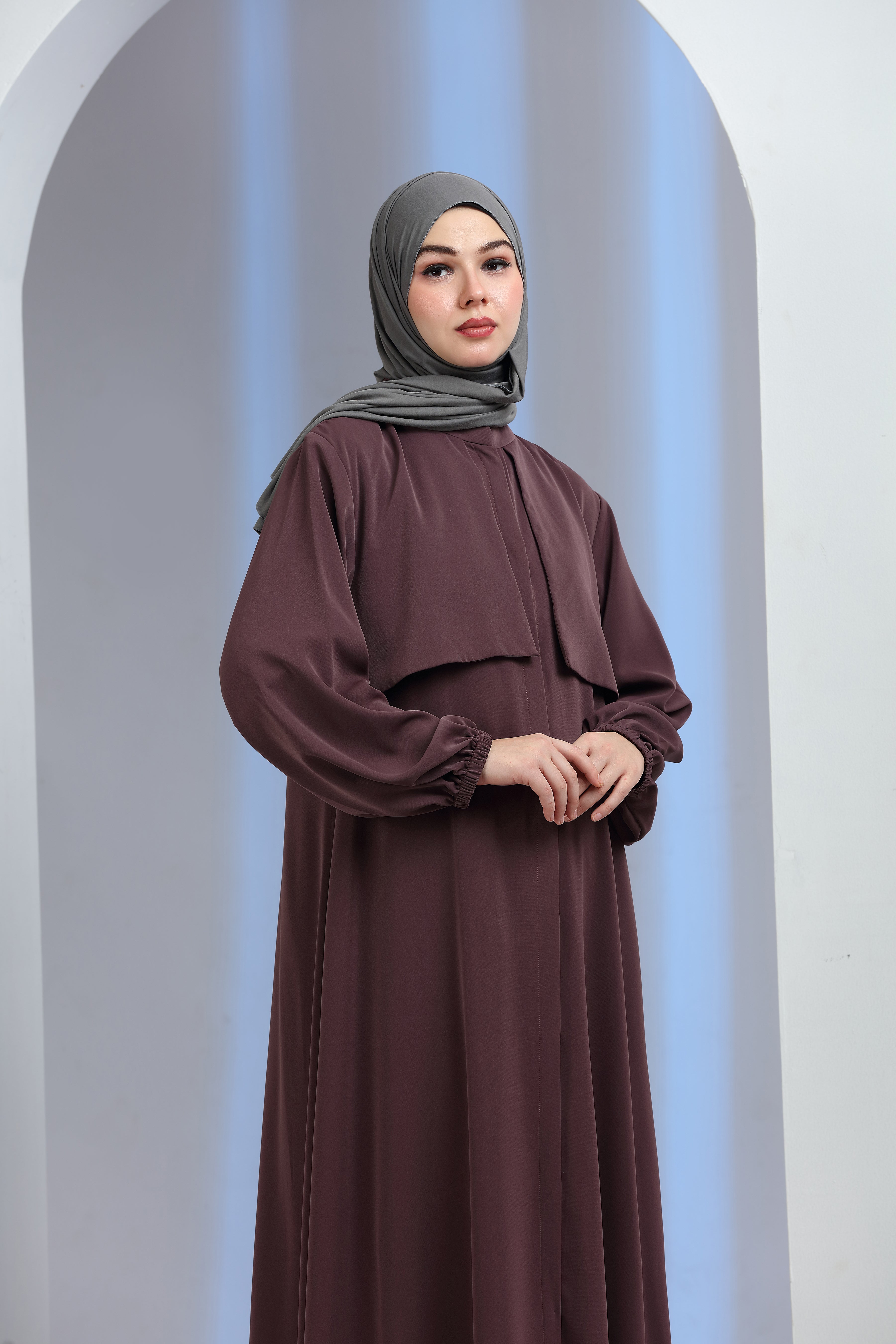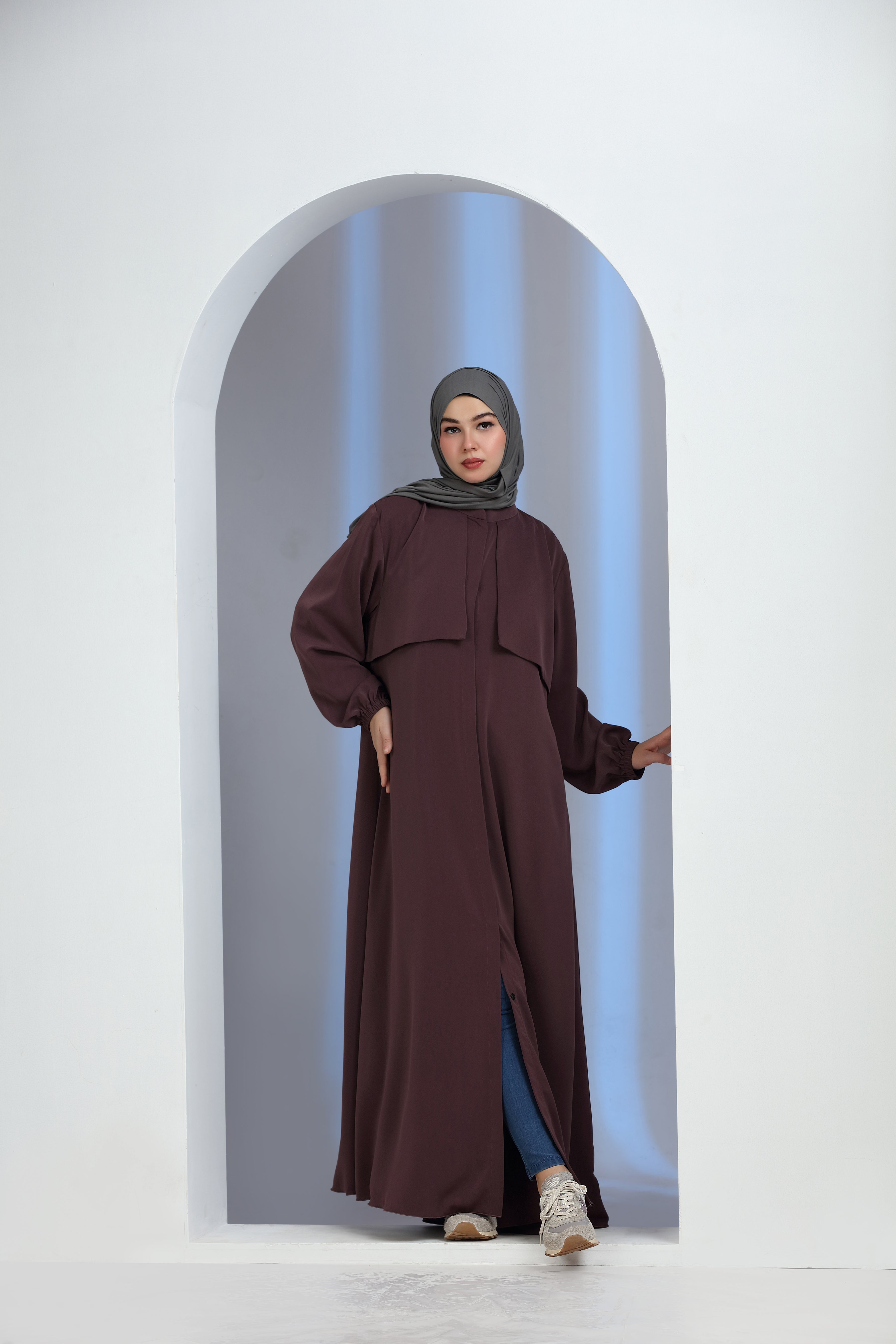 The Fina Abaya is a graceful blend of modern minimalism and timeless modest elegance. Designed with a soft layered front panel and a flowing full-length silhouette, this abaya offers refined coverage with a subtle contemporary touch.