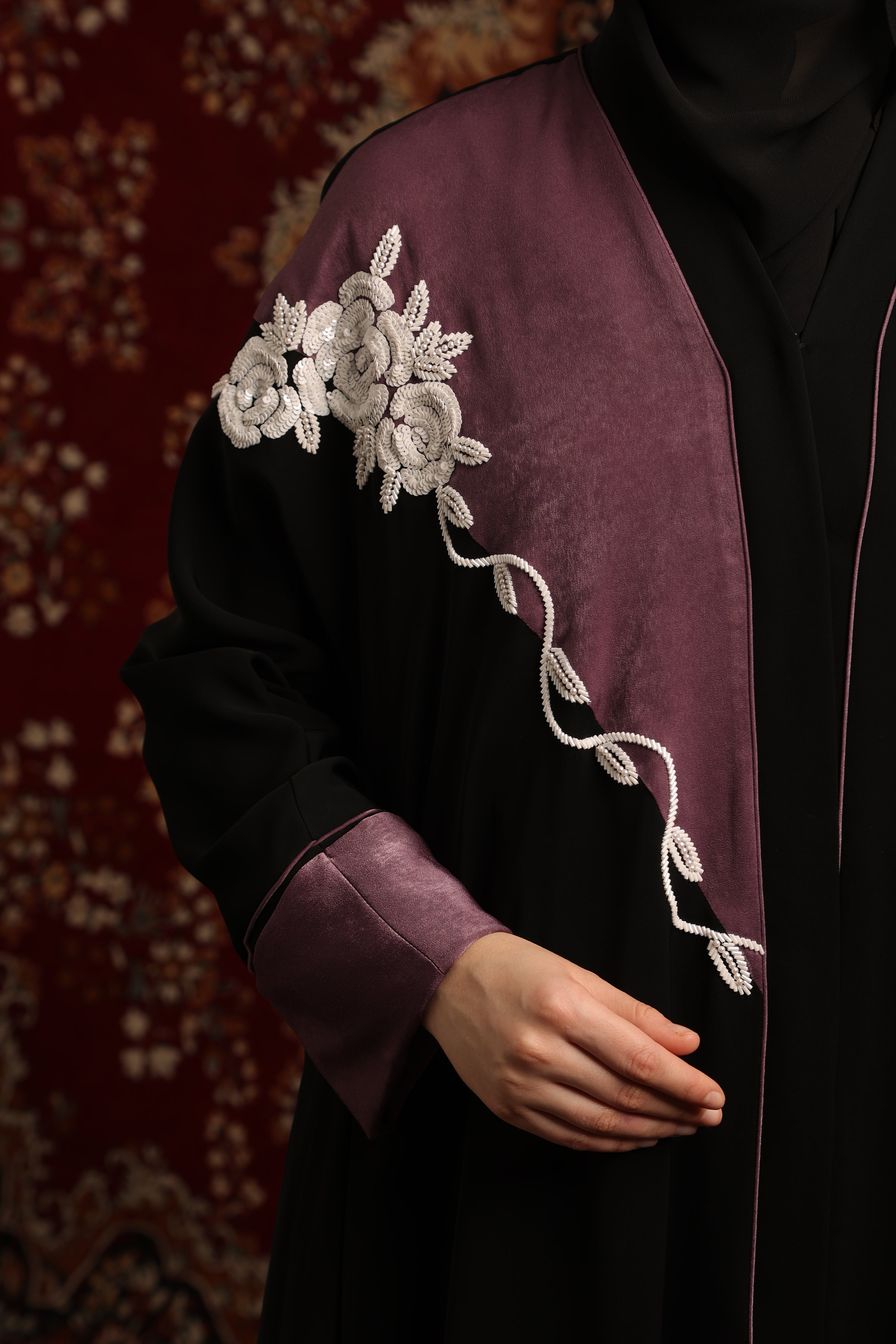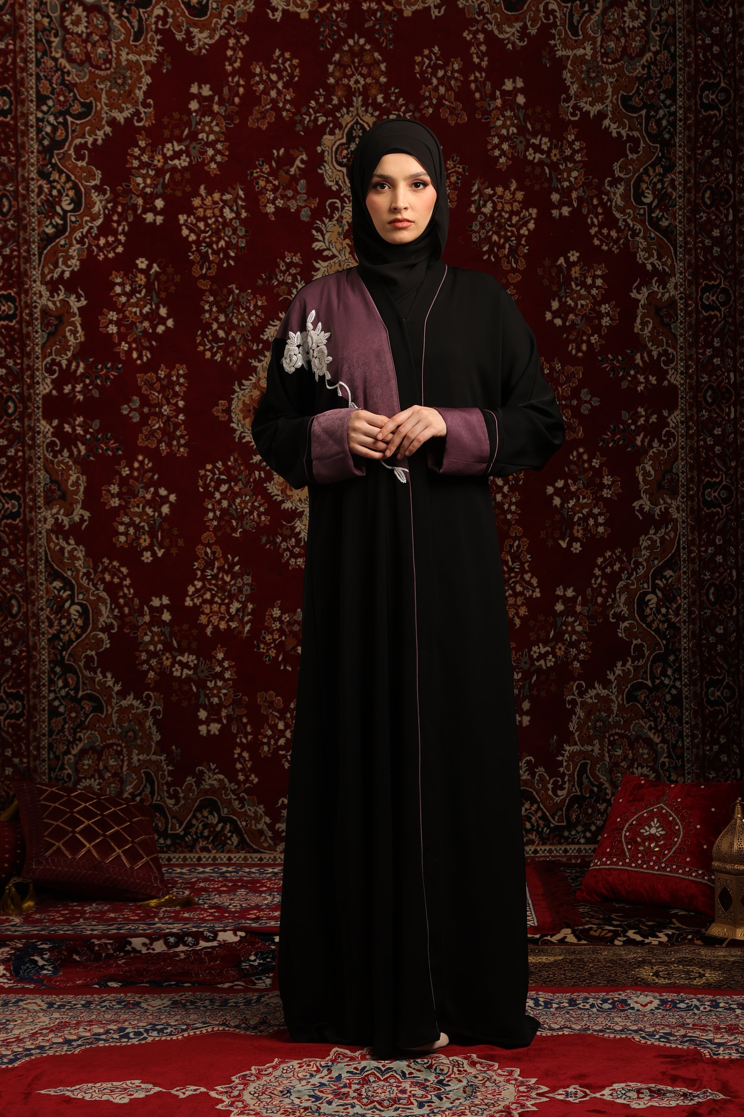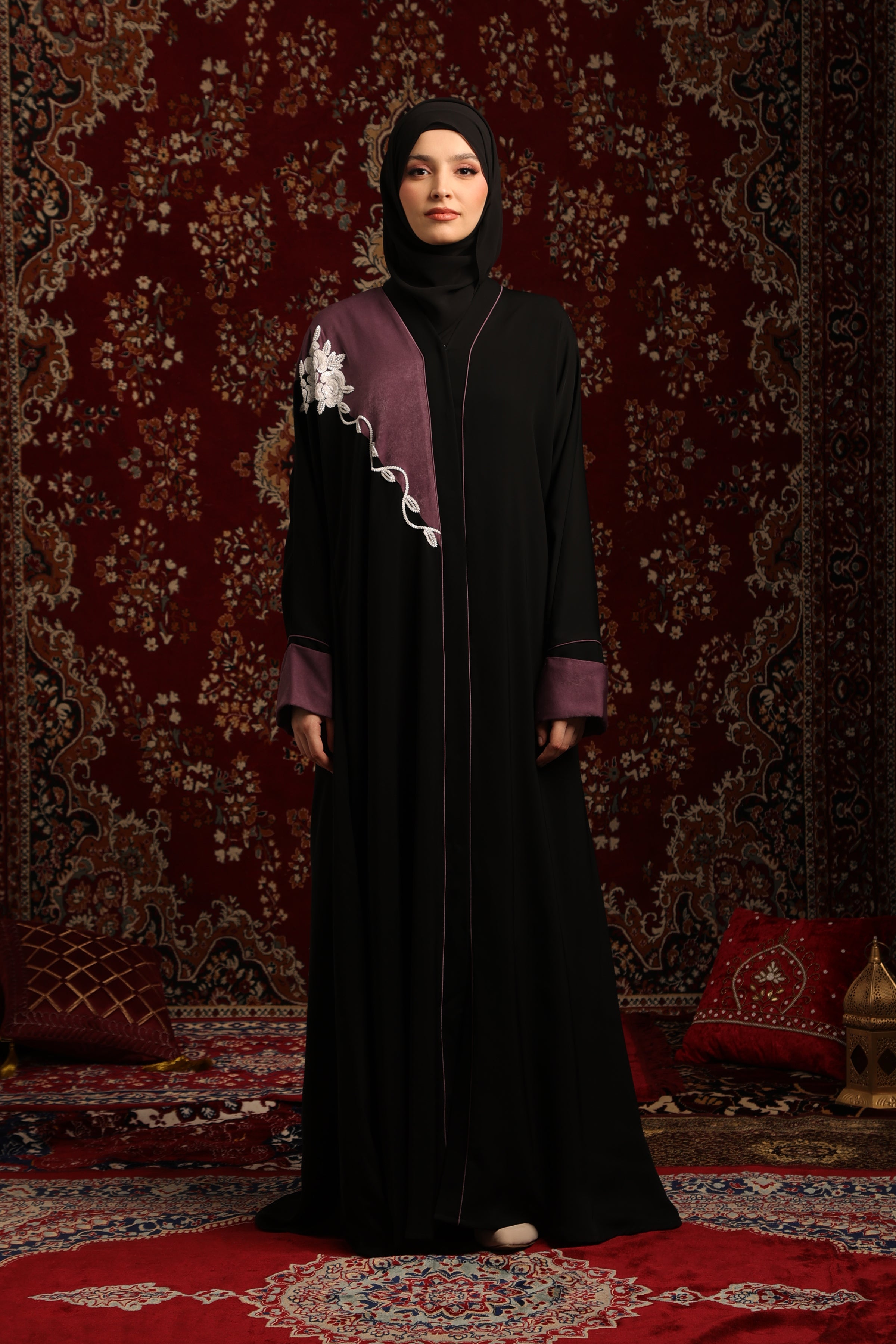استمتعي بفخامة راقية مع عباية لوكس بلونها الموف الساحر. تجمع هذه القطعة الرائعة بين الأناقة الخالدة والحرفية المتقنة، لتمنحكِ إطلالة أنيقة في أجمل لحظاتكِ.