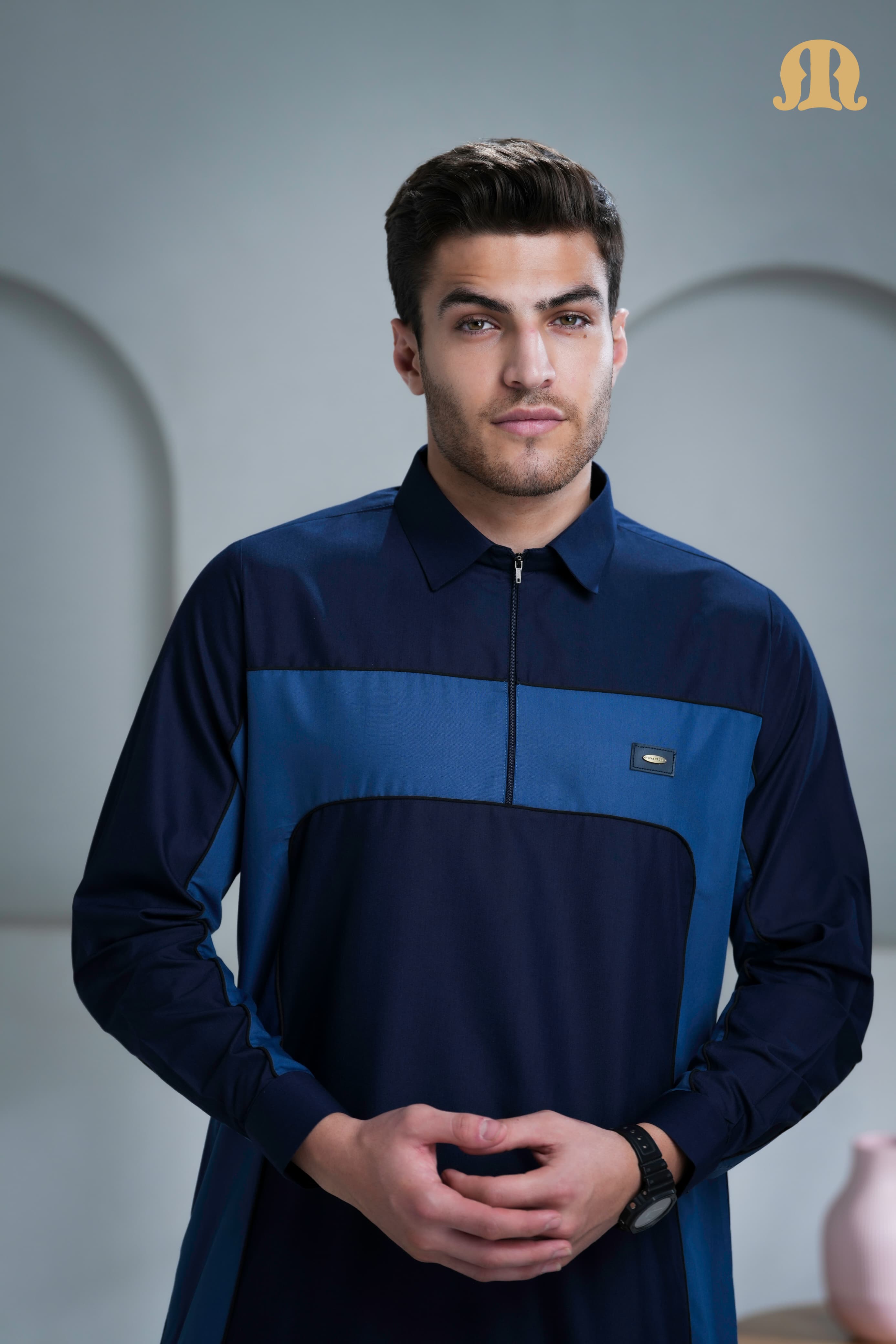 Add a touch of modern sophistication to your traditional wear with our Birkir Navy Blue Denim Thobe.