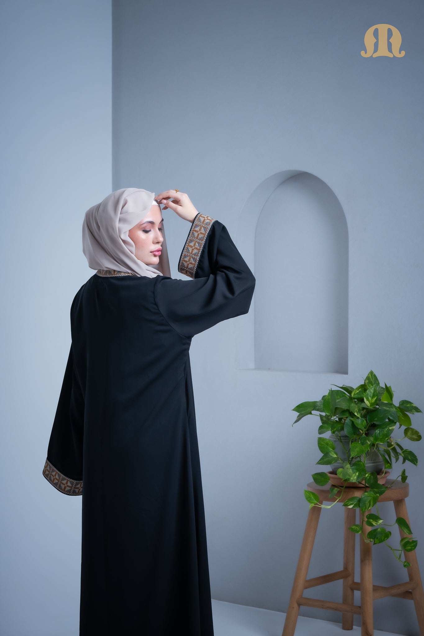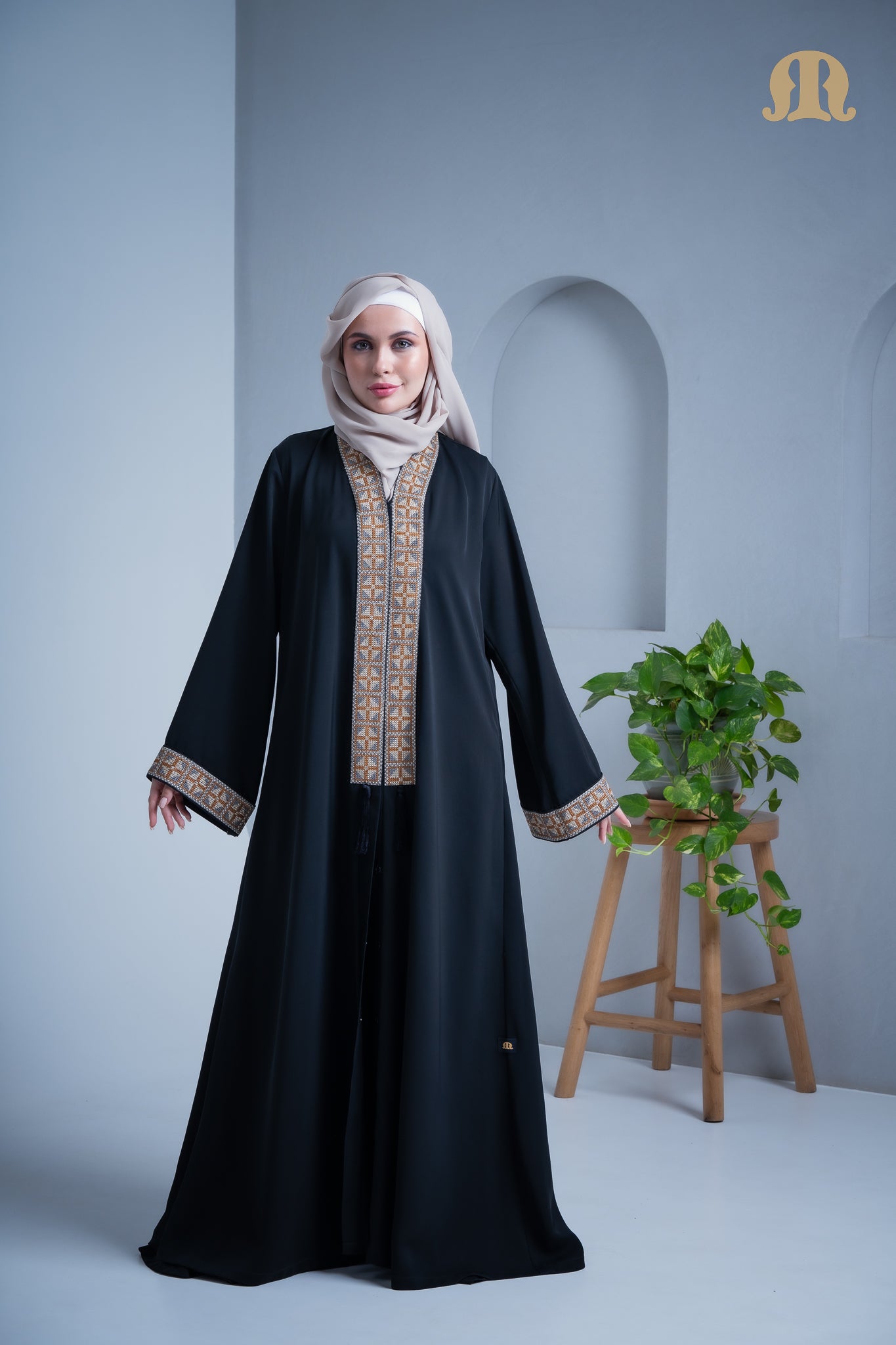 Discover the perfect balance of tradition and modernity with the Elmas Abaya by Mashroo. Its unique details and superior craftsmanship make it a standout addition to any wardrobe, embodying both style and sophistication.