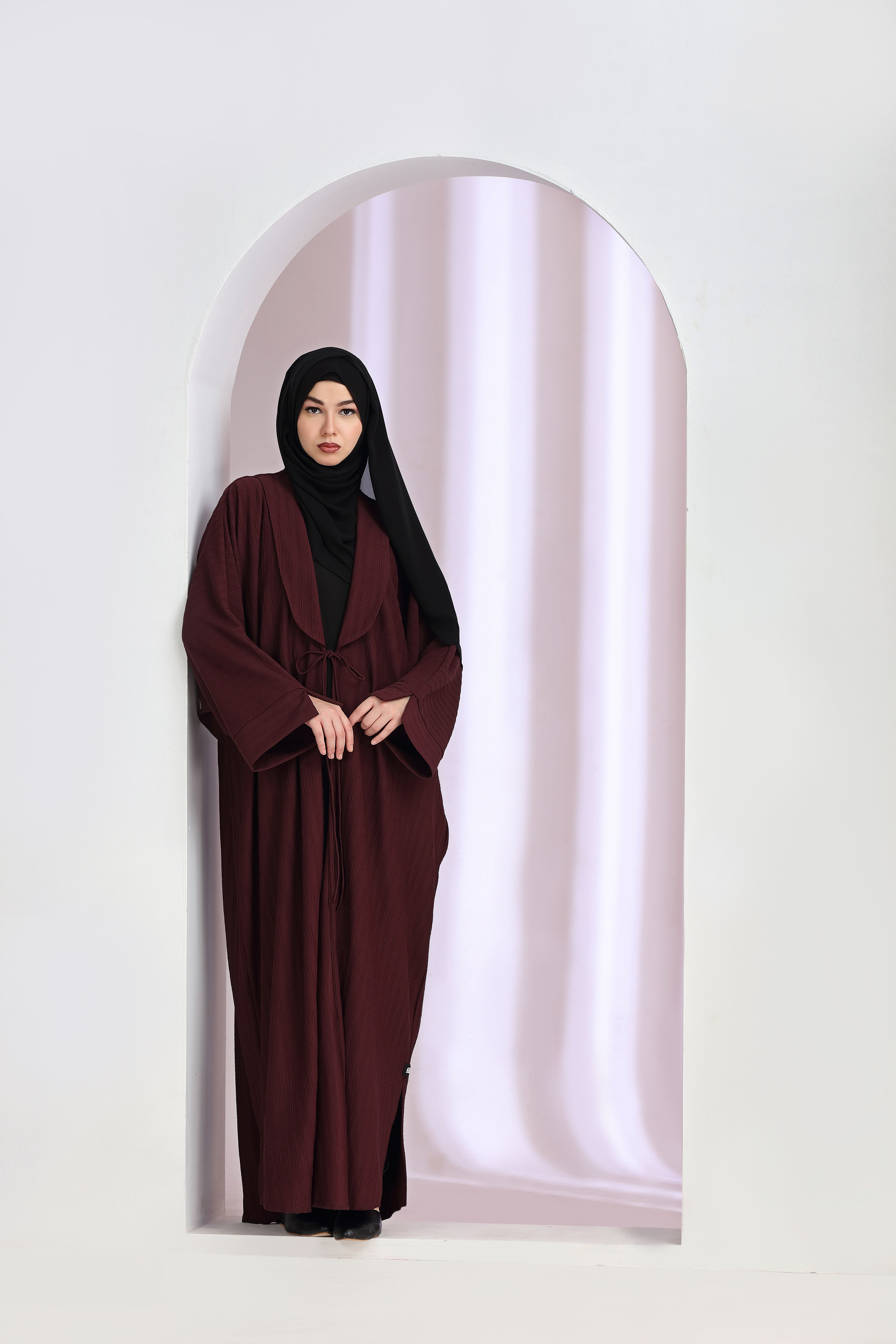 Aiza Shrug Abaya Maroon Elevate your modest fashion with the Aiza Shrug Abaya in Maroon—a sophisticated layering piece that seamlessly blends contemporary design with traditional elegance. Crafted for versatility, this shrug abaya features a refined silhouette that drapes gracefully over your everyday wear, offering effortless coverage without compromising on style. The neutral cream tone pairs beautifully with any wardrobe, making it an essential investment for those who value both comfort and understated luxury. Perfect for layering over kurtas, dresses, or traditional garments, this piece embodies minimalist sophistication for the modern woman.