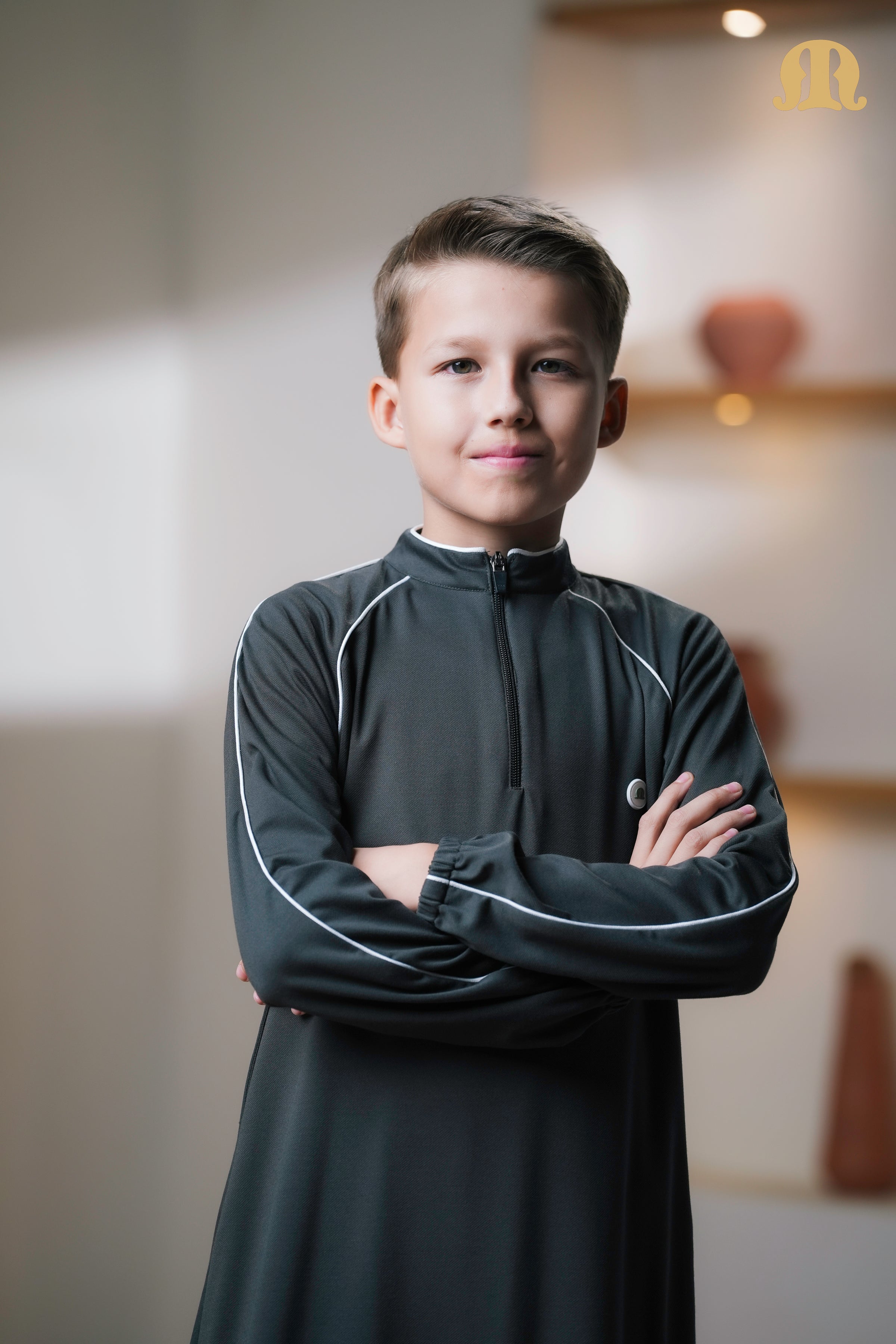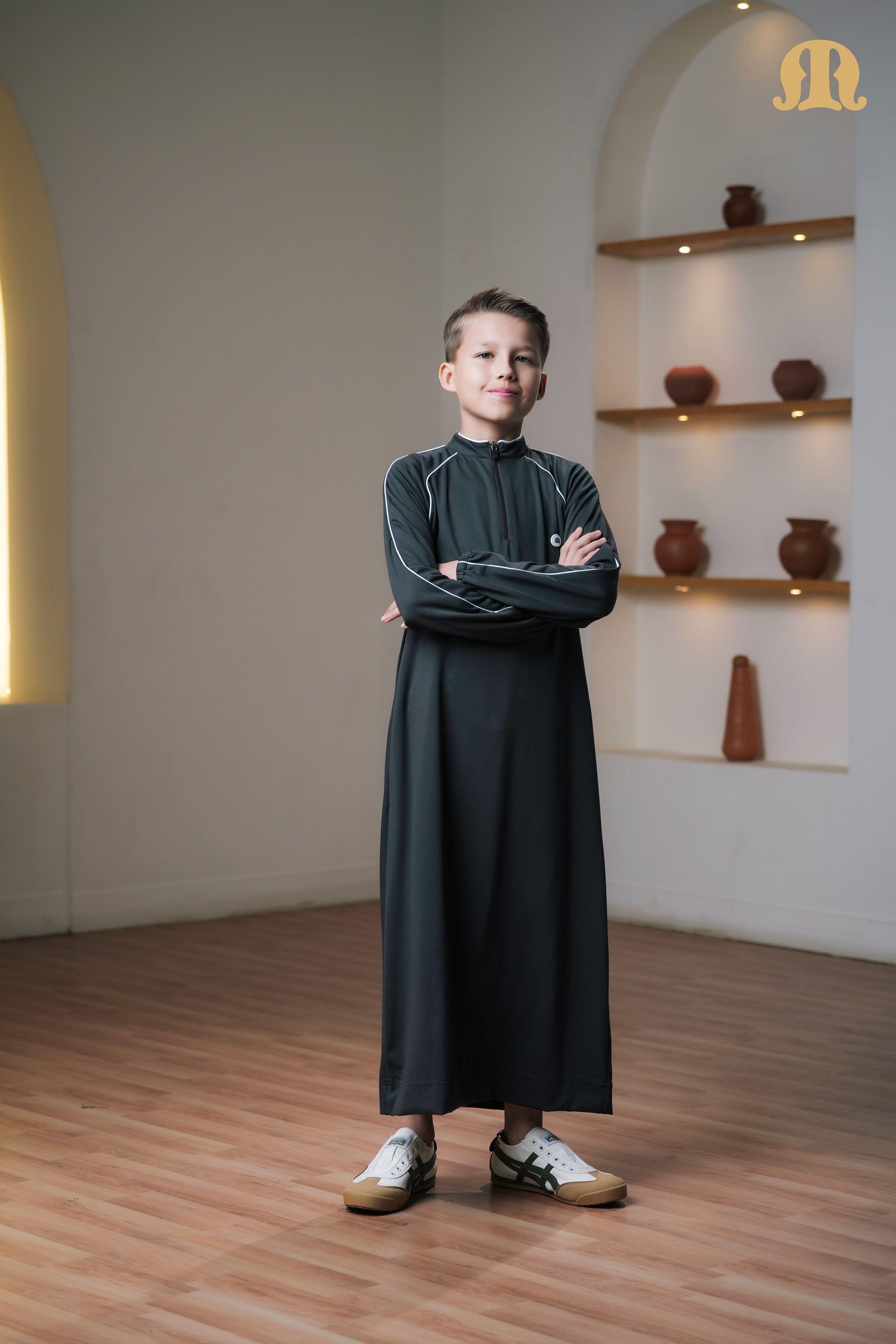 Blending traditional form with athleisure styling, this thobe features a soft band collar and stretchable elastic cuffs for a snug yet comfortable fit. The front zip closure adds practicality and a contemporary touch, while the Mashroo logo on the front provides subtle brand identity.