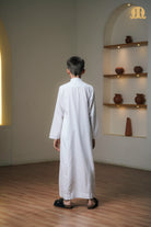 The Kurvig Saudi 2.0 White Thobe embodies understated sophistication with a strong sense of tradition. Tailored in the classic Saudi silhouette, it features a clean, straight fall and a refined collar neckline that delivers a sharp, dignified look suitable for both formal and everyday wear.