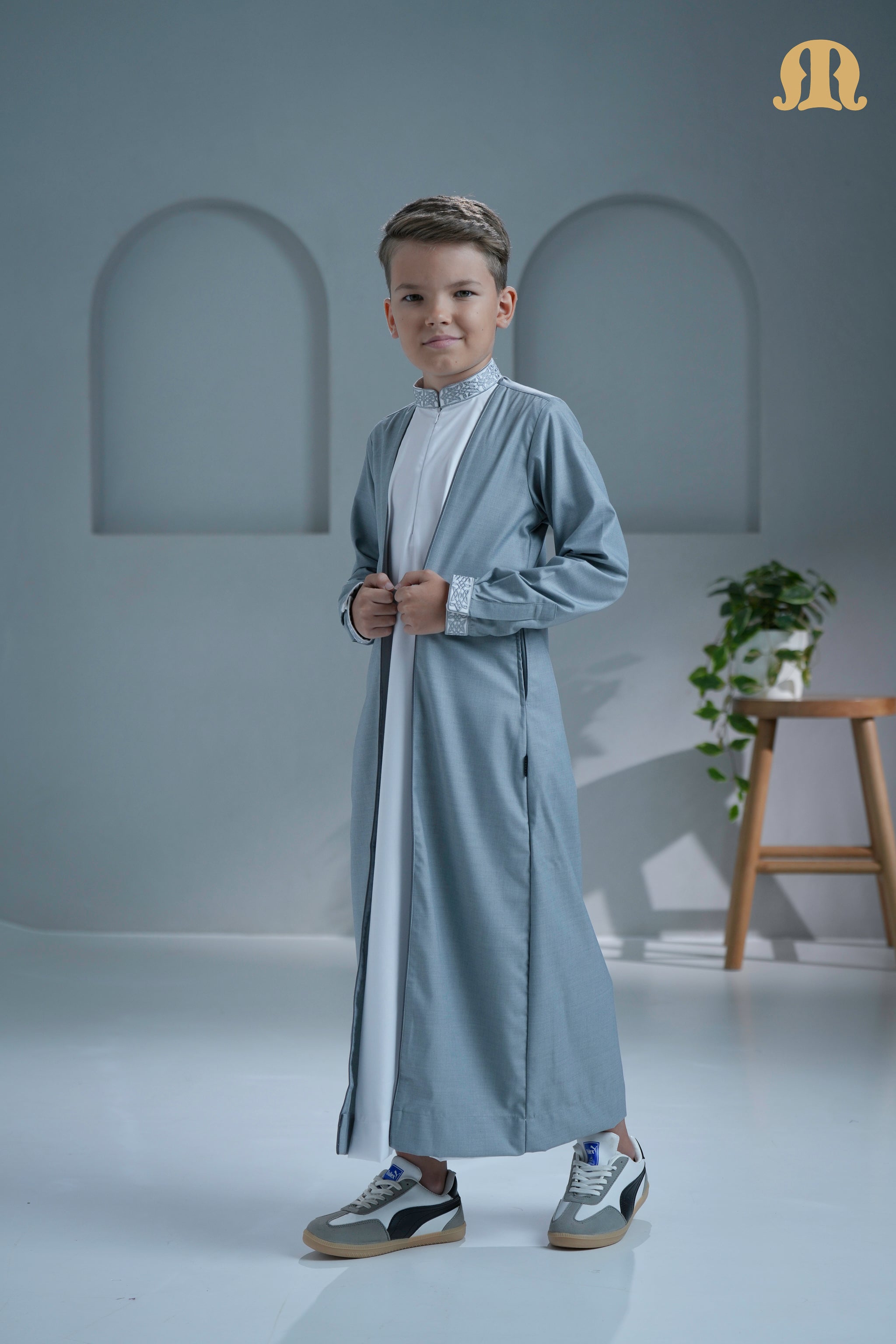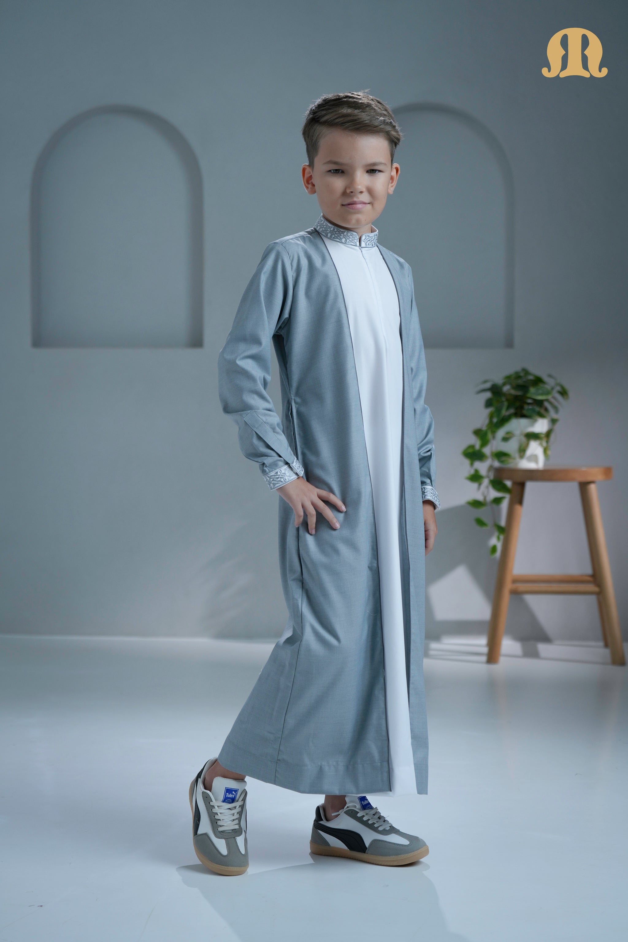 Merasim Embroidered Thobe L grey For Boys