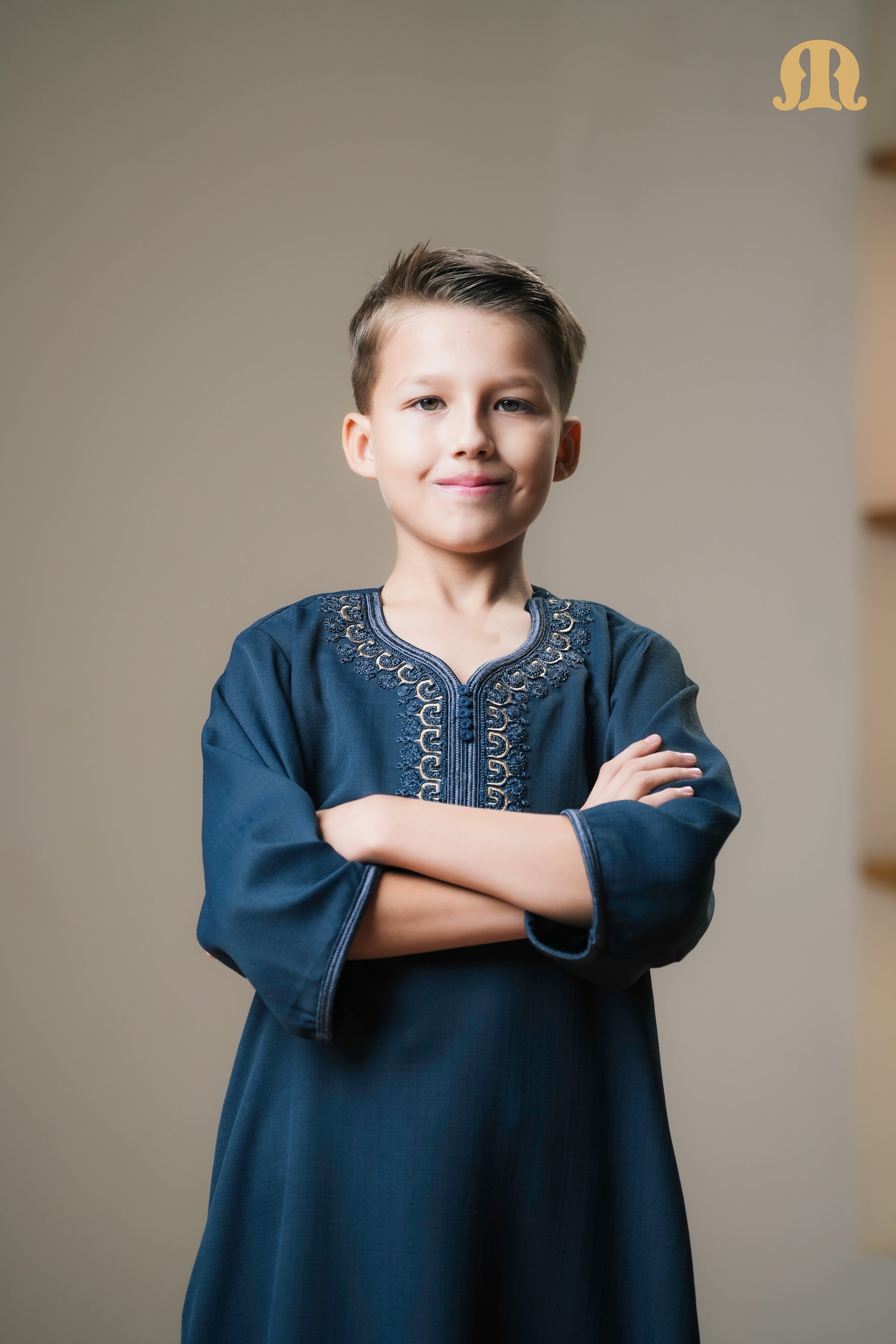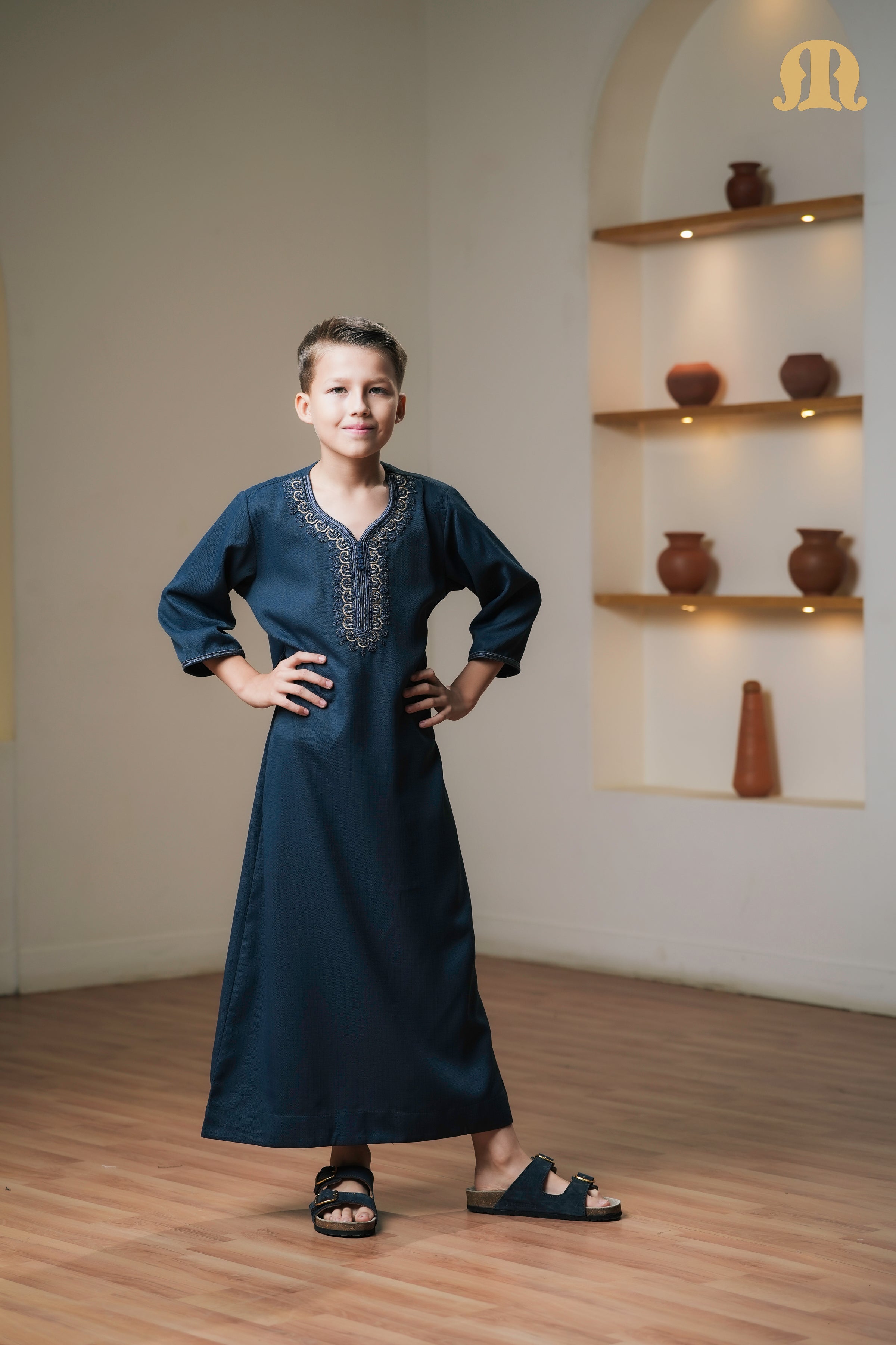 Inspired by classic Moroccan craftsmanship, this Navy Maksur Moroccan Thobe blends traditional design with effortless modern comfort. Tailored in a relaxed, flowing silhouette, it offers an elegant drape that reflects timeless North African style.