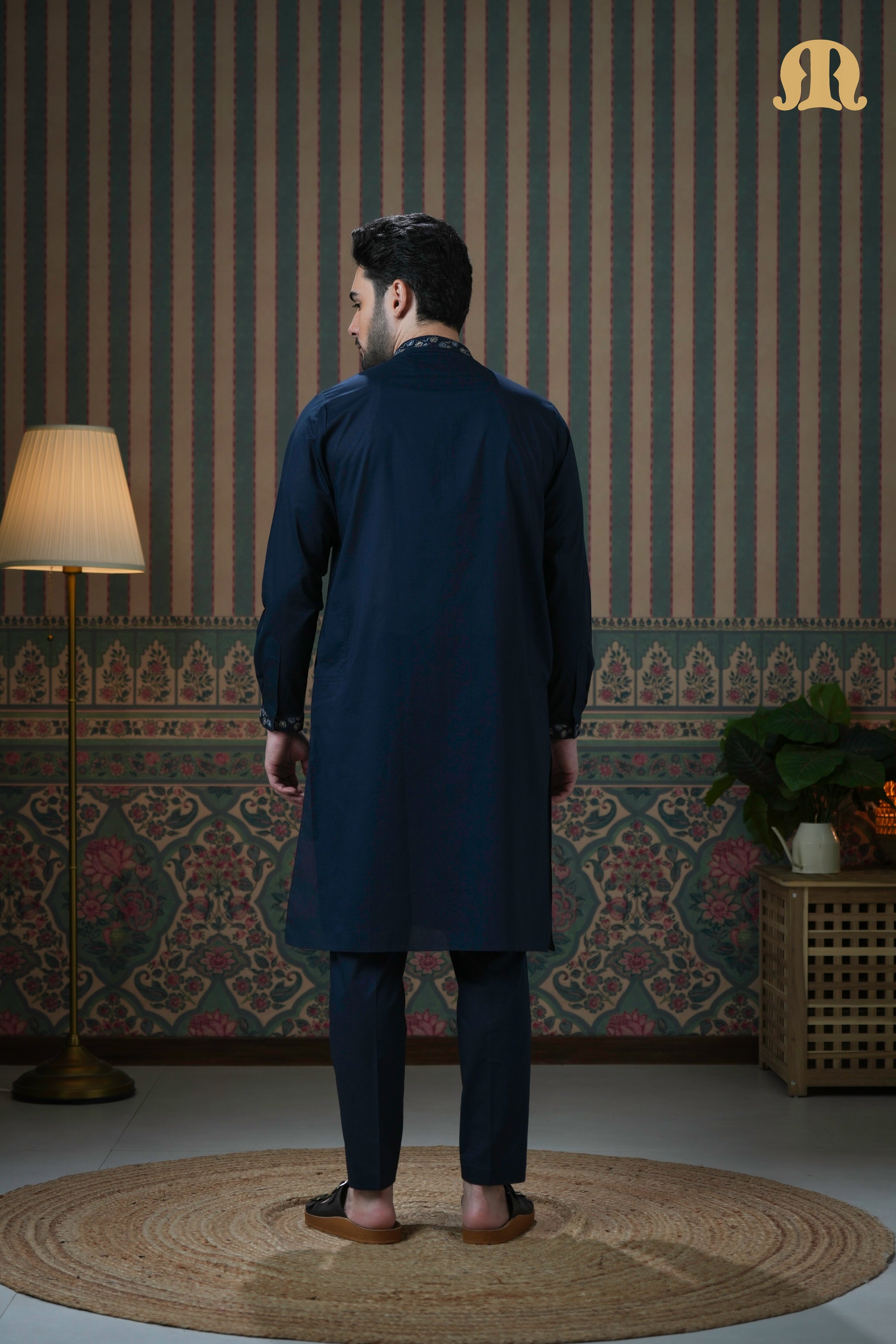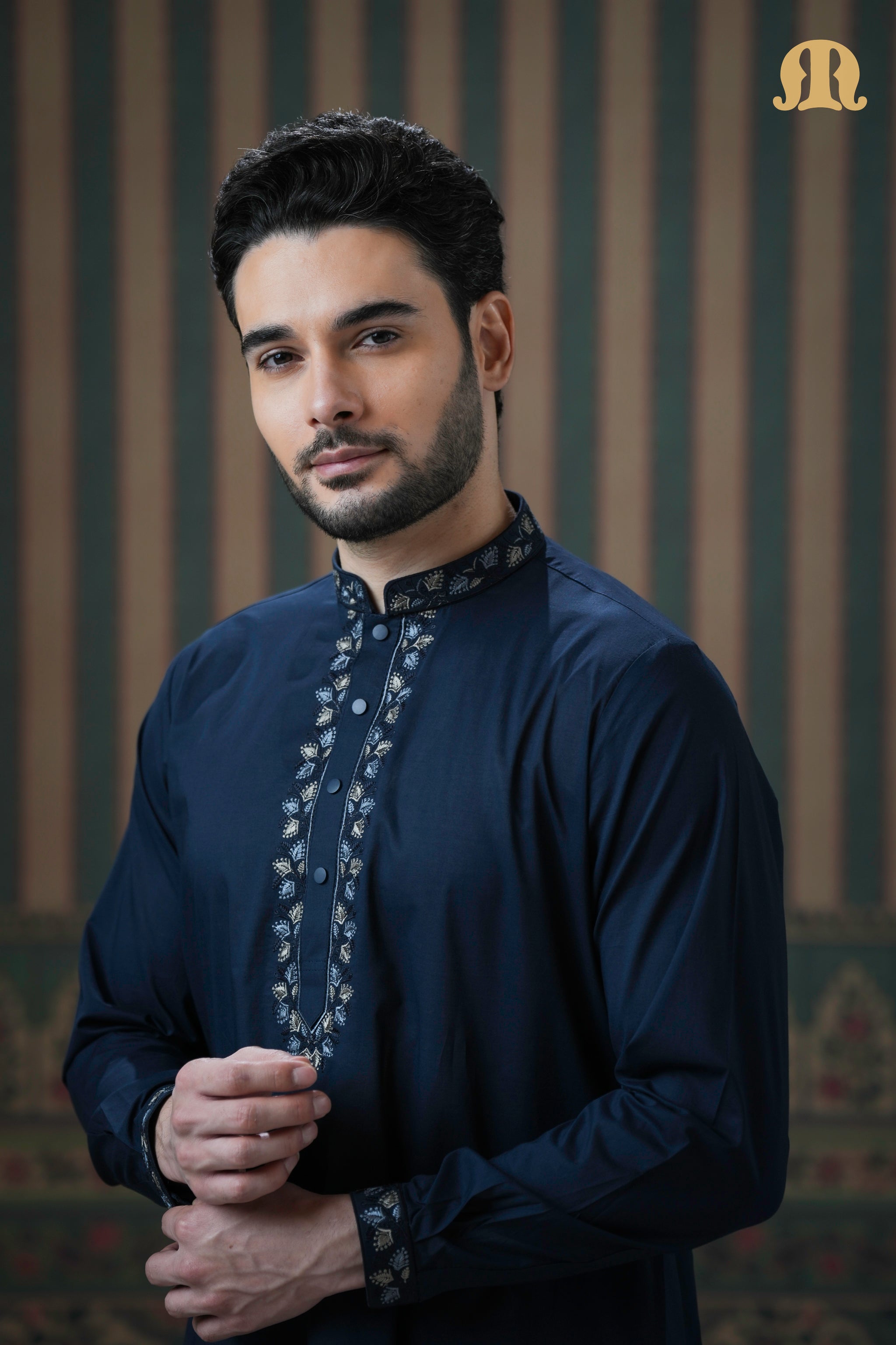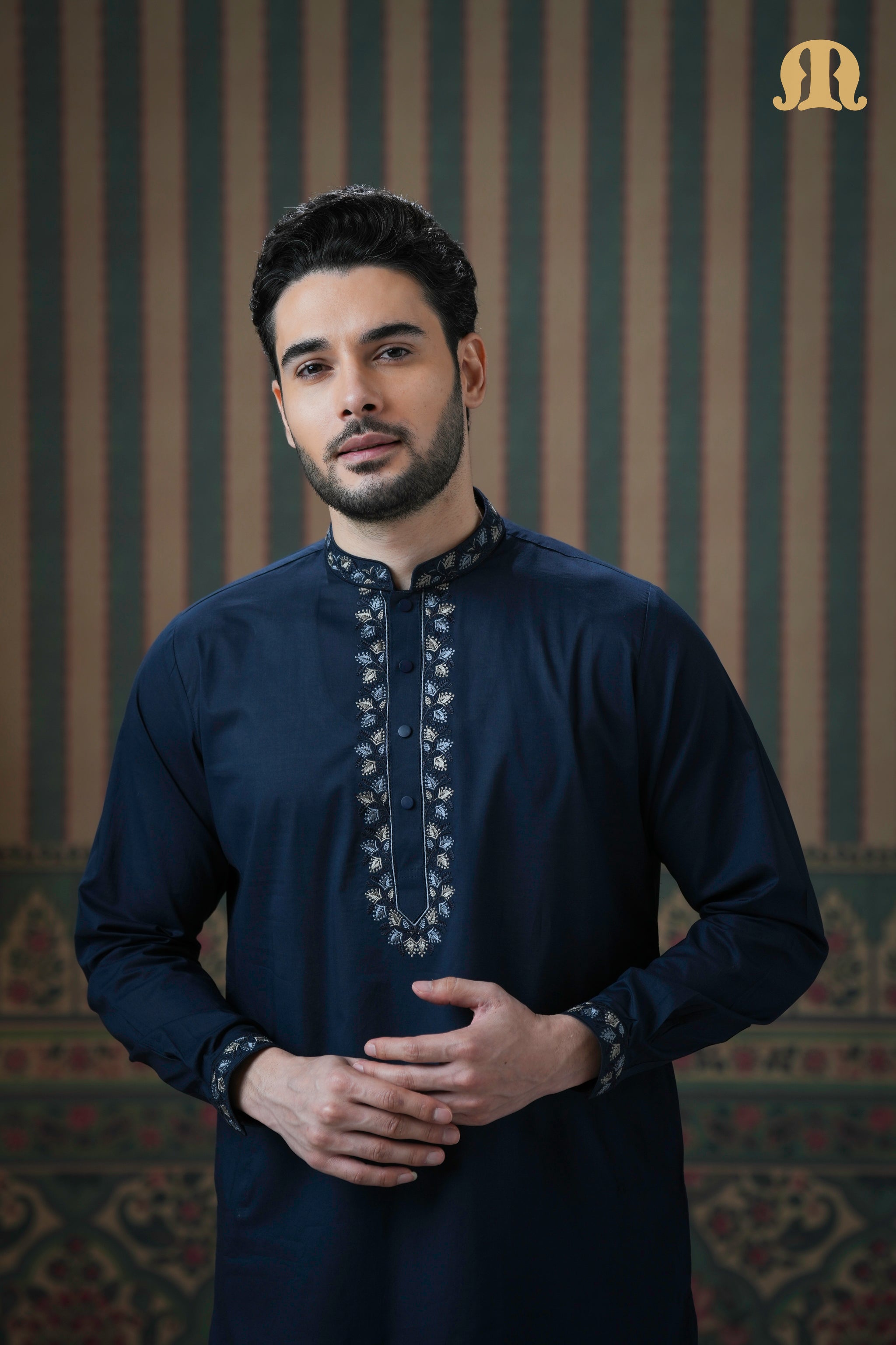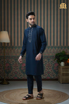 Ahyan Embroidered Kurta Navy Blue 2.0 for Men
