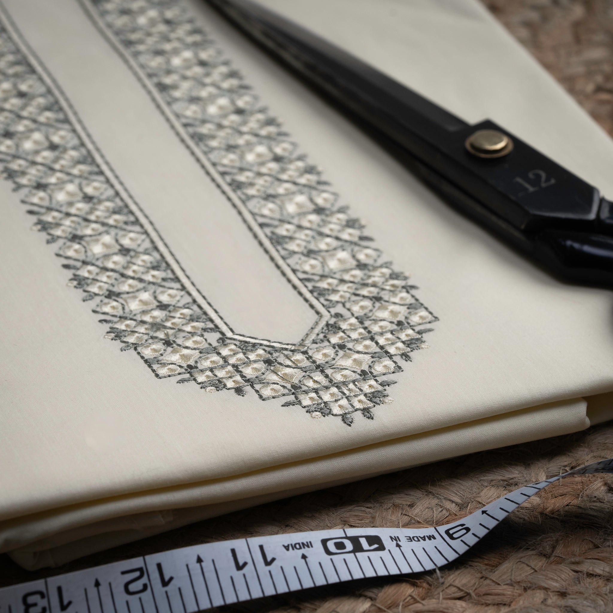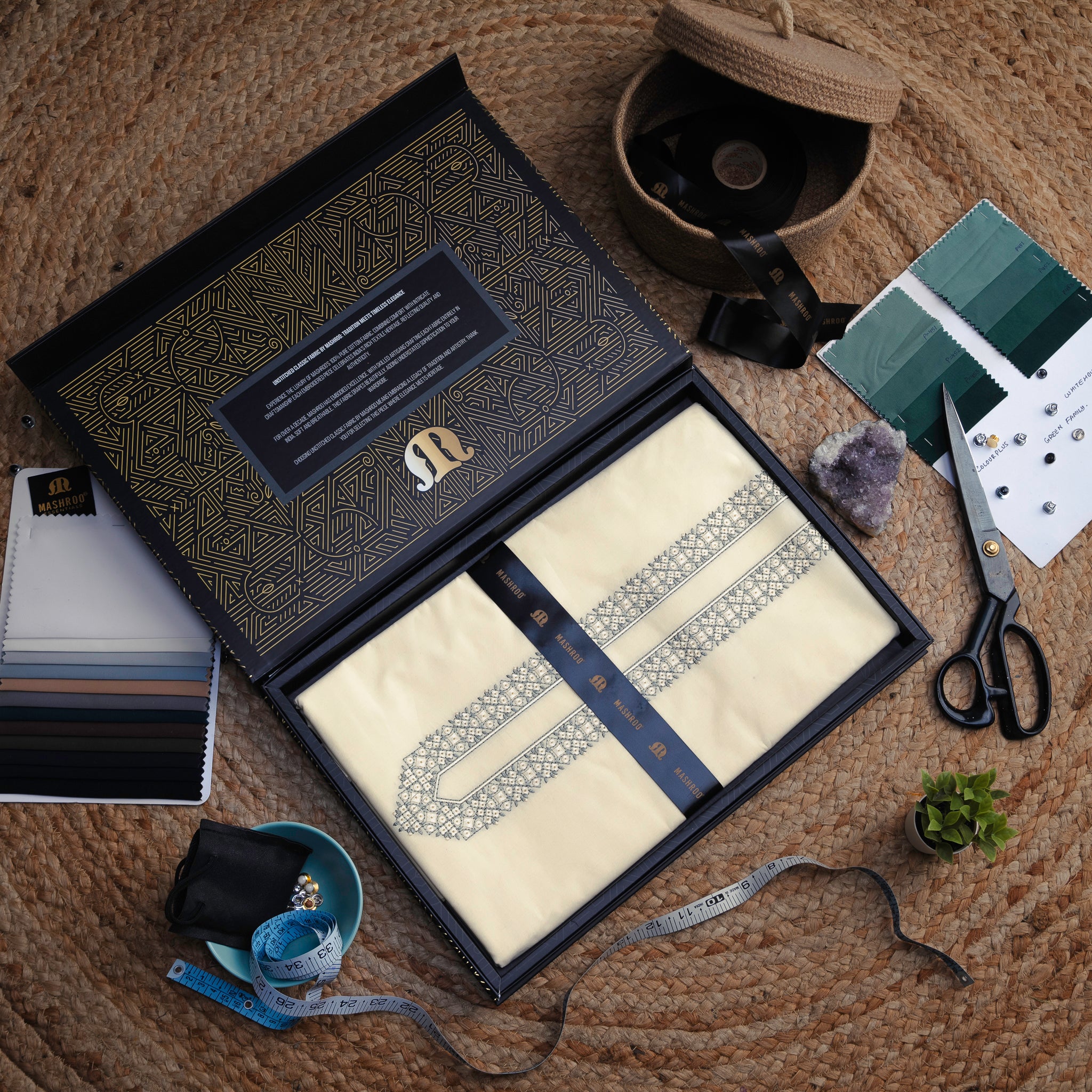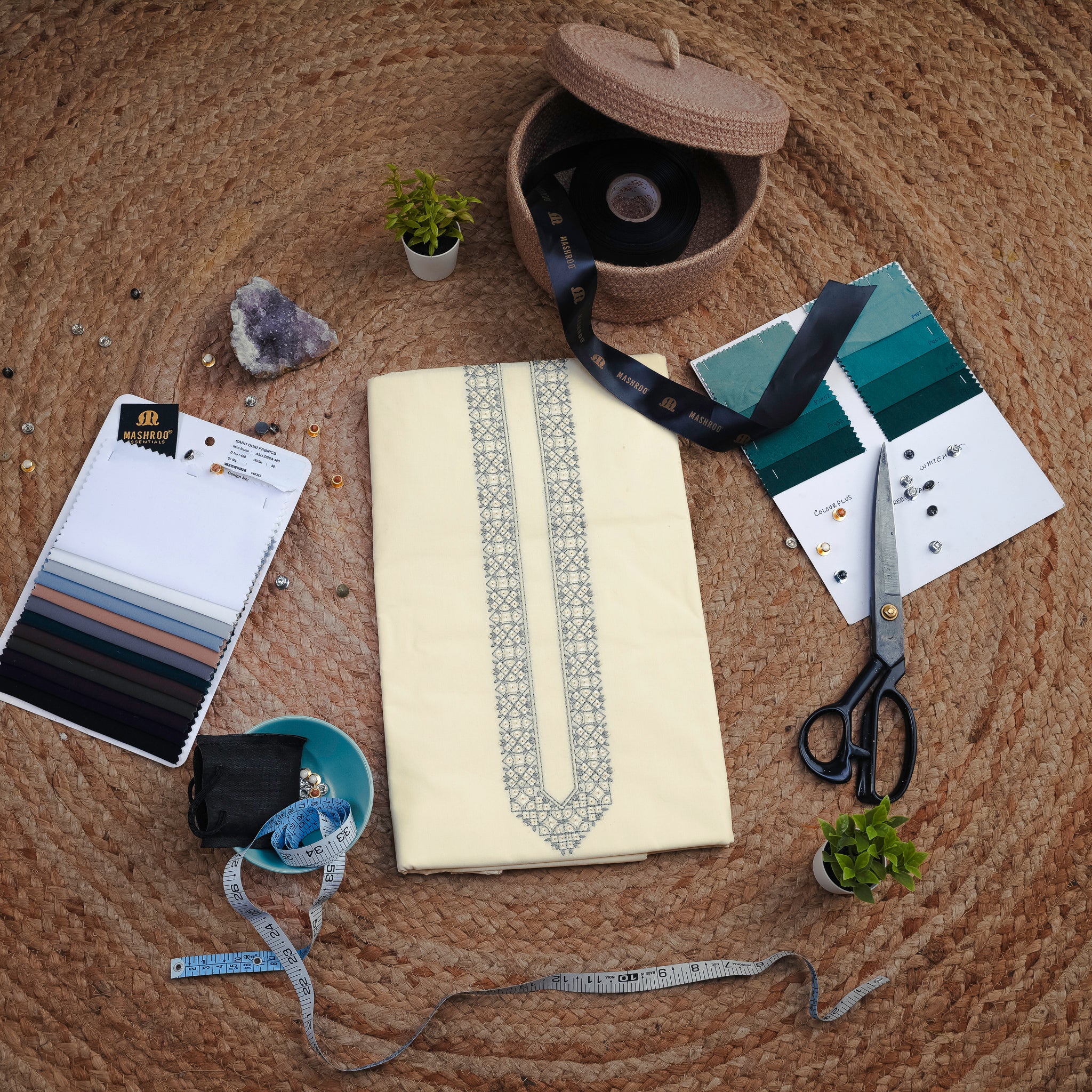 Introducing Mashroo Luxe Cut pieces, an exquisite creation that seamlessly blends timeless elegance with contemporary style. Crafted with precision in India, this premium piece is designed for the modern man who seeks sophistication in every detail. The intricate embroidery on the neck adds an elevated touch of refinement, making it a standout piece that exudes luxury and craftsmanship.