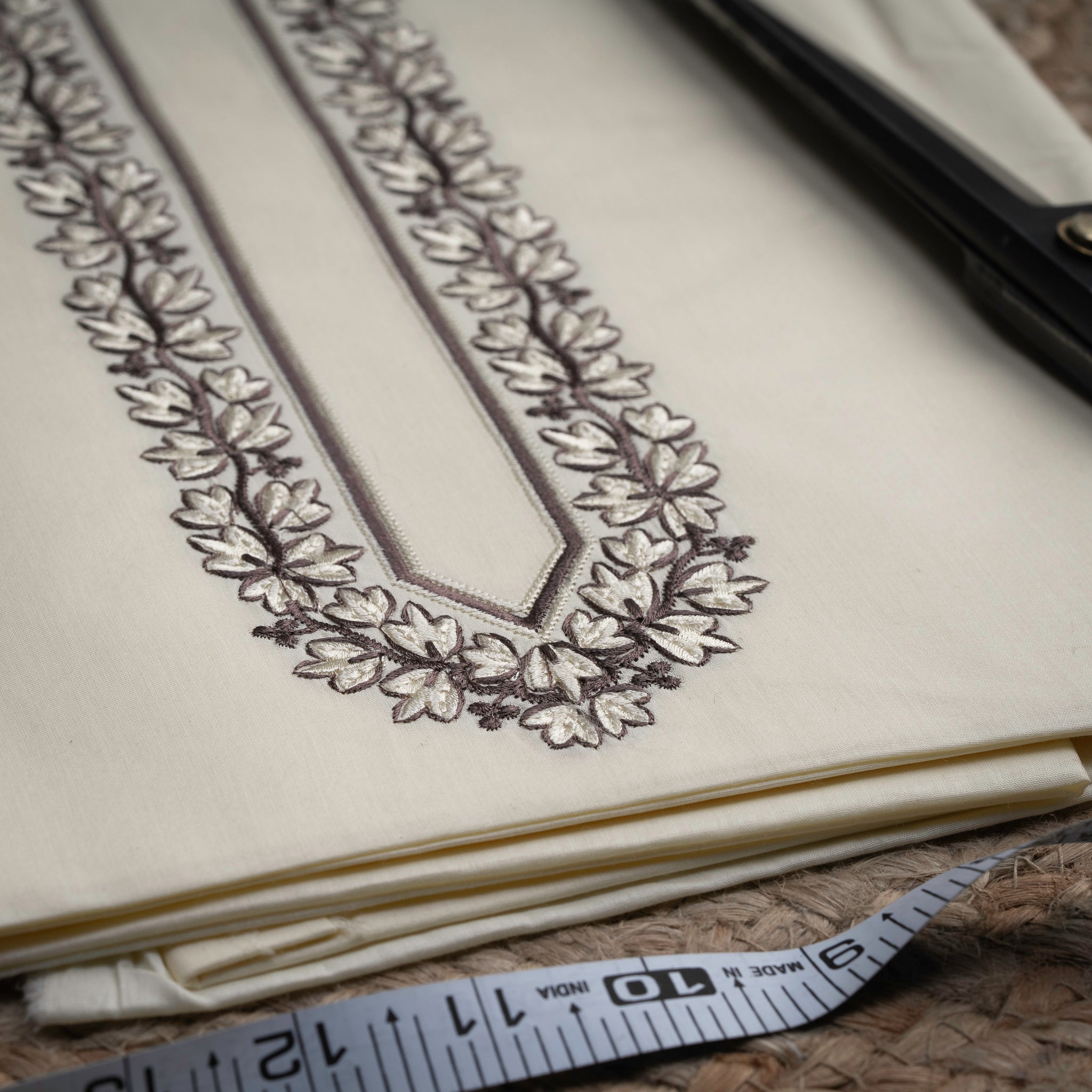 •Intricate neck embroidery