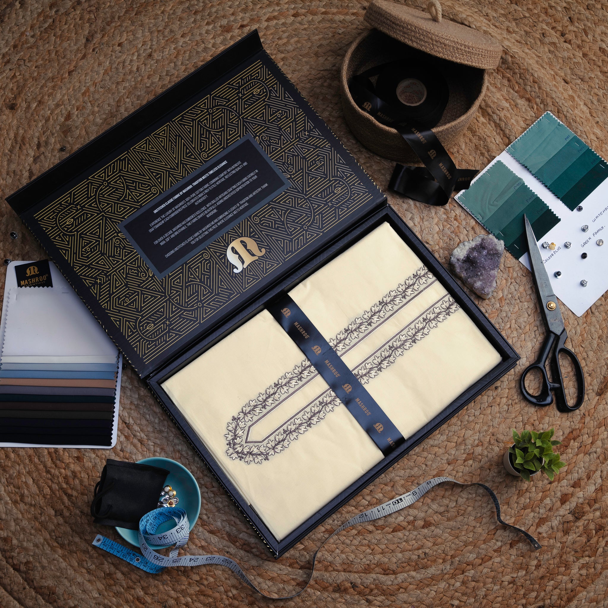 Introducing Mashroo Luxe Cut pieces, an exquisite creation that seamlessly blends timeless elegance with contemporary style. Crafted with precision in India, this premium piece is designed for the modern man who seeks sophistication in every detail. The intricate embroidery on the neck adds an elevated touch of refinement, making it a standout piece that exudes luxury and craftsmanship.