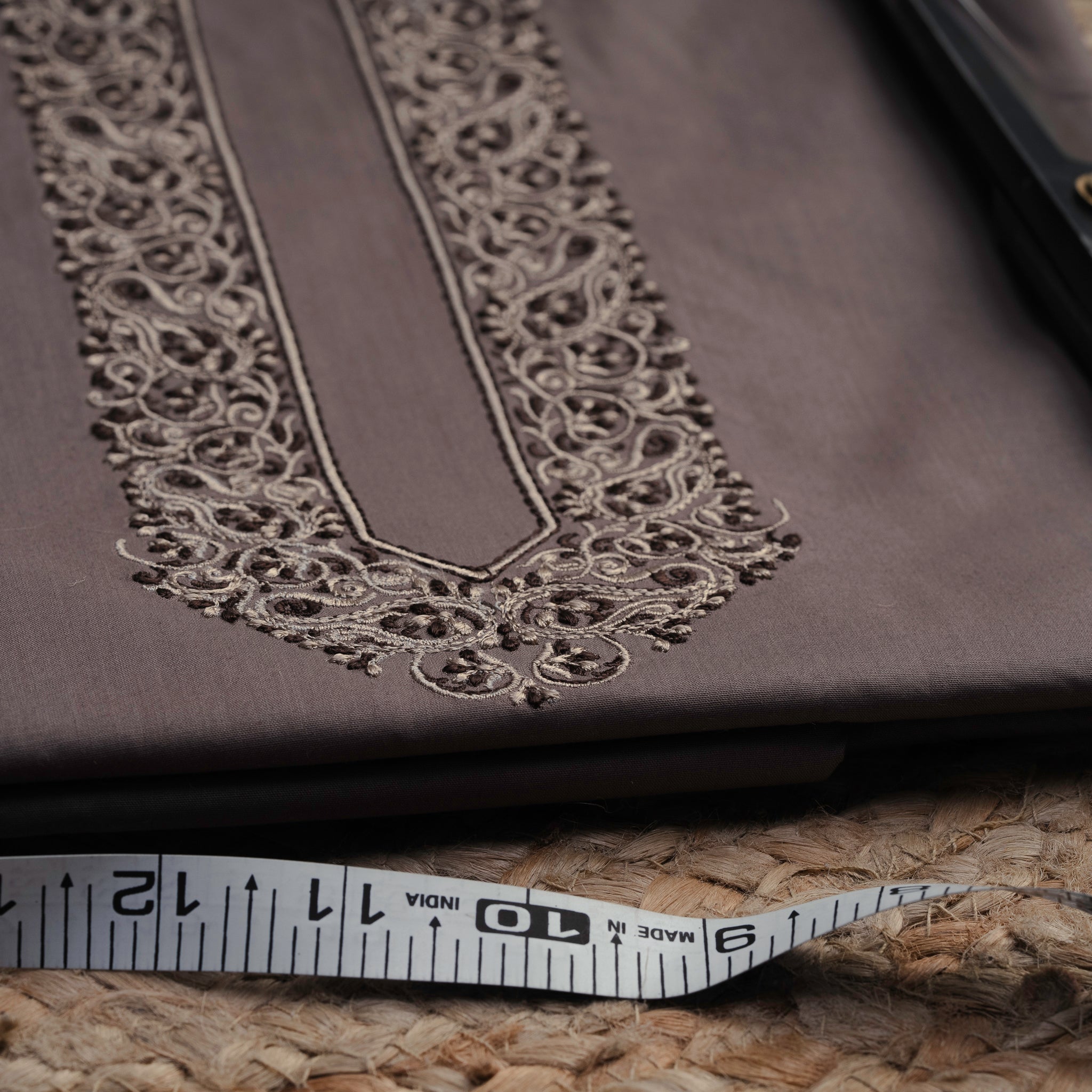 The luxurious feel, combined with the graceful embroidery, gives it a regal finish, perfect for those who appreciate the art of fine tailoring and elegance in every stitch.