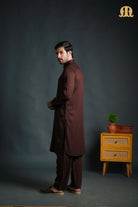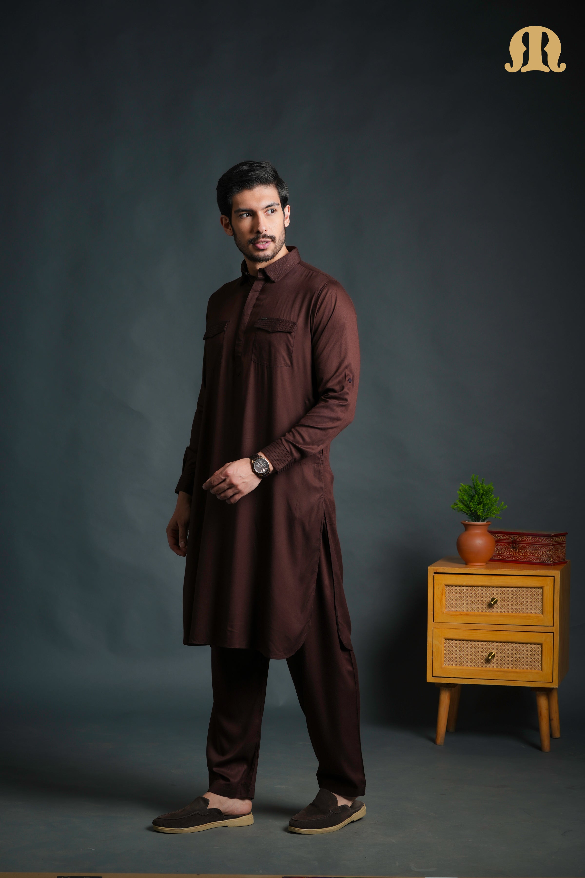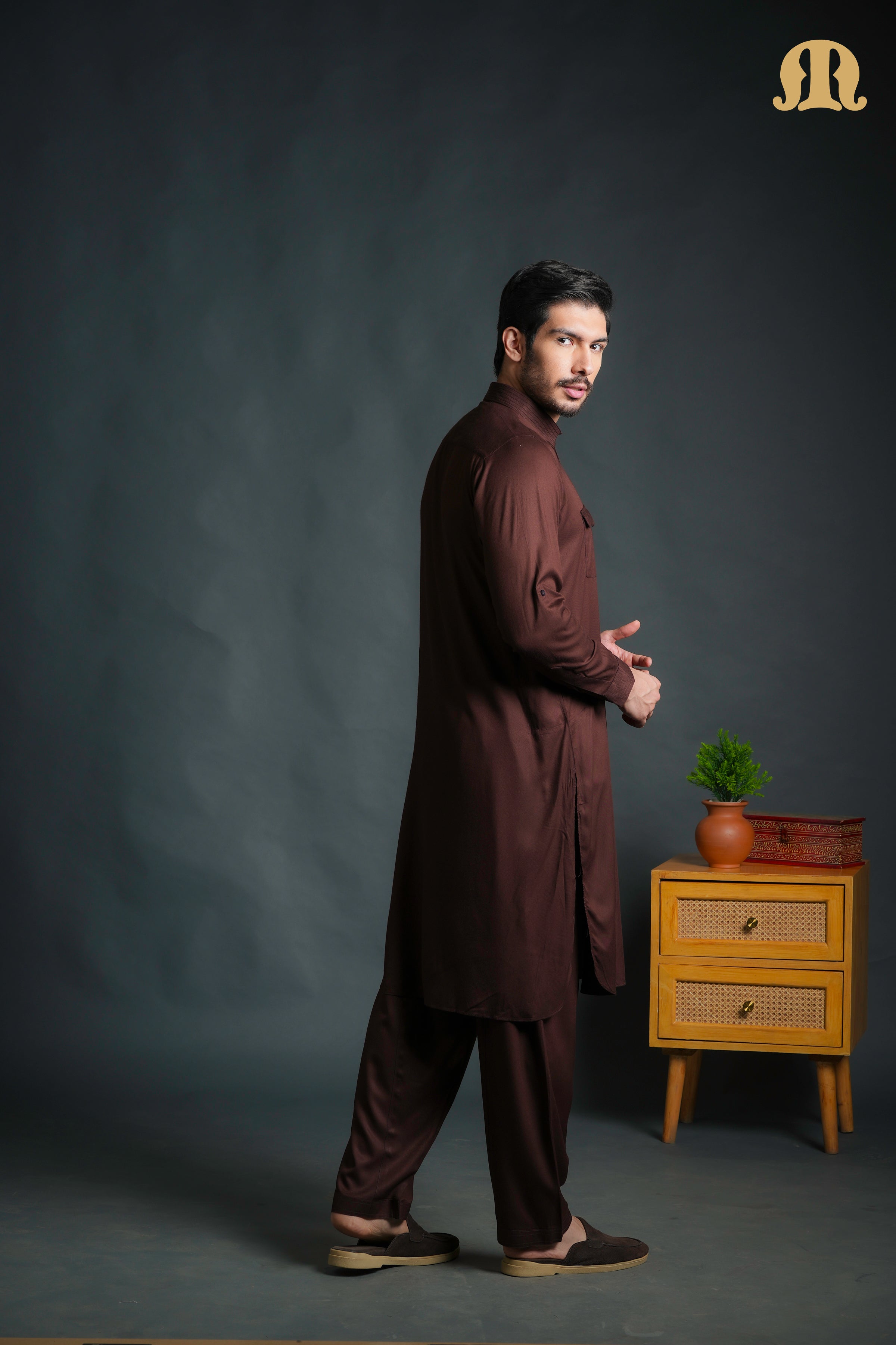 Make a bold yet refined statement with the Kikan Brown Pathani Set, tailored from premium viscose fabric for a smooth feel and elegant drape. Designed with a shirt-style collar and cuffs, this set delivers a sharp, contemporary Pathani look while ensuring all-day comfort.