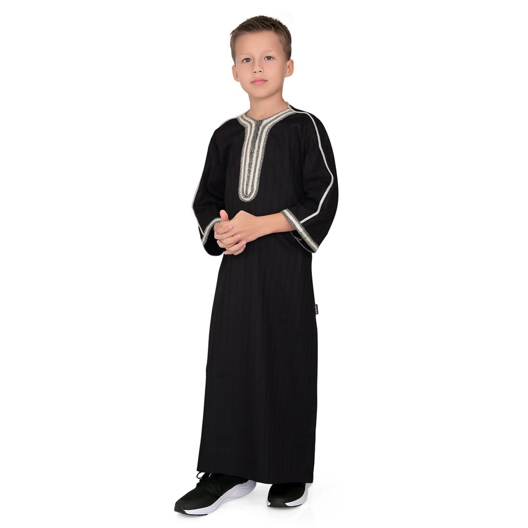 Introducing our Moroccan-style Thobe, a distinctive garment that encapsulates the essence of Moroccan design and craftsmanship. Artfully crafted from premium striped polyester, this Thobe combines traditional flair with modern comfort for a unique and elegant look.