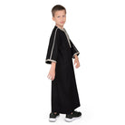 Adding to the Thobe's charm, the sleeves feature delicate piping, providing a refined edge to the design. This thoughtful detail enhances the overall aesthetic, creating a harmonious blend of texture and pattern.
