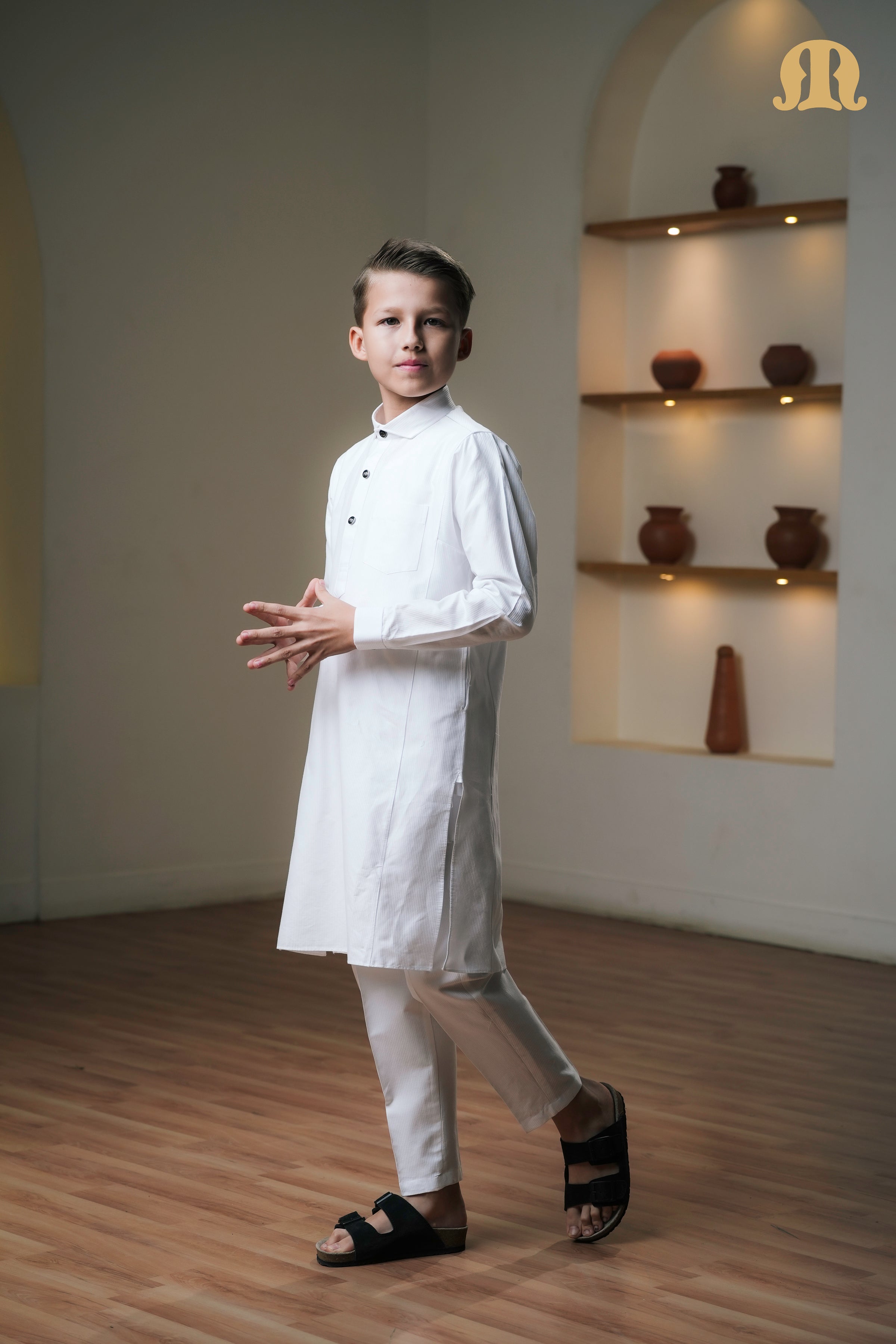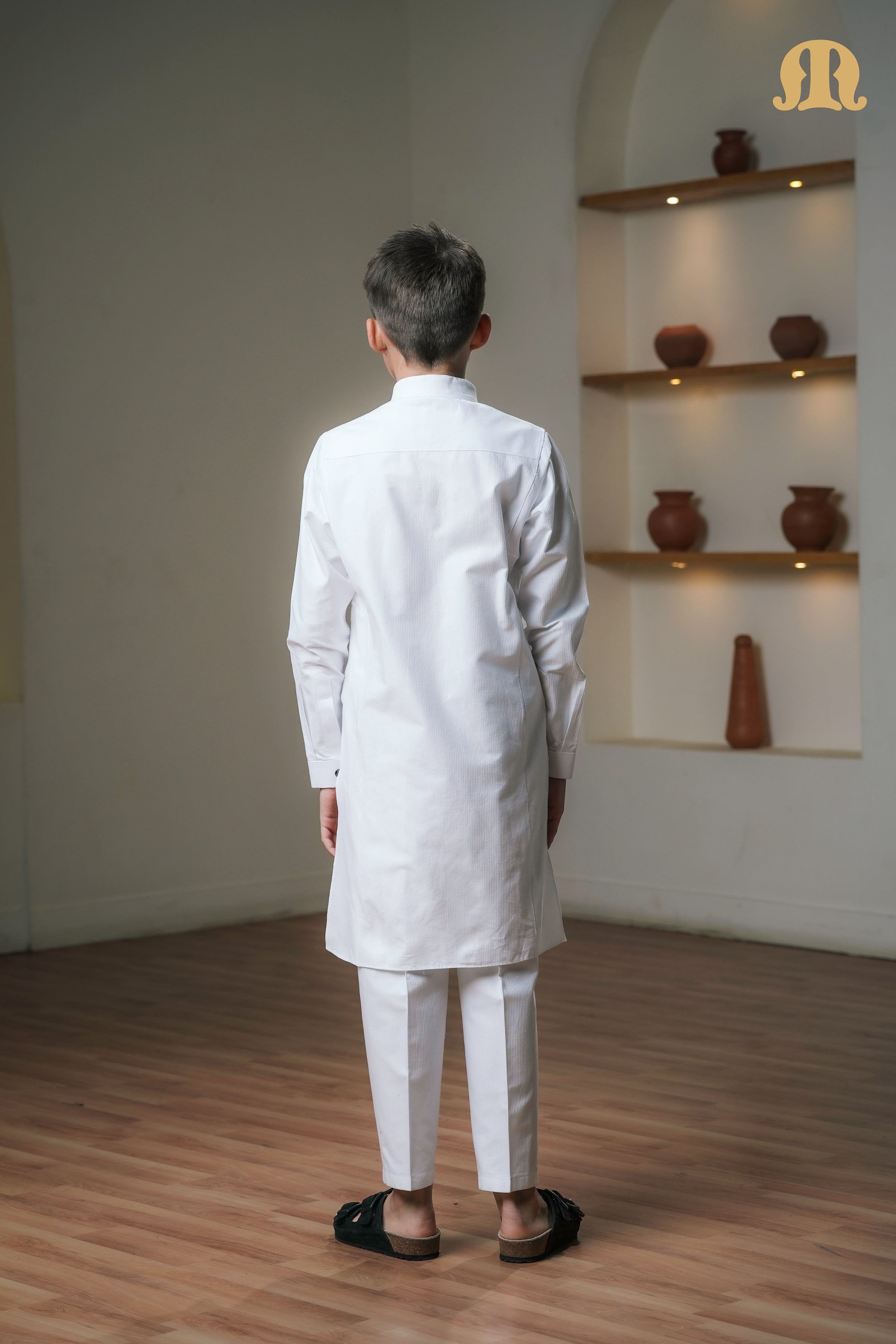 Elevate your everyday and festive wardrobe with the Asiri White Kali Kurta Set, crafted from pure cotton for superior comfort and breathability. Designed with a shirt-style collar and cuffs, this kurta offers a refined yet relaxed look. The front placket with metal buttons adds a touch of understated elegance, while the front pocket enhances both style and practicality.
