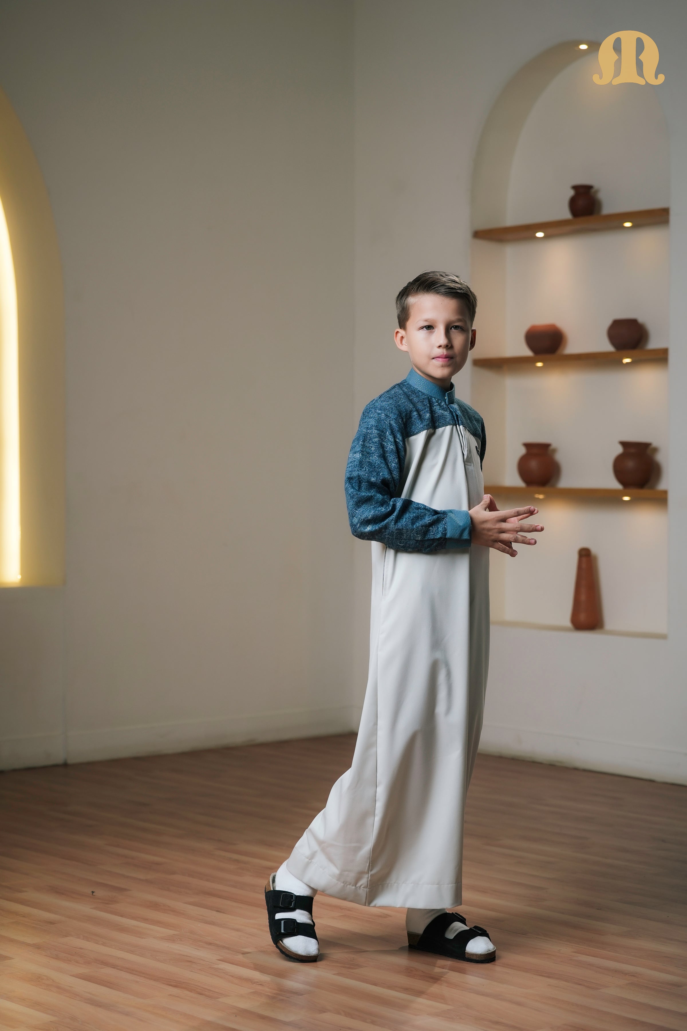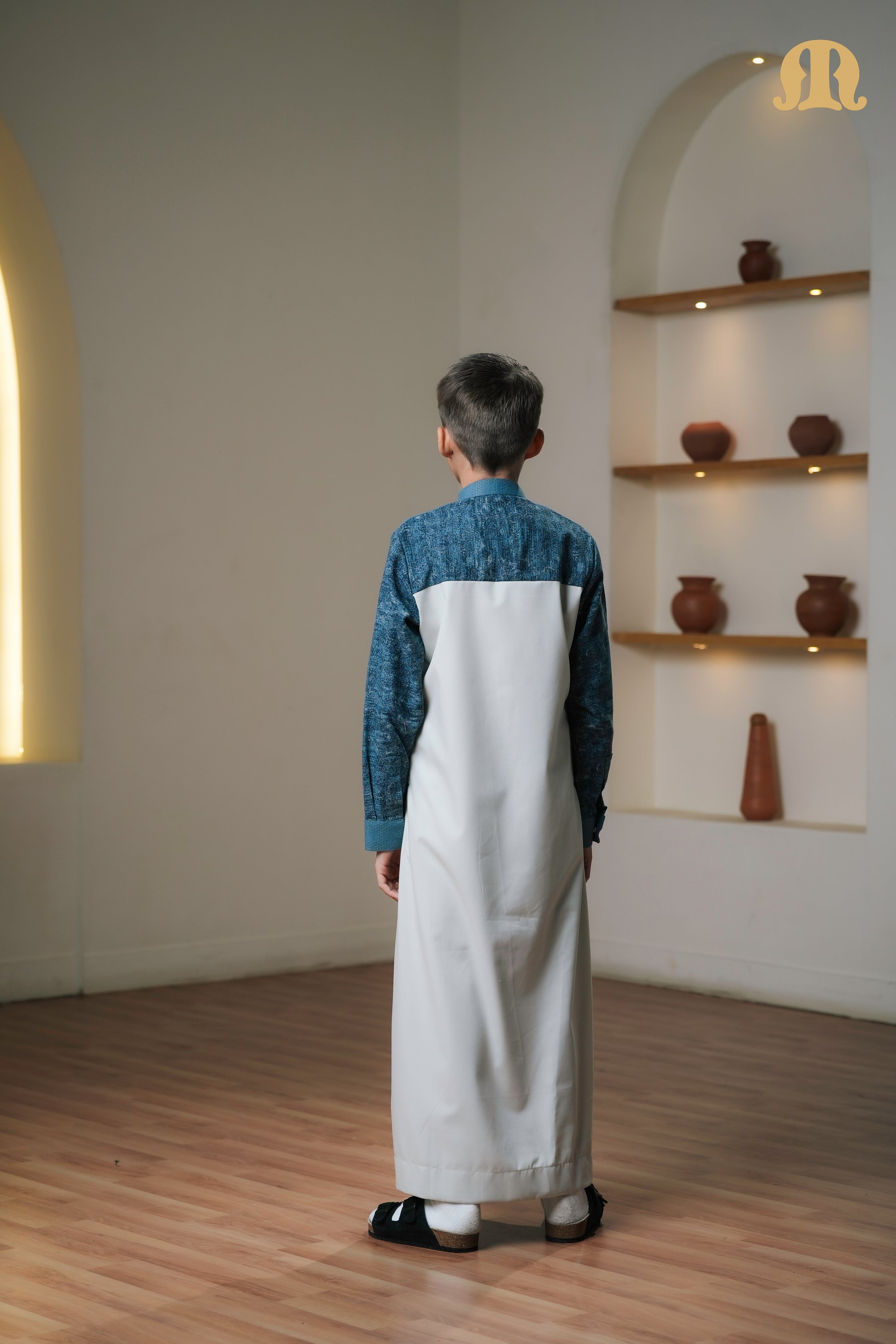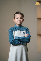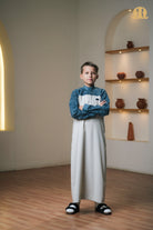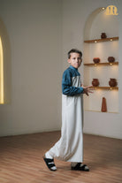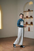 Designed in a two-tone palette of white and dark grey, it delivers subtle contrast and modern elegance, while the Mashroo ID on the front adds a distinctive signature detail. Ideal for those who appreciate style, simplicity, and comfort in one versatile thobe.