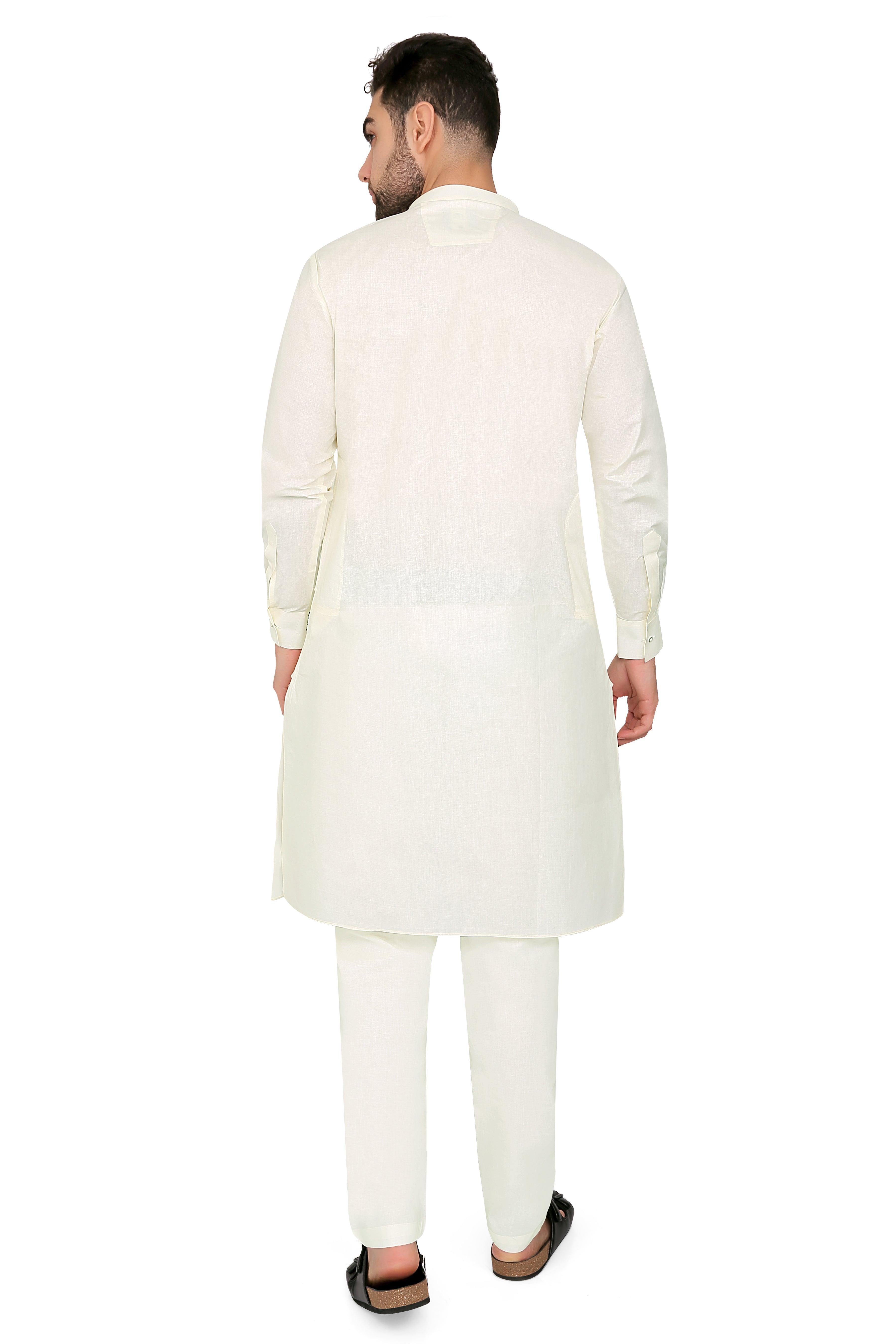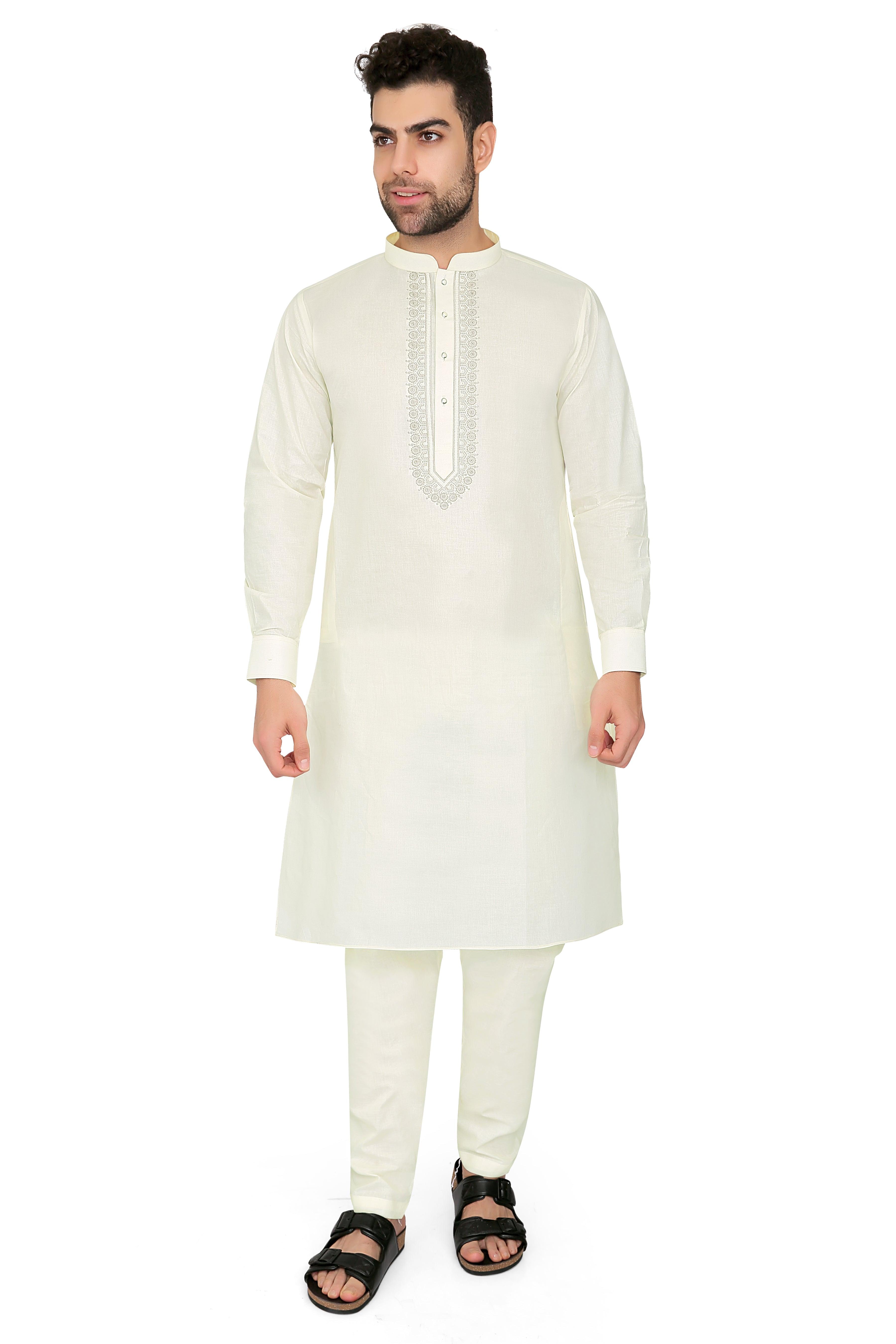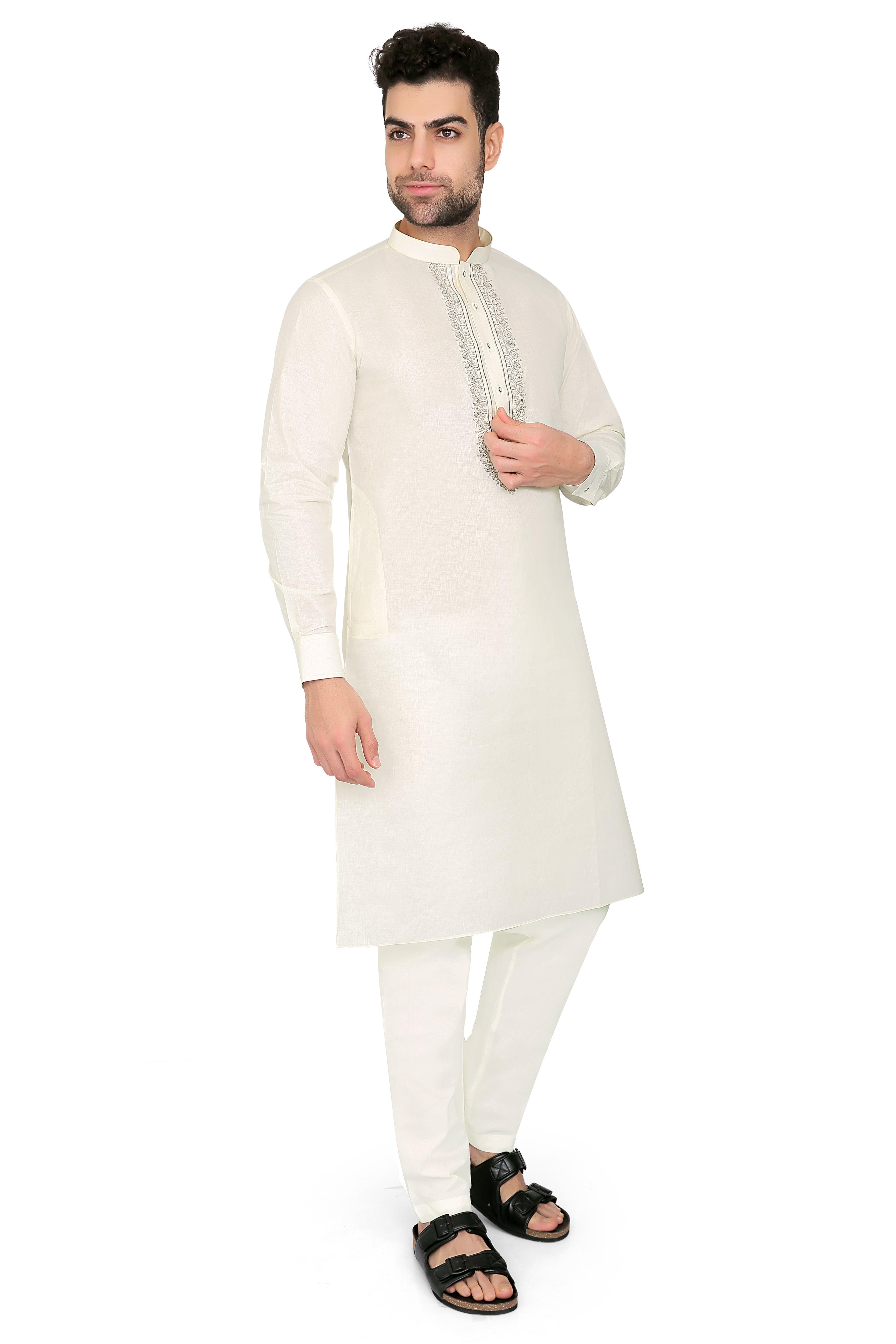 "Step into elegance with our Ahyan Kurta Set, crafted from premium quality lawn cotton fabric. This meticulously designed ensemble exudes sophistication and comfort, making it an ideal choice for any occasion. The lightweight fabric ensures breathability, while the intricate detailing adds a touch of finesse. Elevate your style with this versatile ensemble that seamlessly blends tradition with modern aesthetics. Embrace the timeless charm of our Ahyan Kurta Set and make a statement wherever you go."