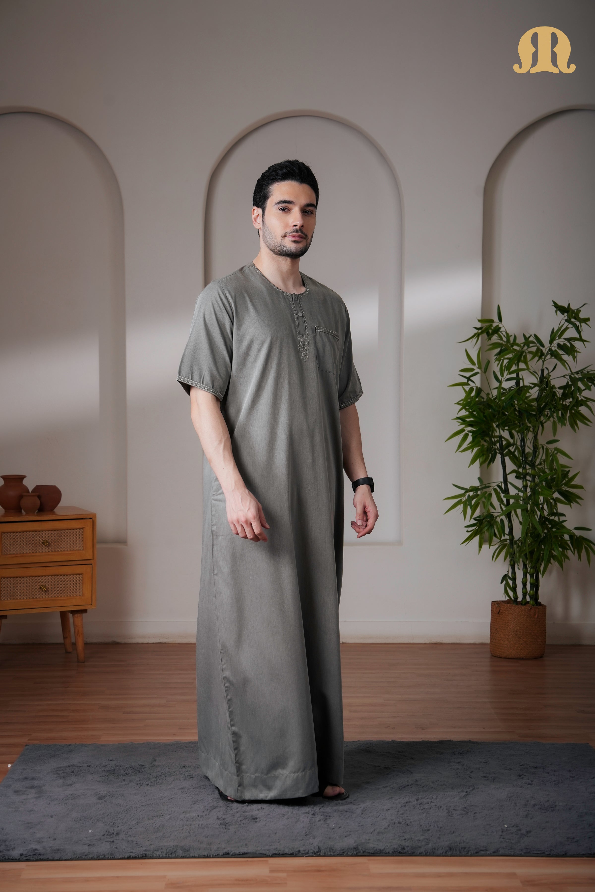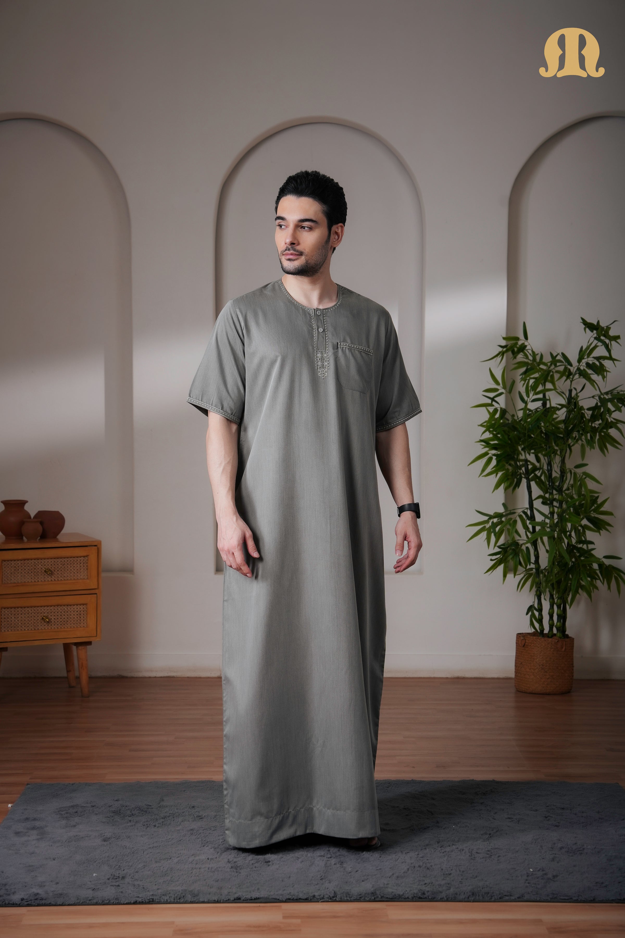 Green Rizbin Half Sleeve Thobe Mens
