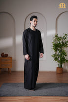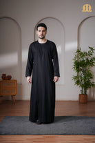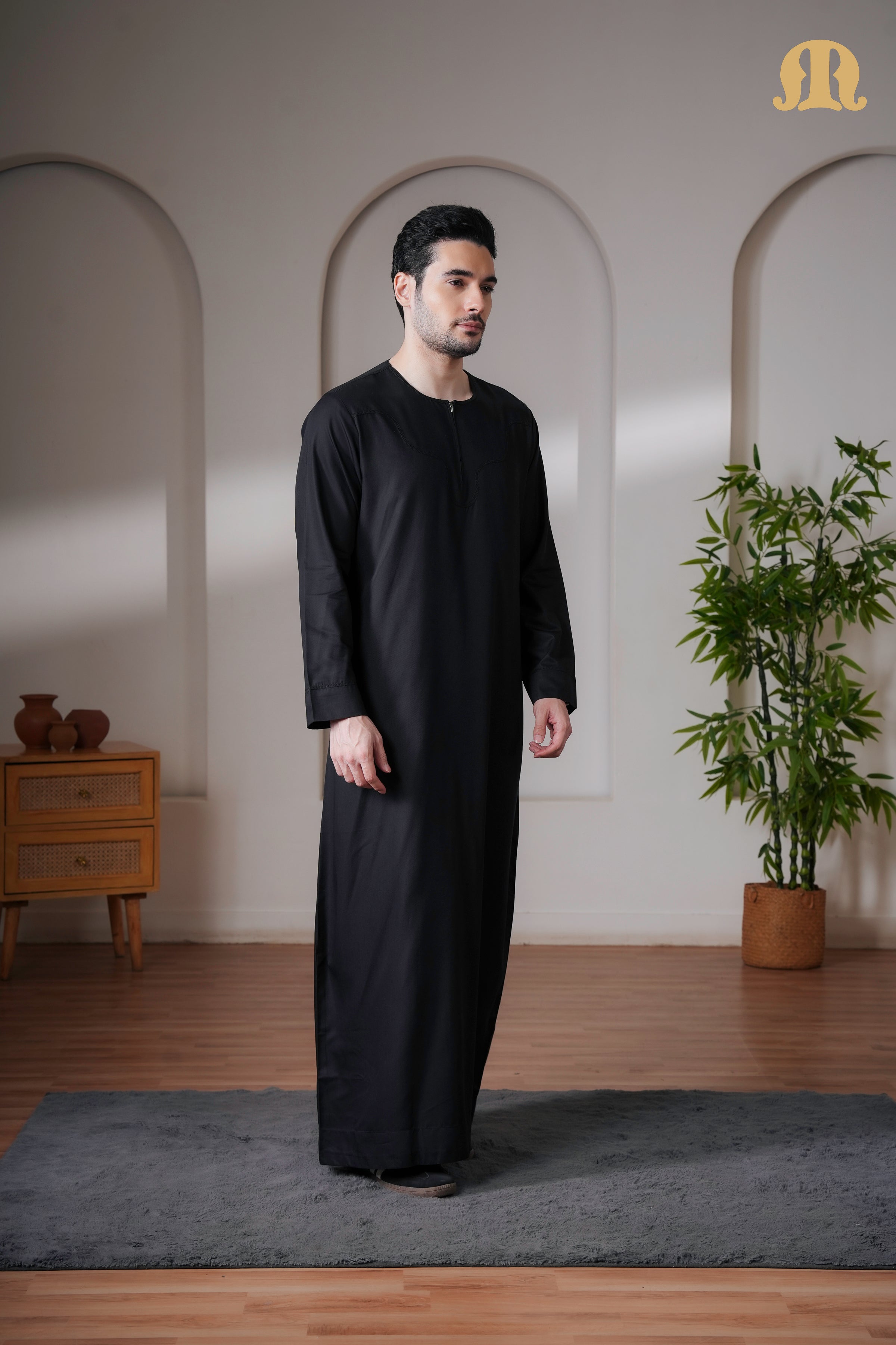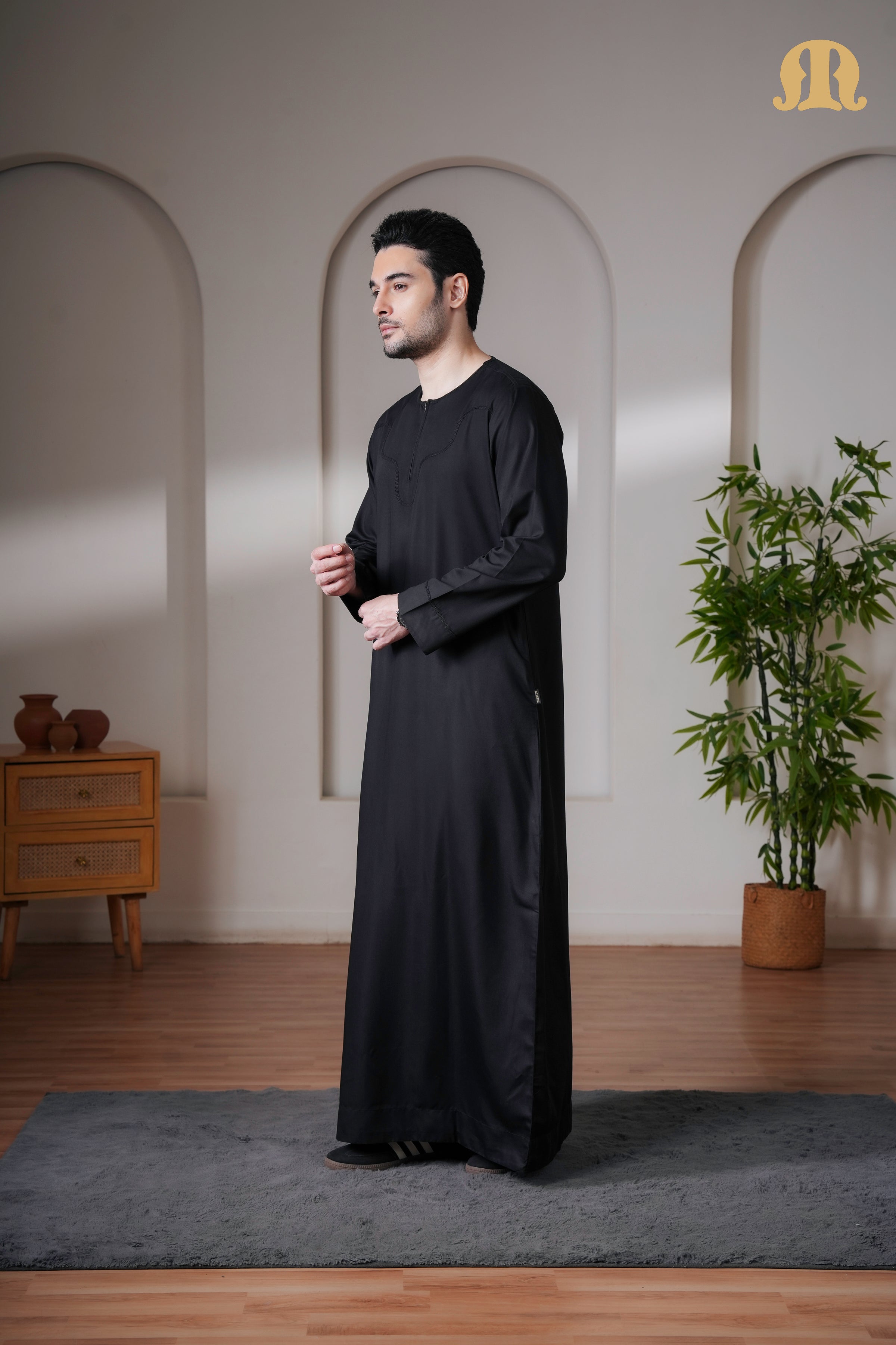 Experience timeless elegance with the Kurvig Omani 2.0 Black Thobe, crafted for comfort, modesty, and everyday refinement. Designed in the classic Omani silhouette, this thobe features a clean, structured fall with a subtle neckline detail that reflects traditional craftsmanship while maintaining a modern, minimalist aesthetic.