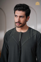 The Yalin Emirati  Deep Green Thobe blends traditional Emirati elegance with refined detailing for a distinguished, contemporary look. Tailored in the classic Emirati silhouette, it offers a relaxed, flowing fit that ensures comfort while maintaining a graceful, structured appearance.