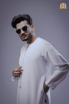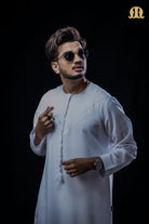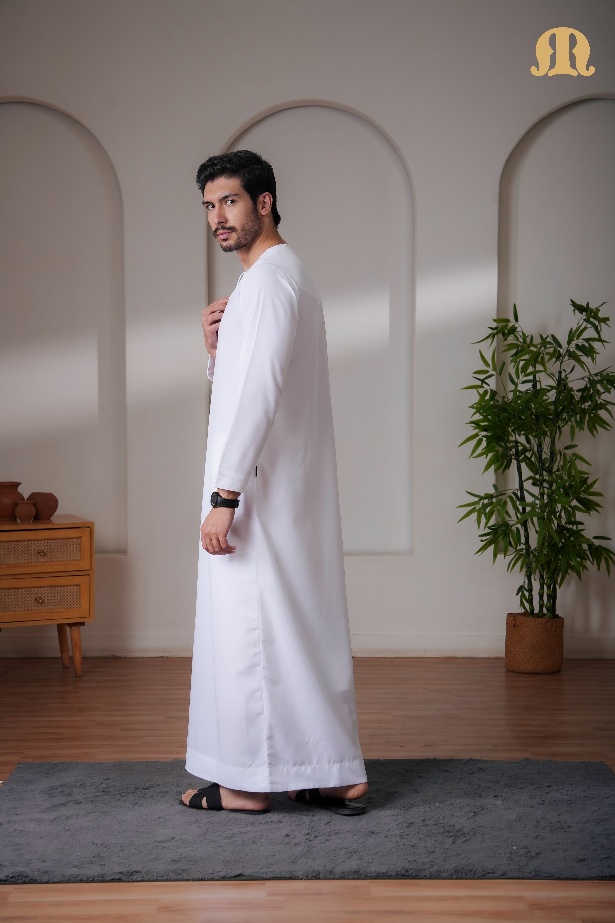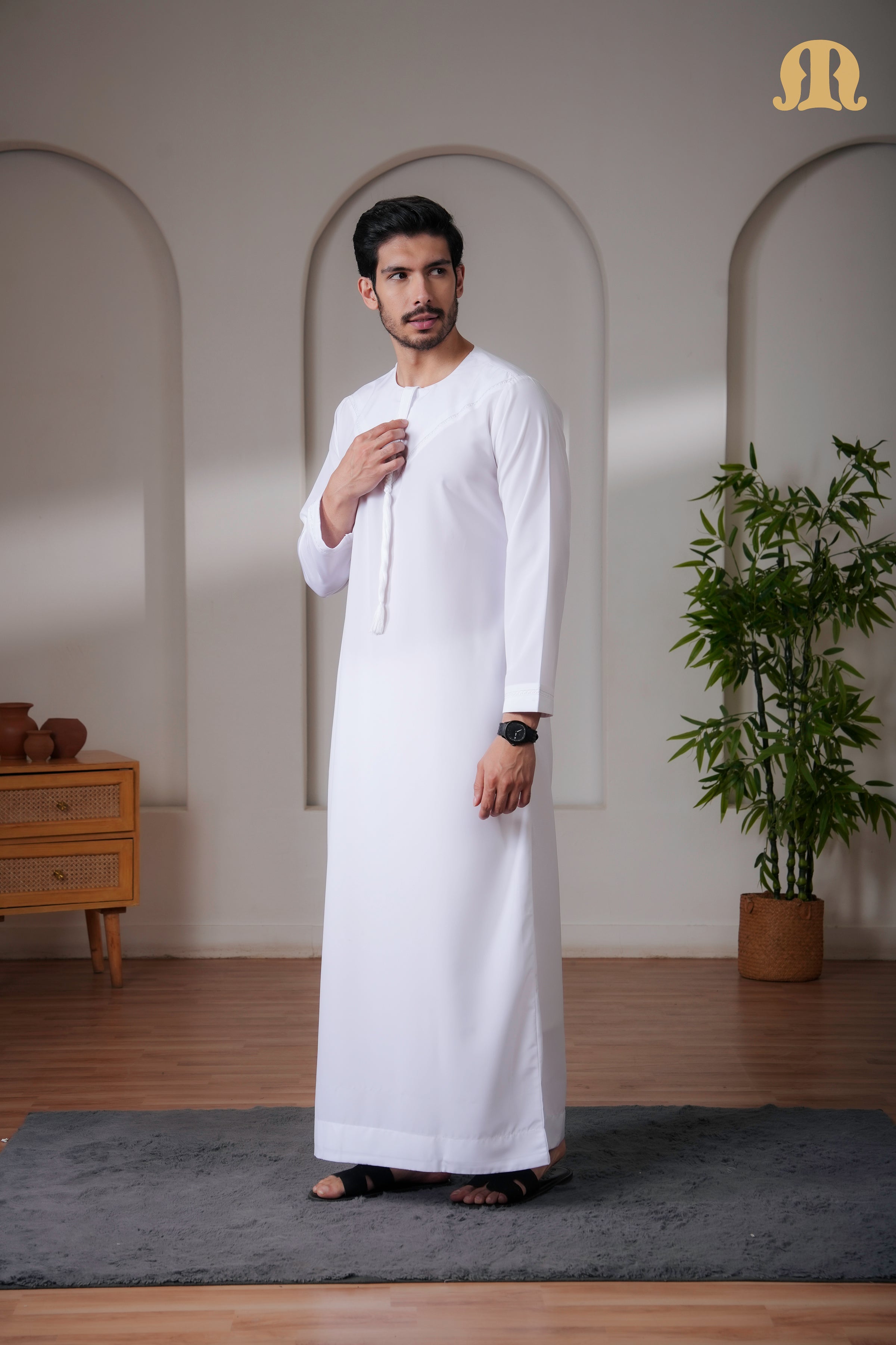 The Yalin Emirati White Thobe blends traditional Emirati elegance with refined detailing for a distinguished, contemporary look. Tailored in the classic Emirati silhouette, it offers a relaxed, flowing fit that ensures comfort while maintaining a graceful, structured appearance.