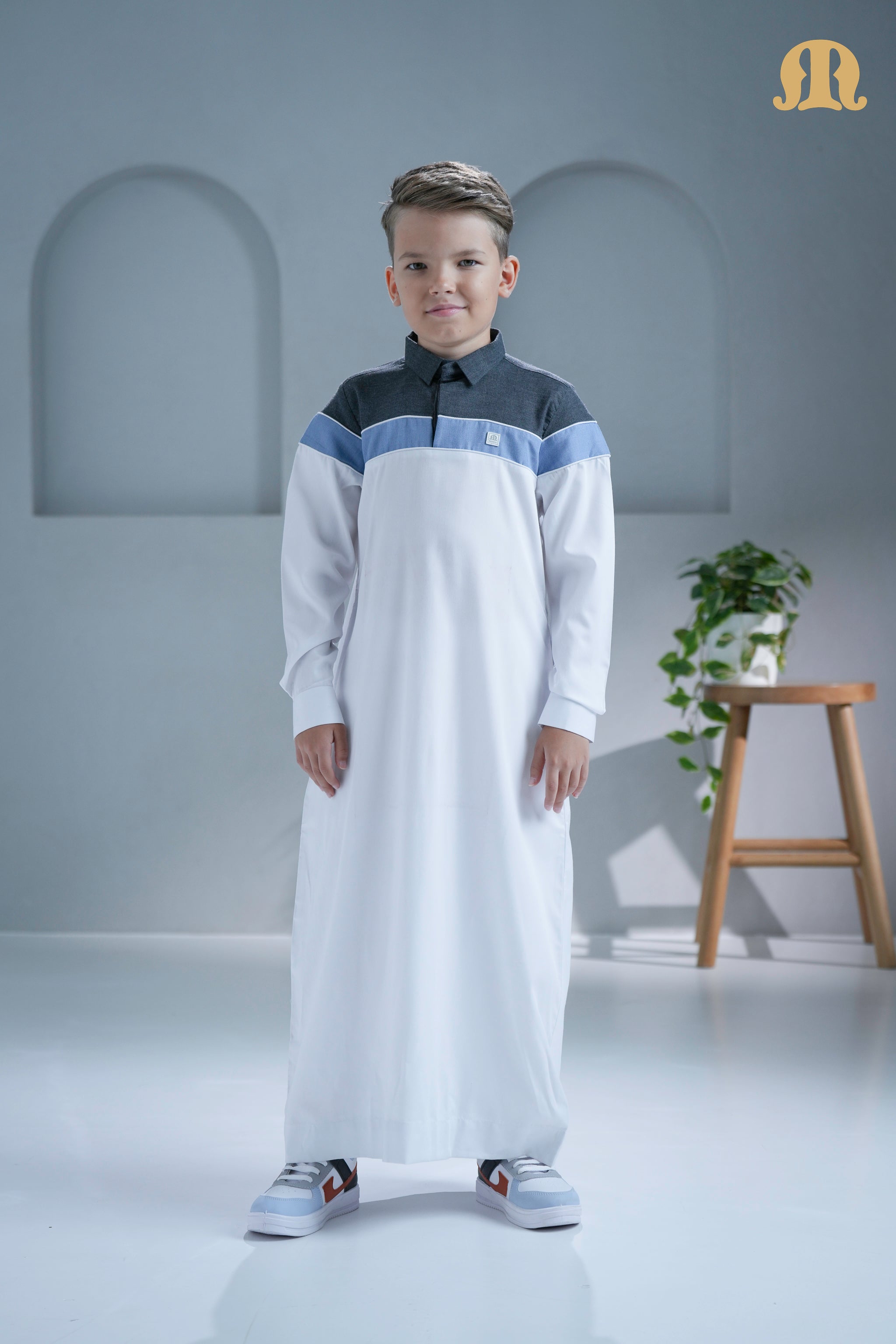 उच्च गुणवत्ता वाले पॉली कॉटन फैब्रिक से कुशलतापूर्वक तैयार किए गए हमारे शानदार बेलौमी व्हाइट थॉब के साथ अपनी एक अलग पहचान बनाएं।