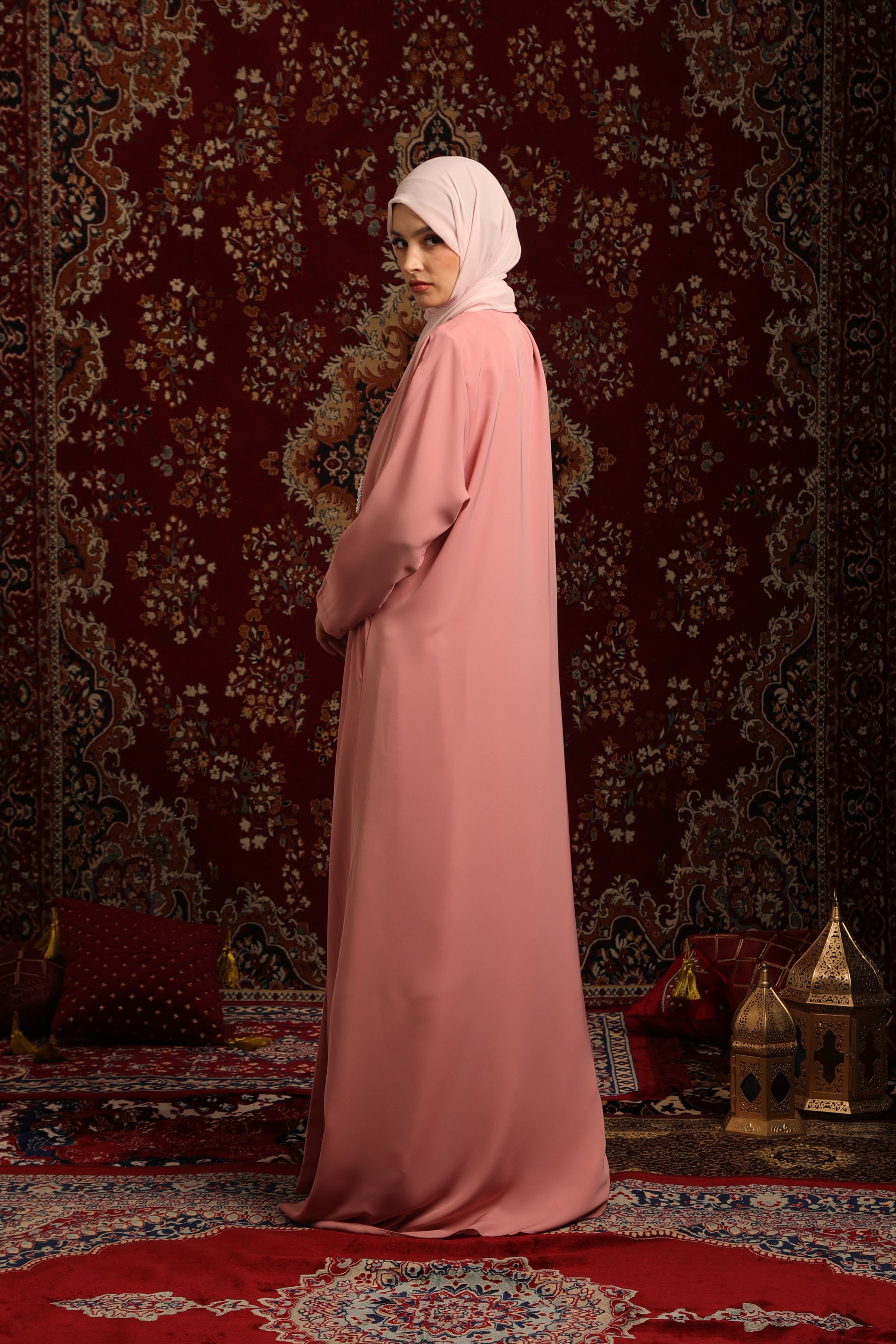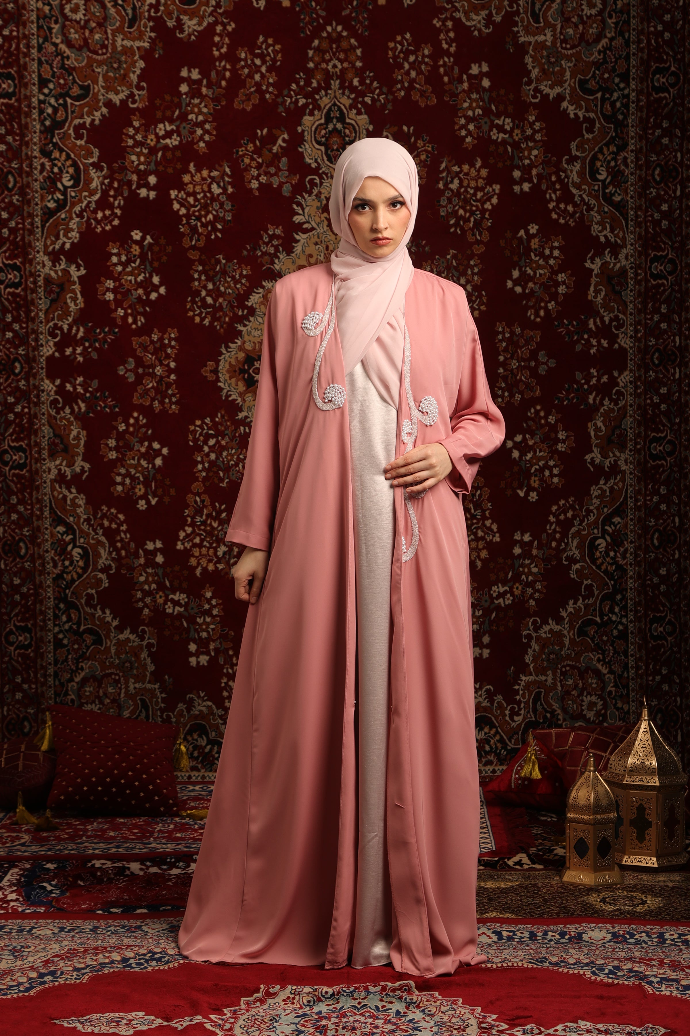 कारीगरी से सजा शॉल कॉलर: इस लग्जरी अबाया की सबसे खास बात इसका खूबसूरत शॉल लैपल कॉलर है, जिस पर बारीक हस्तकला का काम किया गया है। यह नाजुक कारीगरी इसे एक खास और प्रीमियम फैशन से प्रेरित लुक देती है, जिससे यह अपने आप में अनोखा बन जाता है।