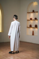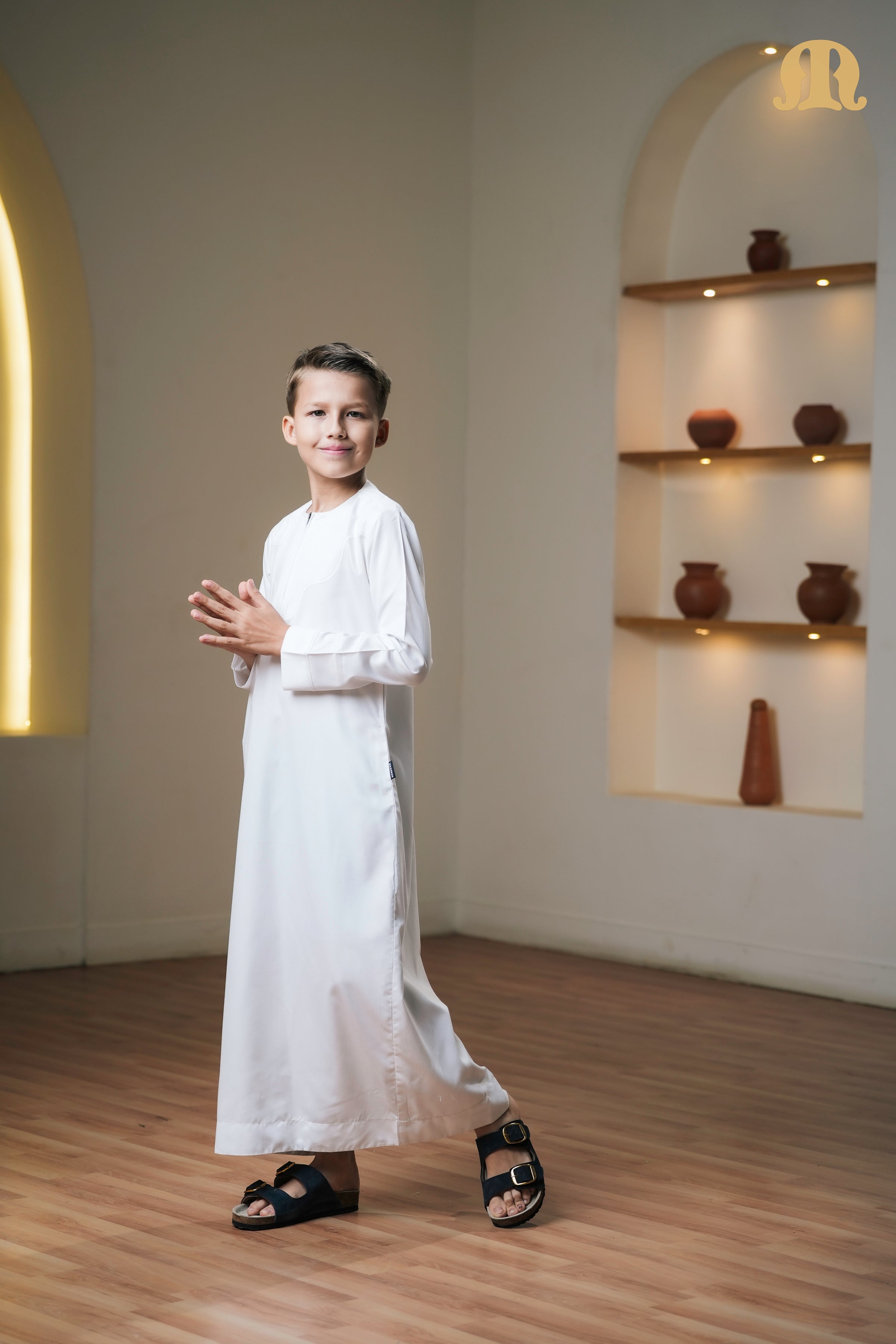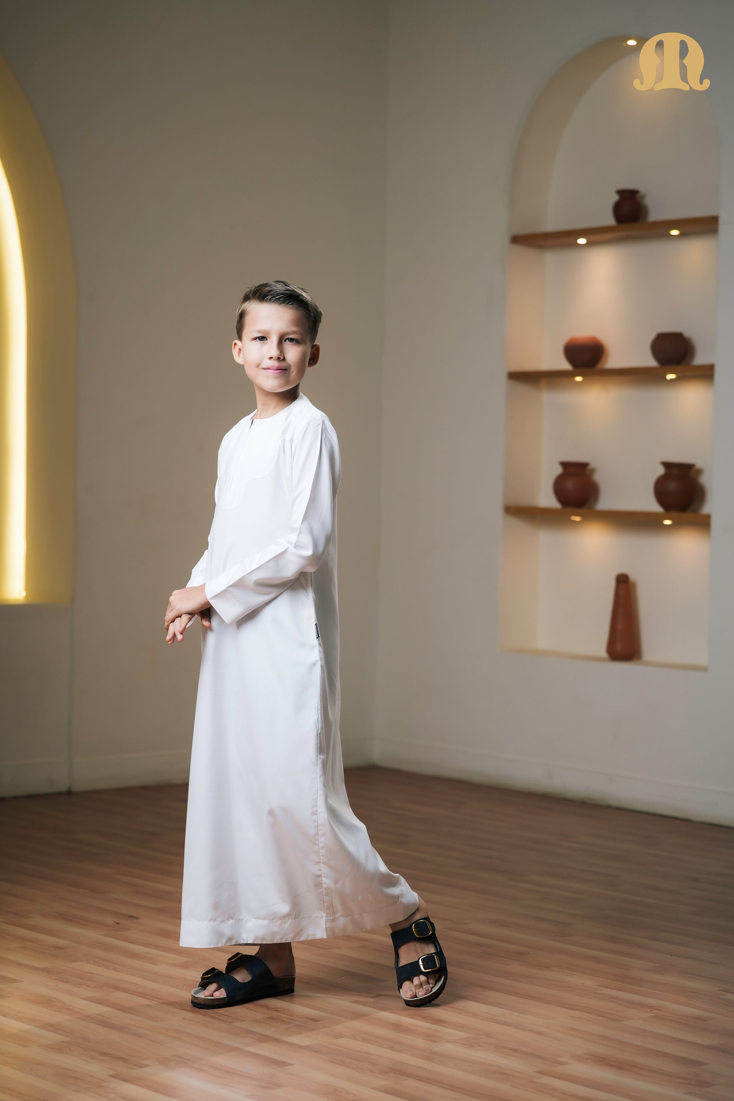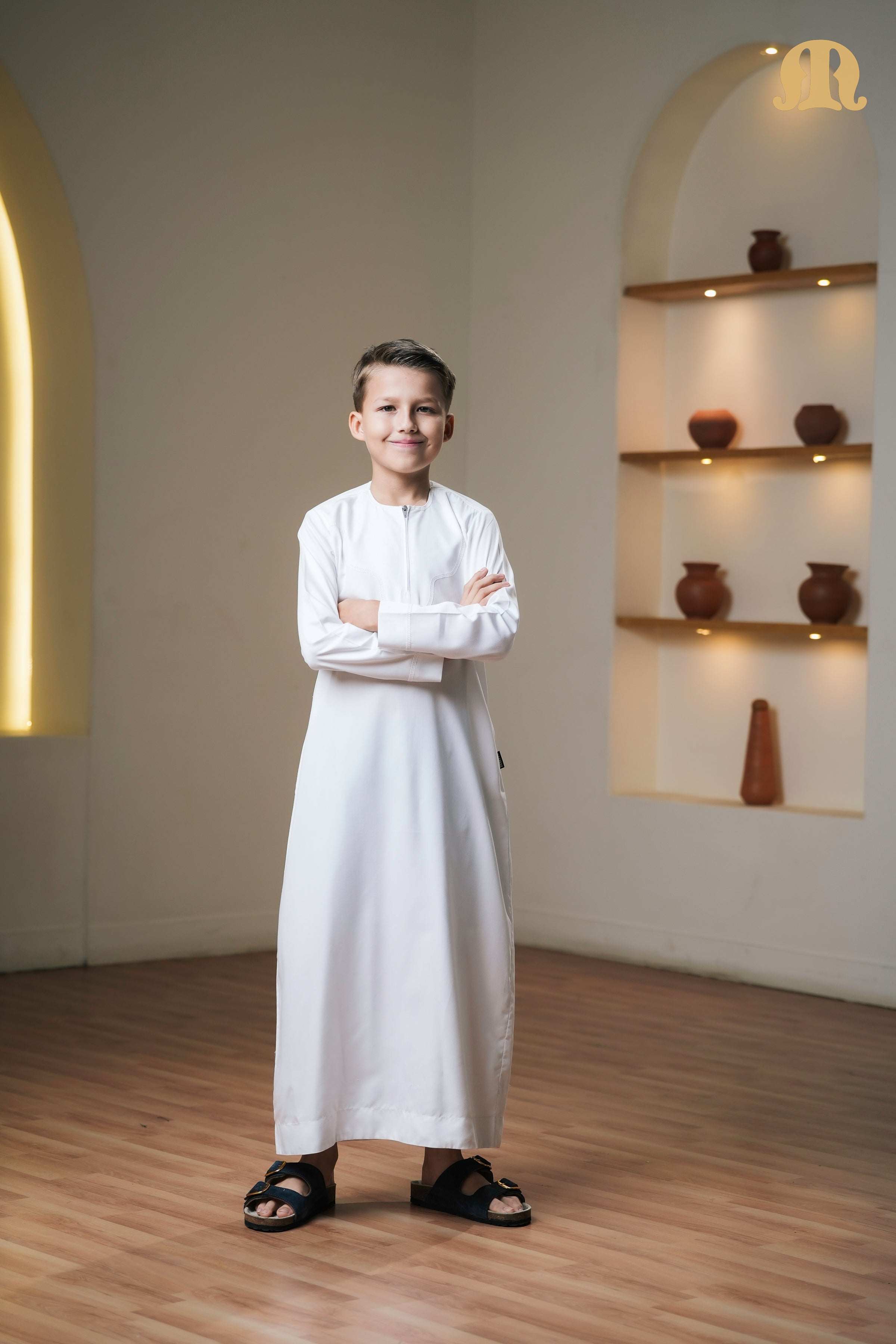 Experience timeless elegance with the Kurvig Omani 2.0 White Thobe, crafted for comfort, modesty, and everyday refinement. Designed in the classic Omani silhouette, this thobe features a clean, structured fall with a subtle neckline detail that reflects traditional craftsmanship while maintaining a modern, minimalist aesthetic.