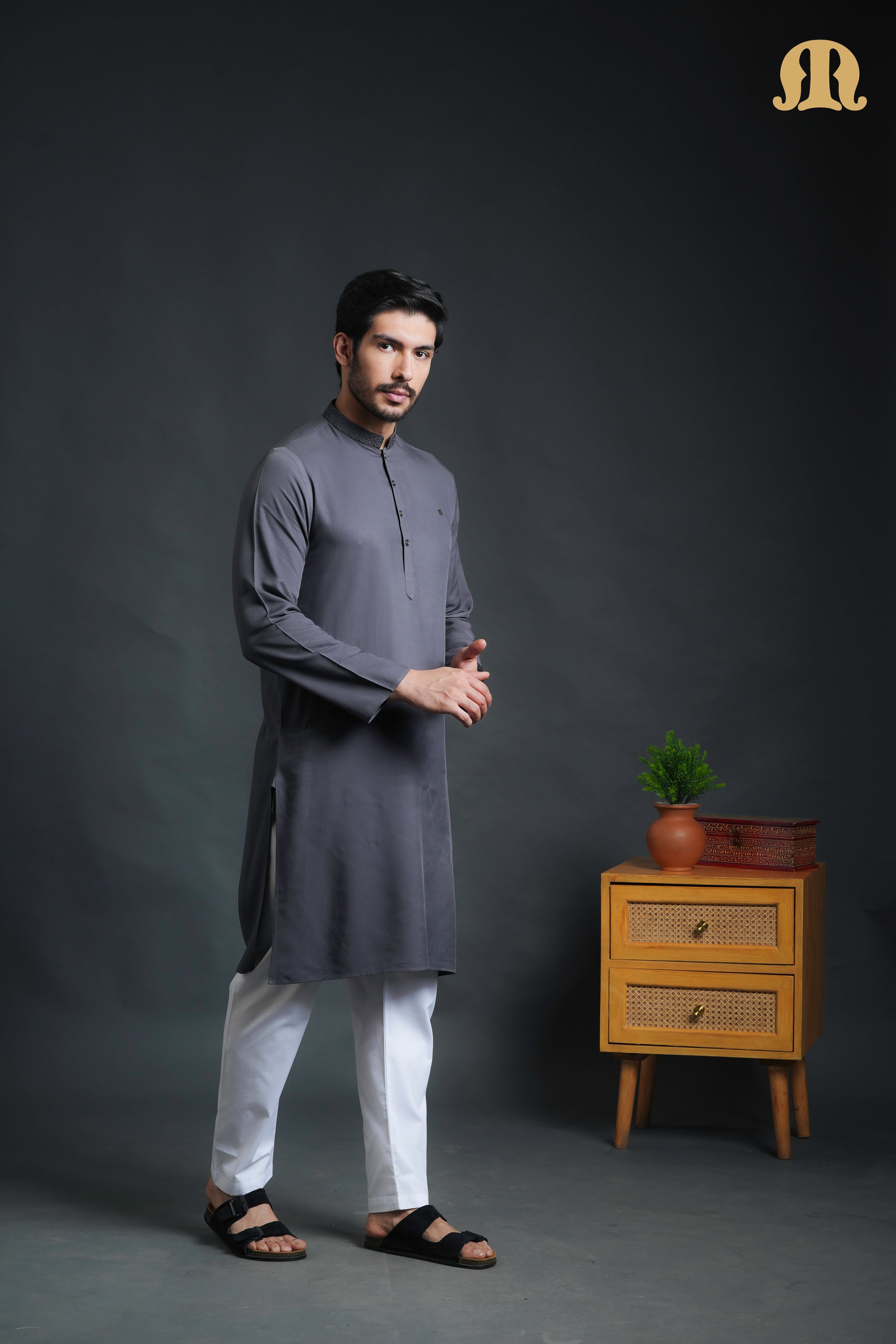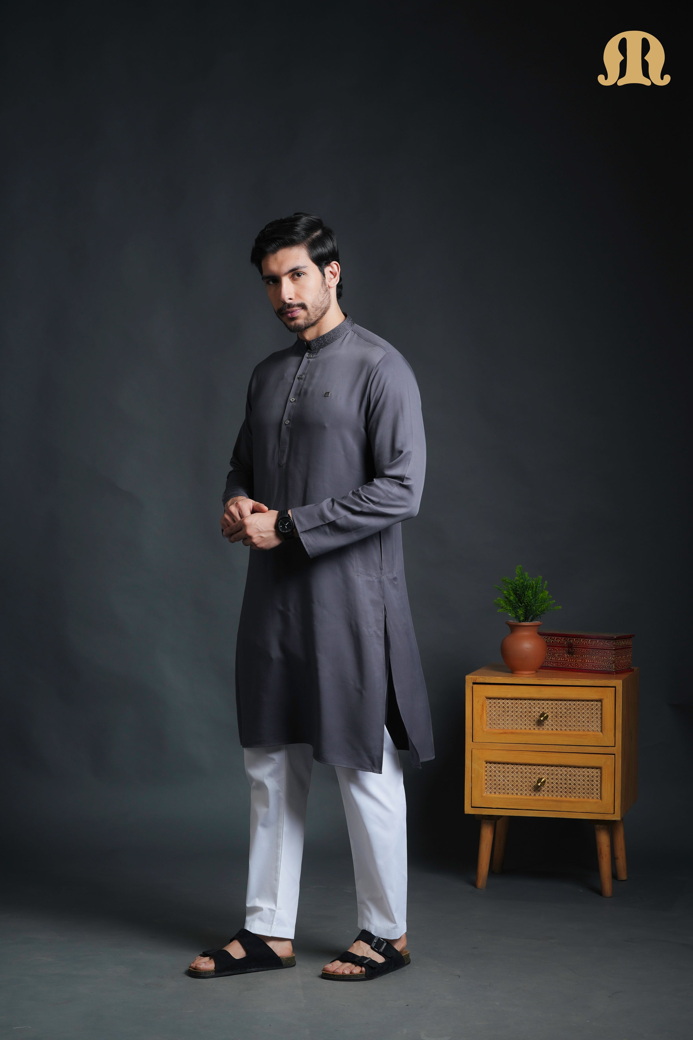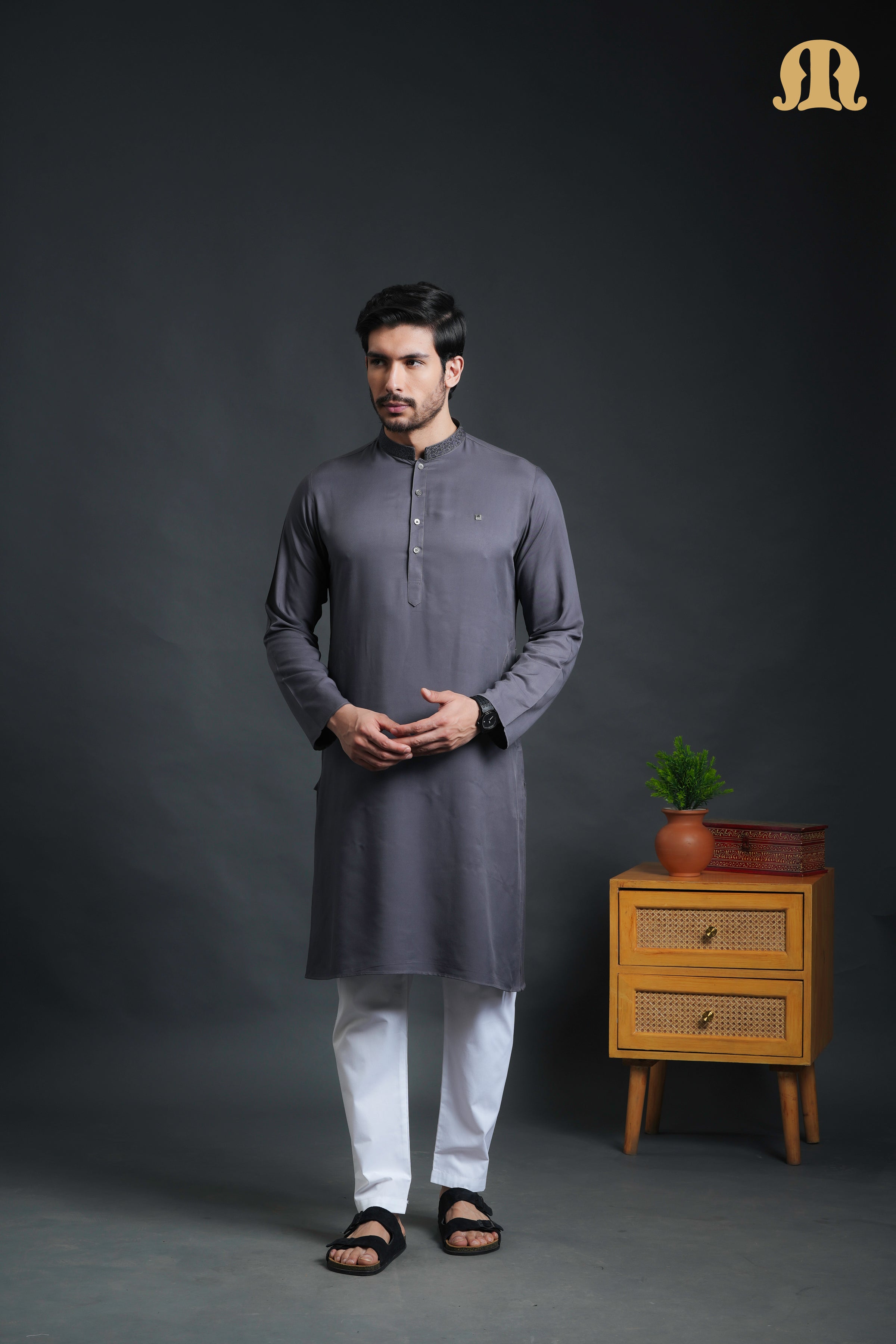 Elegant and understated, the Yavan Embriodered Grey Kurta Set is designed for those who appreciate refined traditional wear with a modern sensibility. The kurta features a classic band collar adorned with subtle embroidery, adding a touch of craftsmanship and sophistication to its clean silhouette.