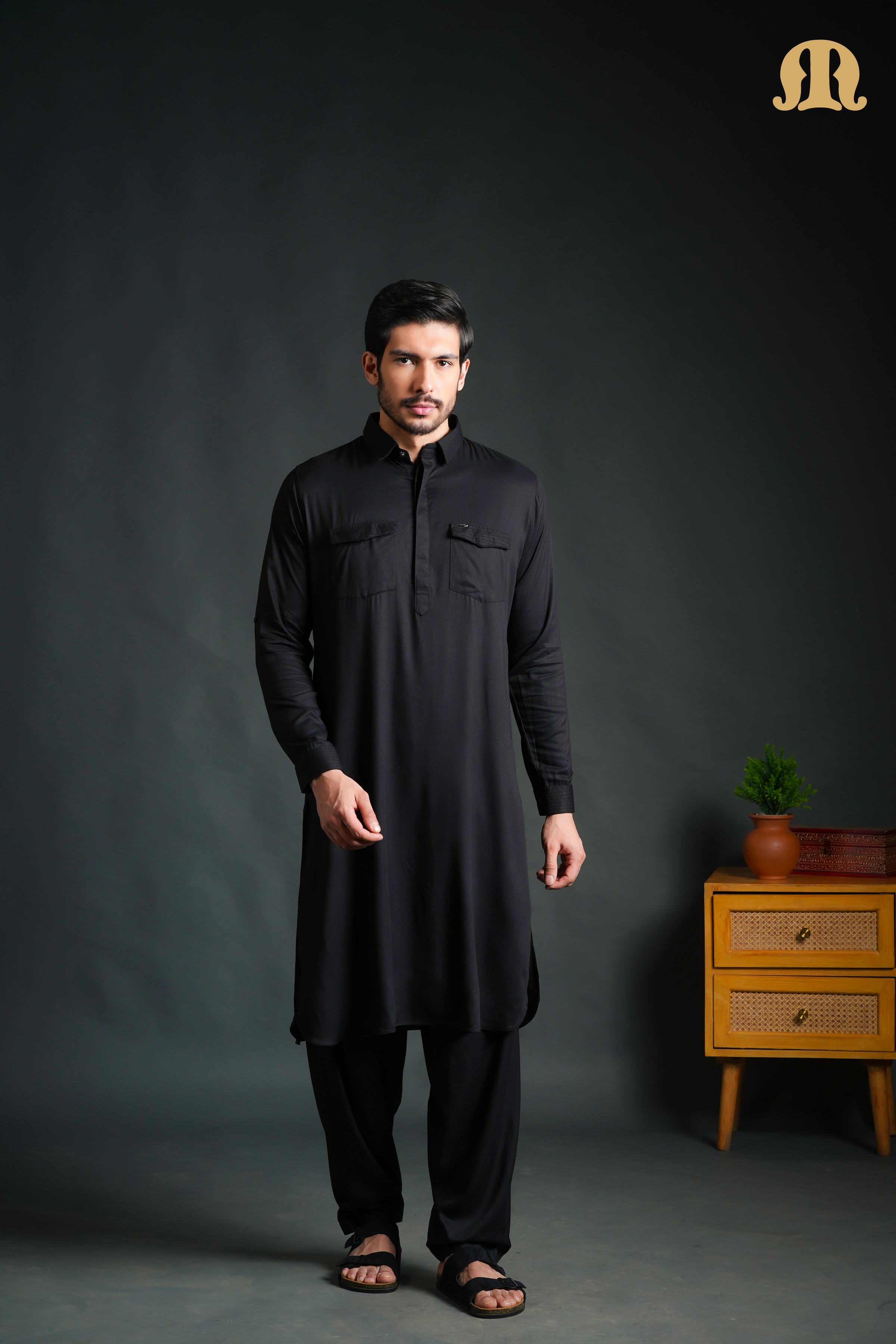 Make a bold yet refined statement with the Kikan Black Pathani Set, tailored from premium viscose fabric for a smooth feel and elegant drape. Designed with a shirt-style collar and cuffs, this set delivers a sharp, contemporary Pathani look while ensuring all-day comfort.