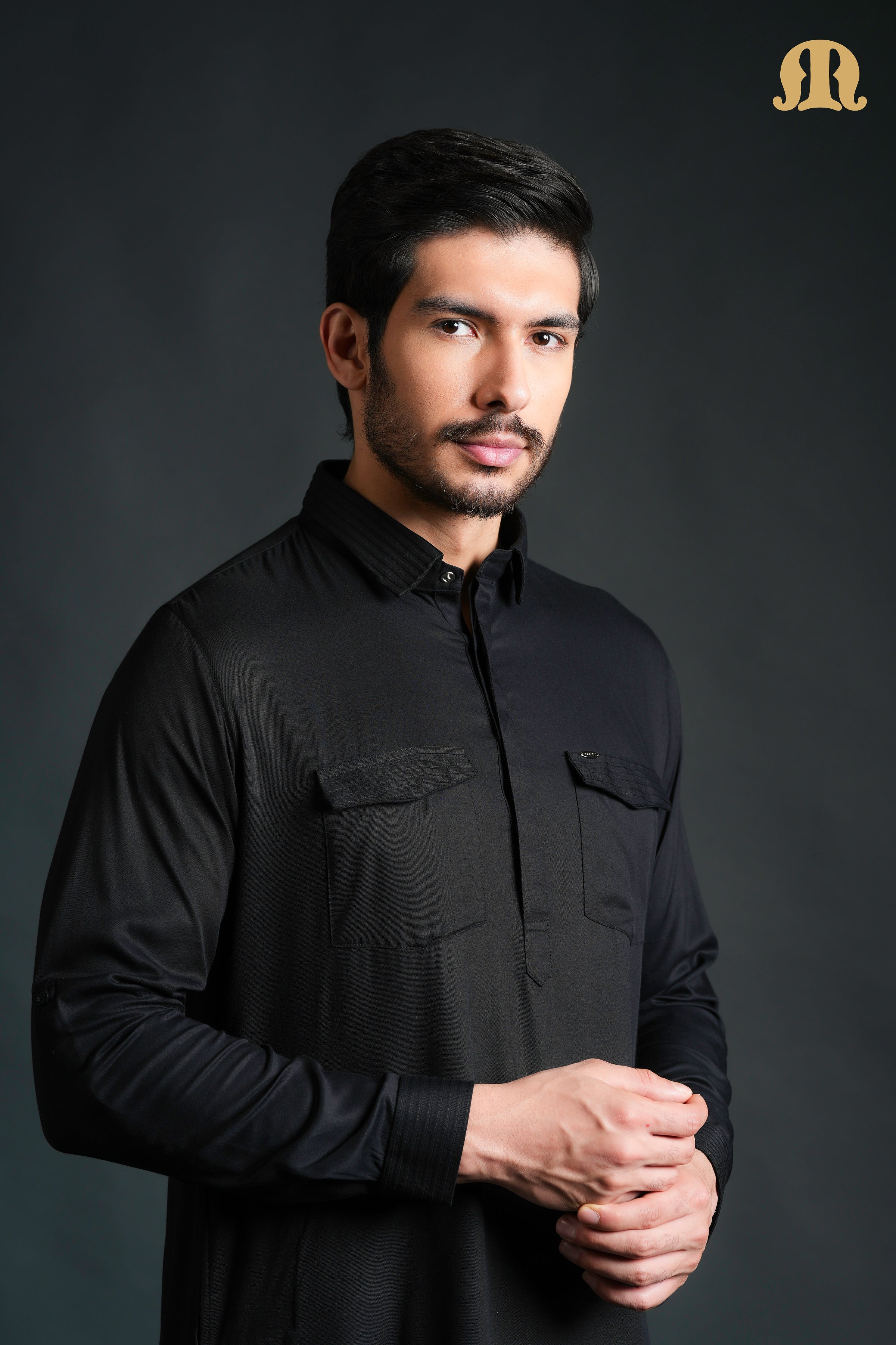 The kurta features two front flap pockets that add both functionality and a distinctive utilitarian touch. A subtle Mashroo ID on the chest enhances its signature appeal. Paired with a comfortable elastic-waist bottom, this Pathani set offers ease of wear without compromising on style, ideal for festive occasions, evening gatherings, and elevated everyday wear.