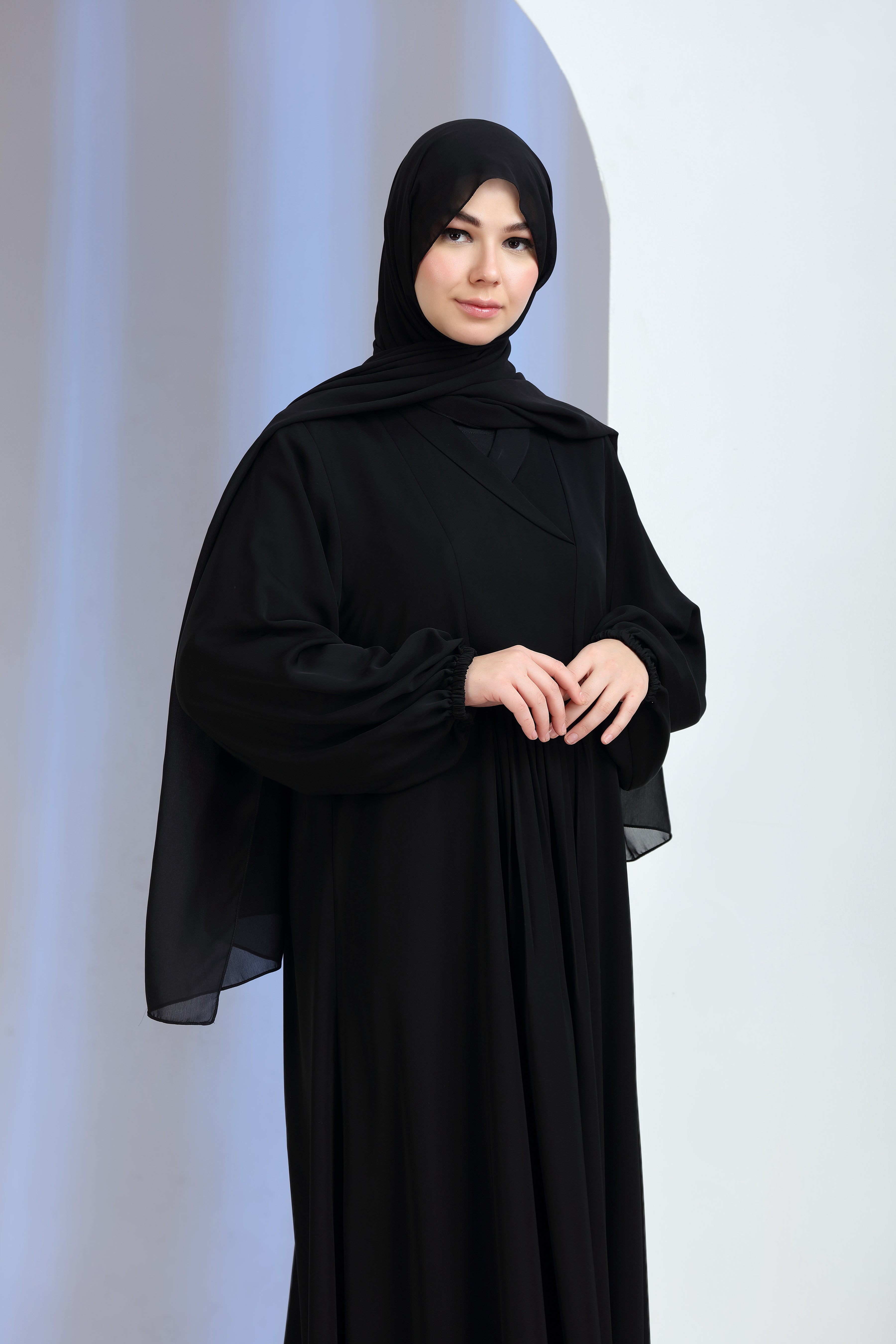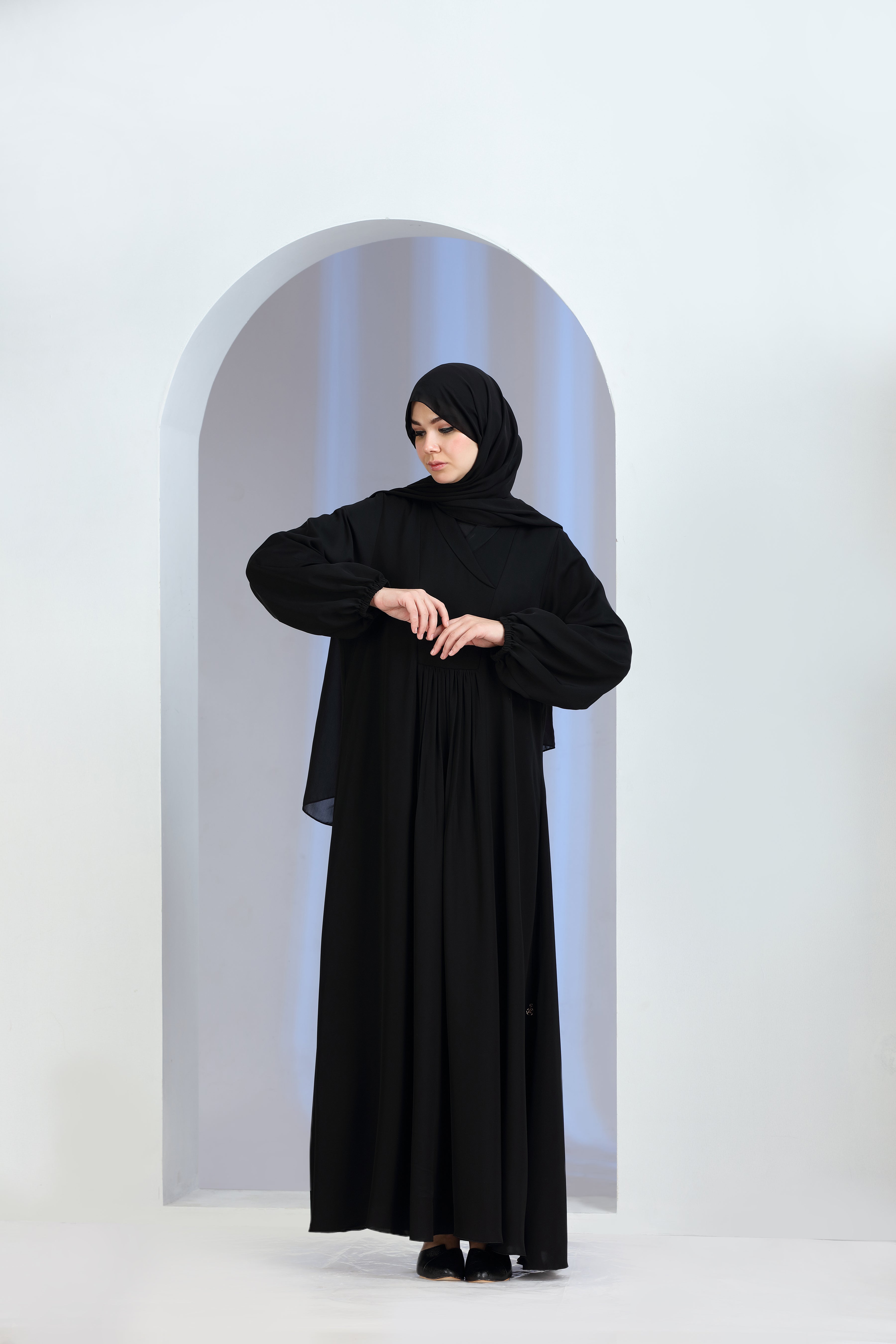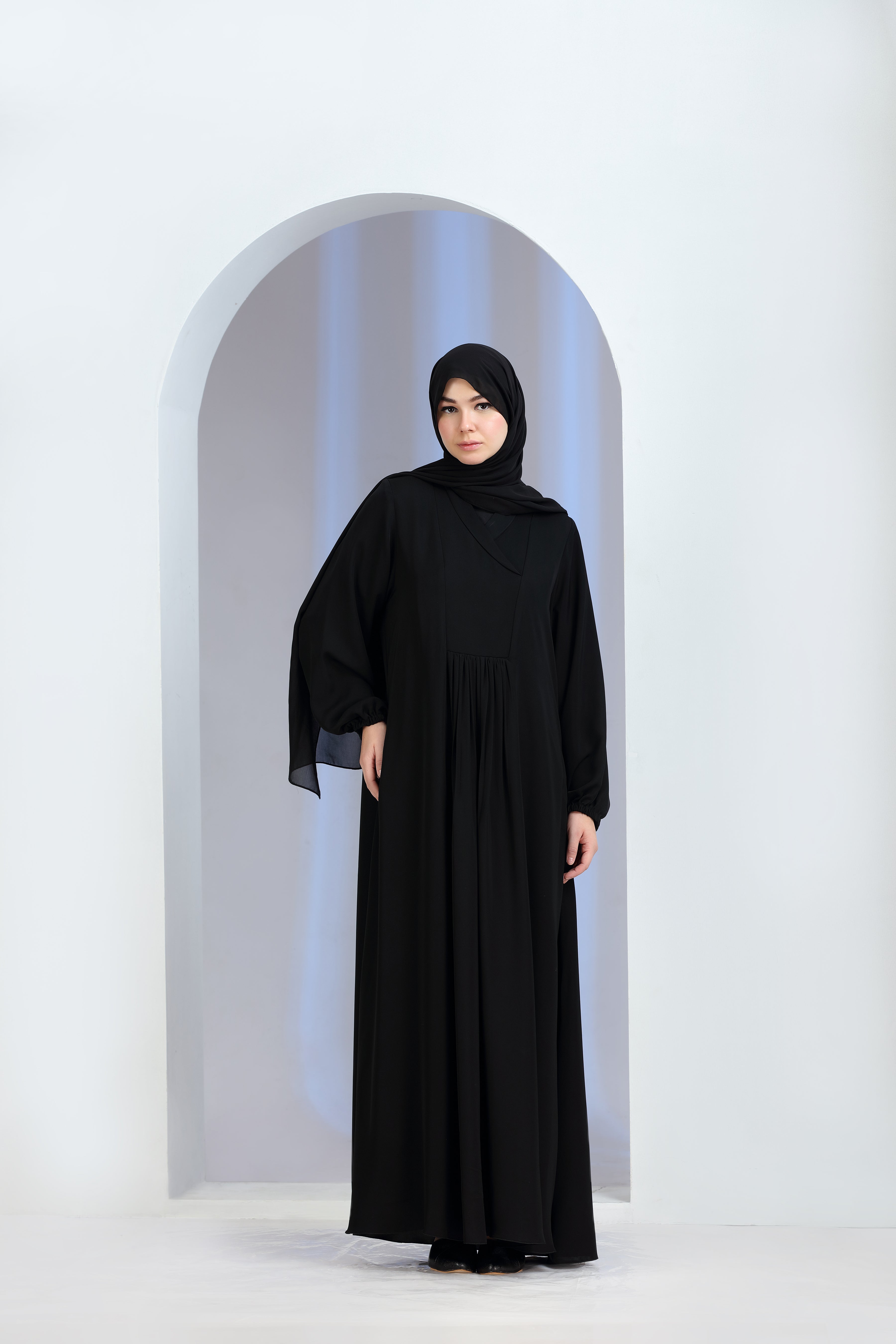 The Aika Abaya is a timeless expression of elegance and modesty, designed for effortless everyday wear. Featuring a full-length flowing silhouette with soft pleating and gently gathered sleeves, this abaya offers graceful movement and a refined, minimalist aesthetic.