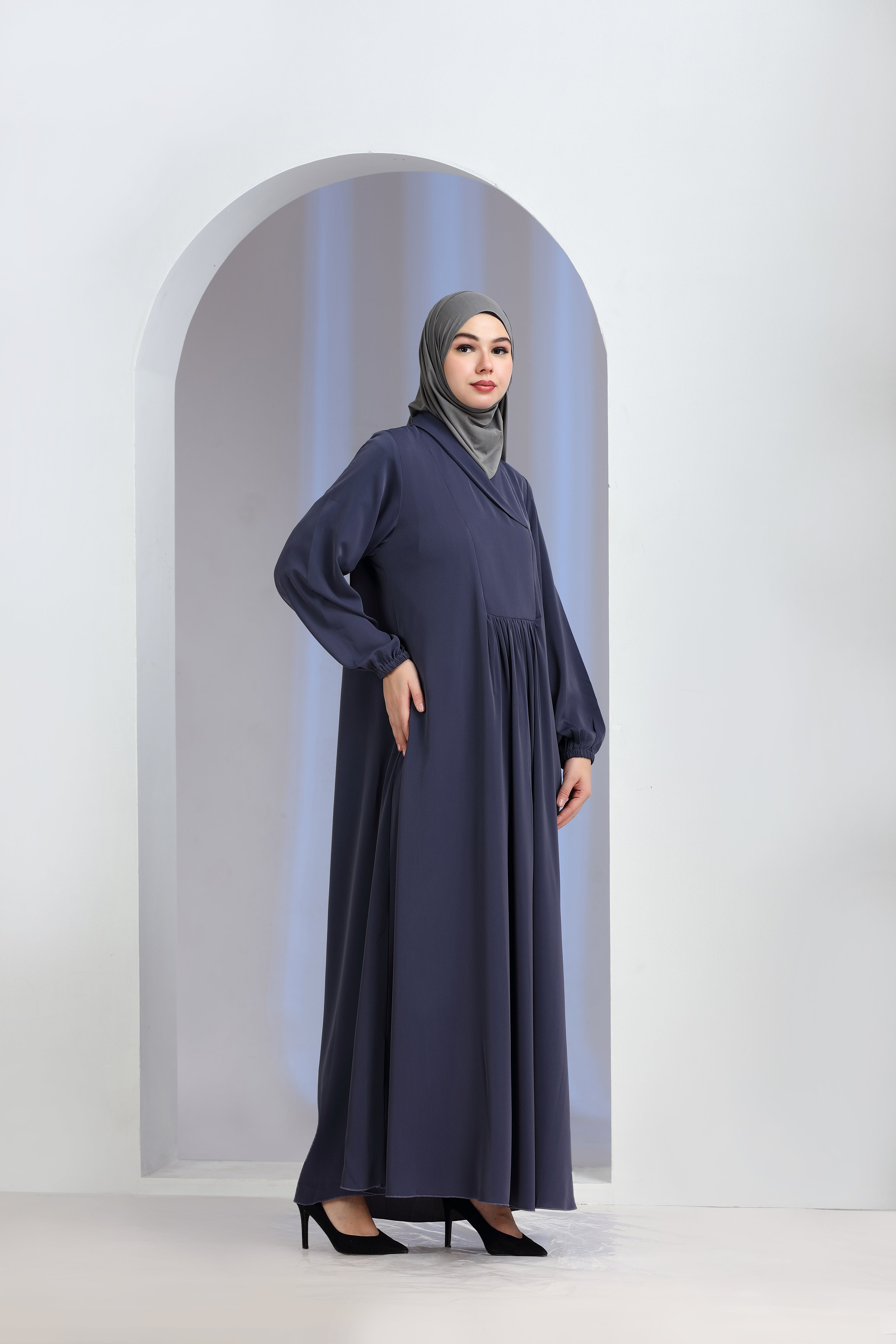 The Aika Abaya is designed for effortless elegance and everyday modest wear. Featuring a refined overlap V-neckline and a softly pleated front panel, this full-length abaya creates a graceful, flowing silhouette while maintaining clean, modern lines.