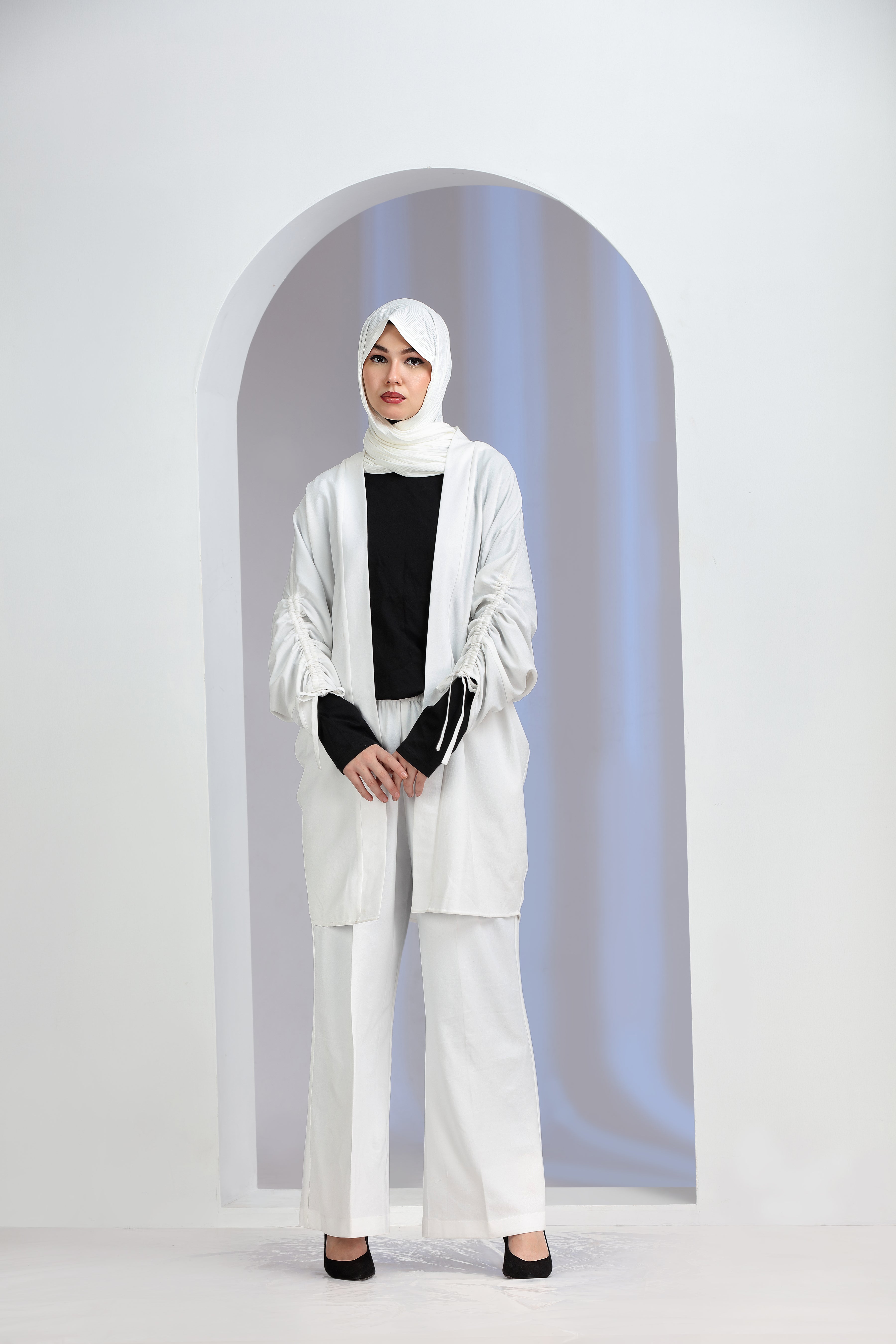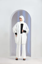 The RASMUS Co-ord Set is a perfect blend of modern minimalism and modest elegance. Designed for effortless styling, this chic two-piece outfit features a flowy longline outer paired with wide-leg trousers, creating a sophisticated and flattering silhouette. The soft, breathable fabric ensures all-day comfort, making it ideal for both casual and semi-formal occasions.
