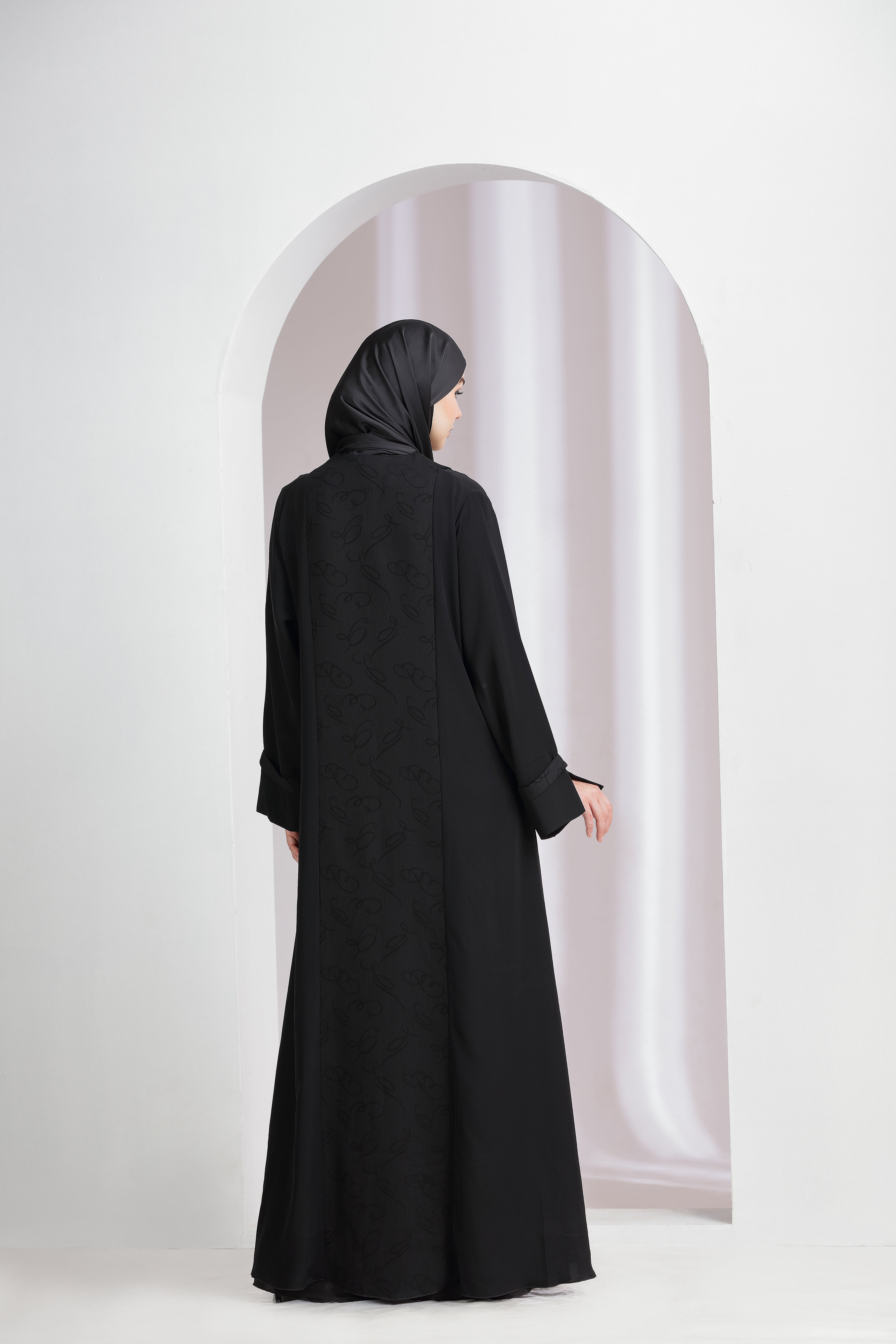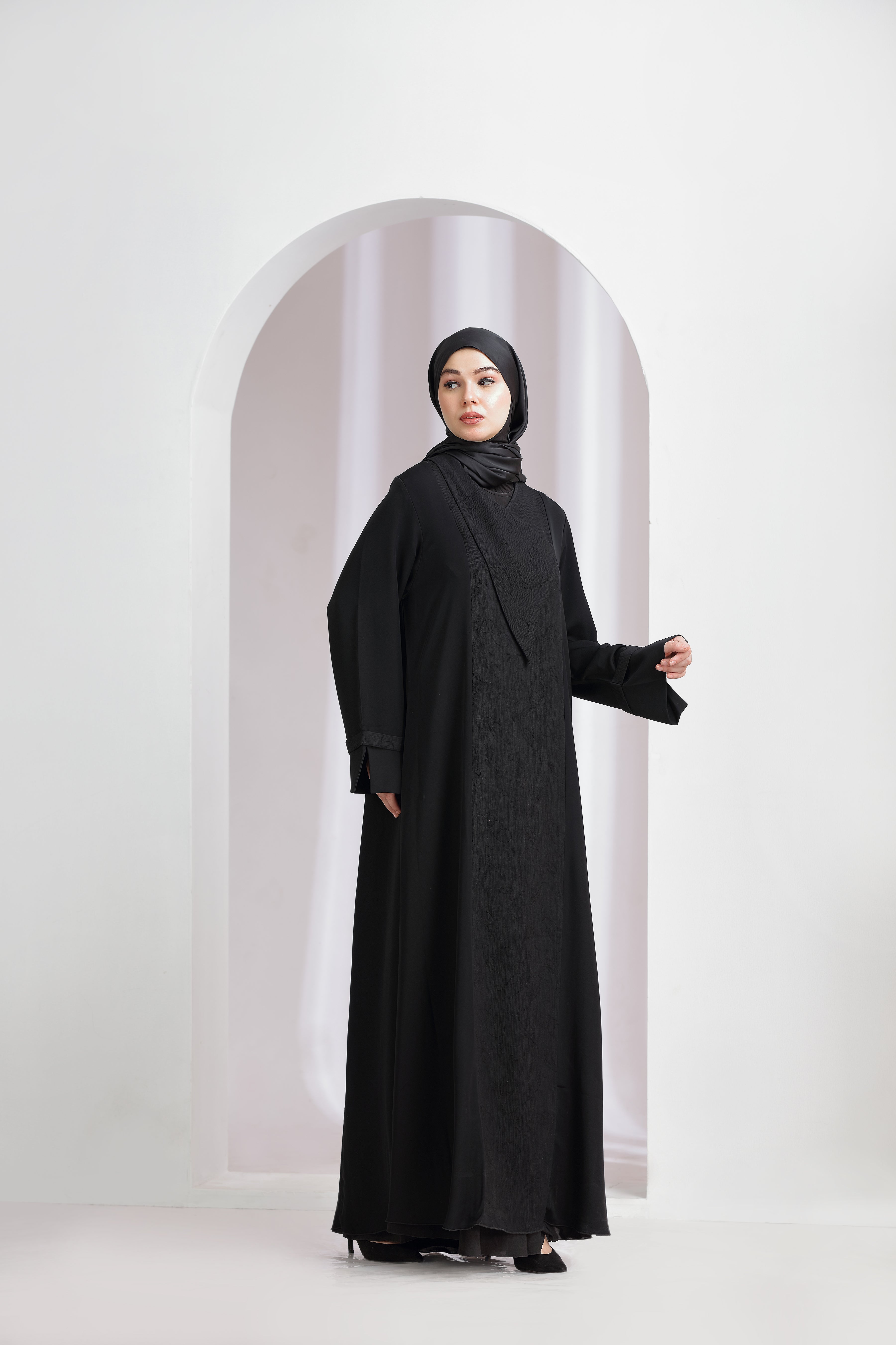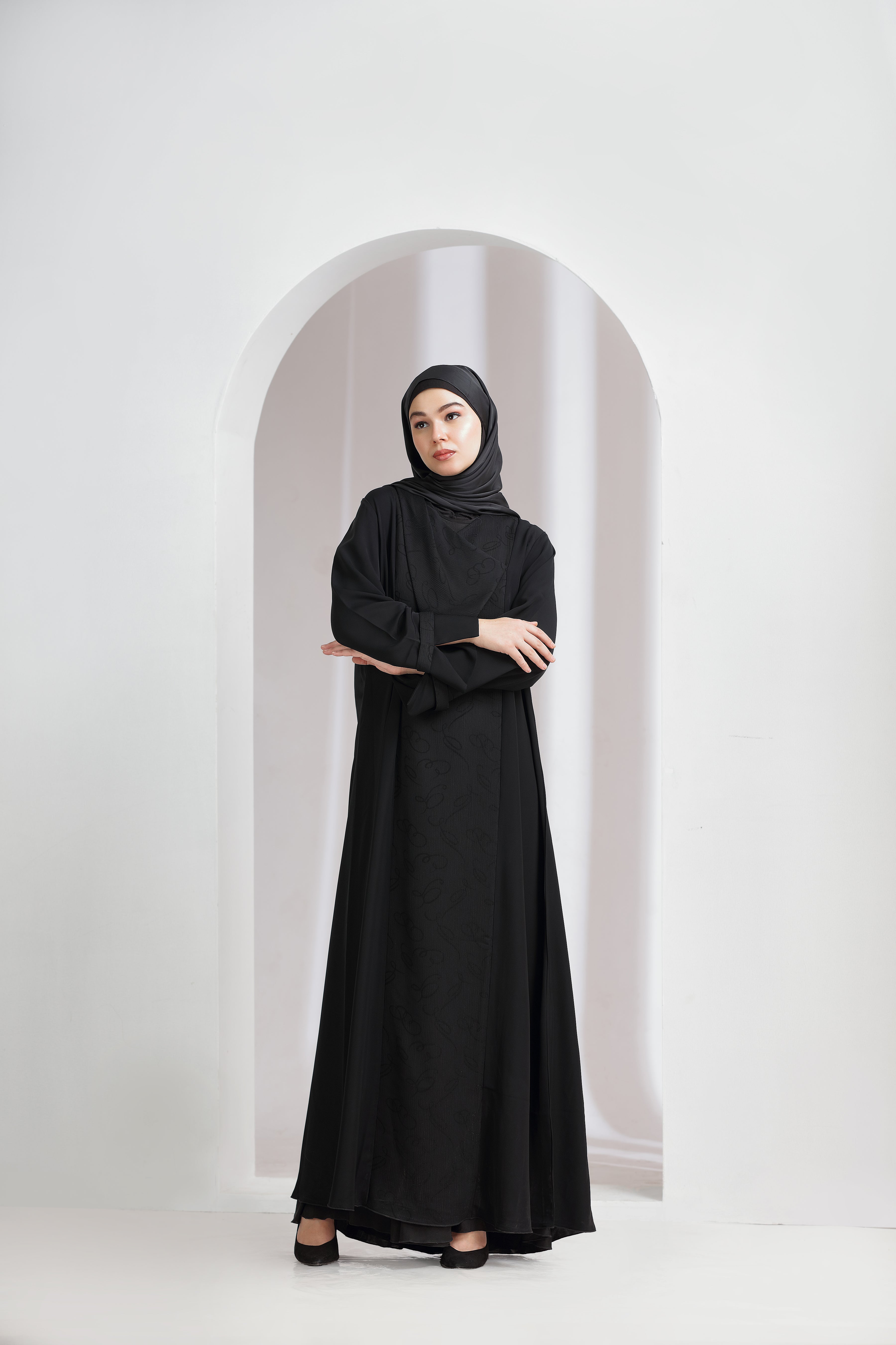 The Sema Abaya is a timeless embodiment of elegance and simplicity. Designed with a full-length flowing silhouette, this abaya features subtle textured detailing on the inner panel, adding depth and refinement while maintaining a clean, minimalist look.