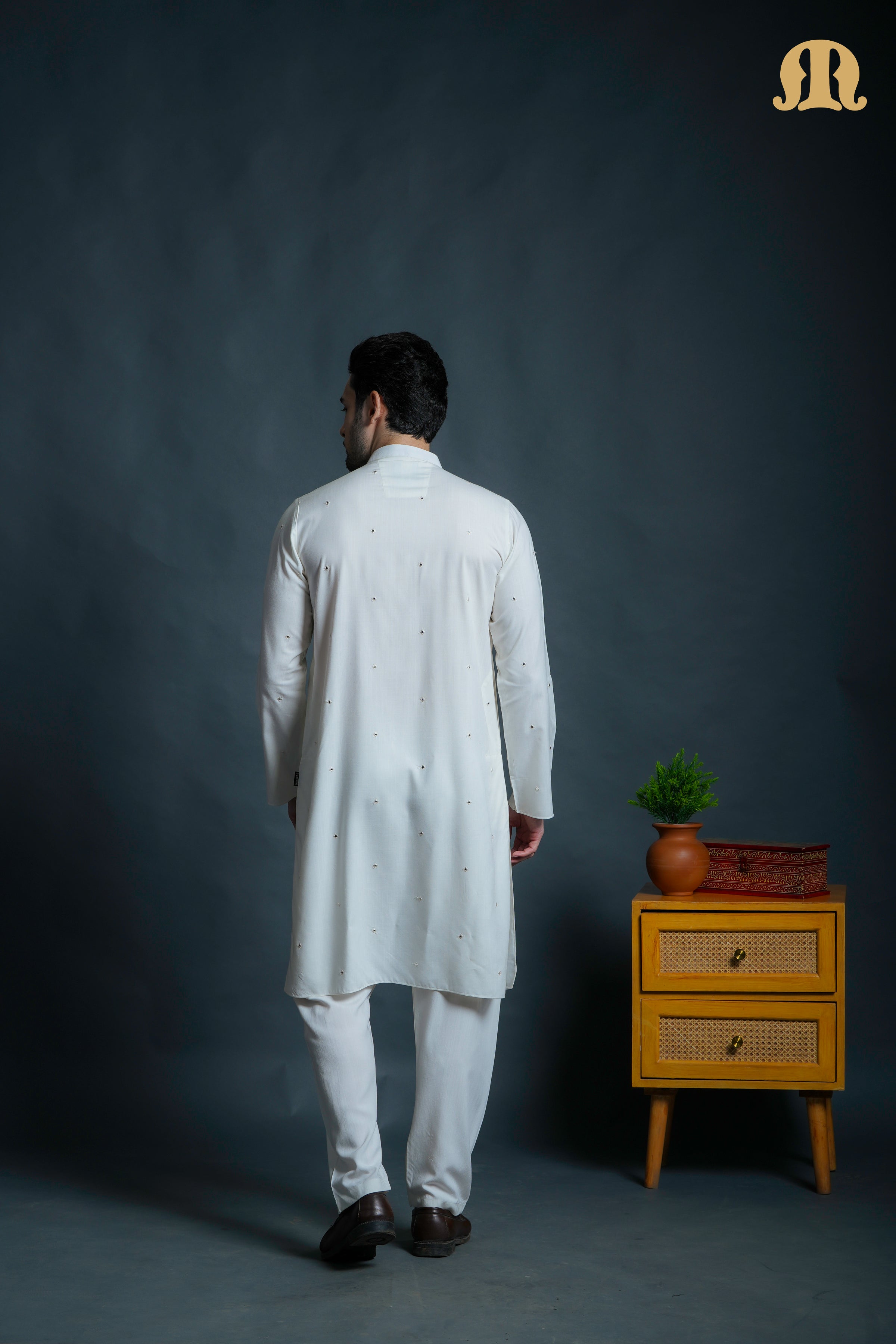 हेडोस चिकन कारी कुर्ता सेट ऑफ व्हाइट मेन