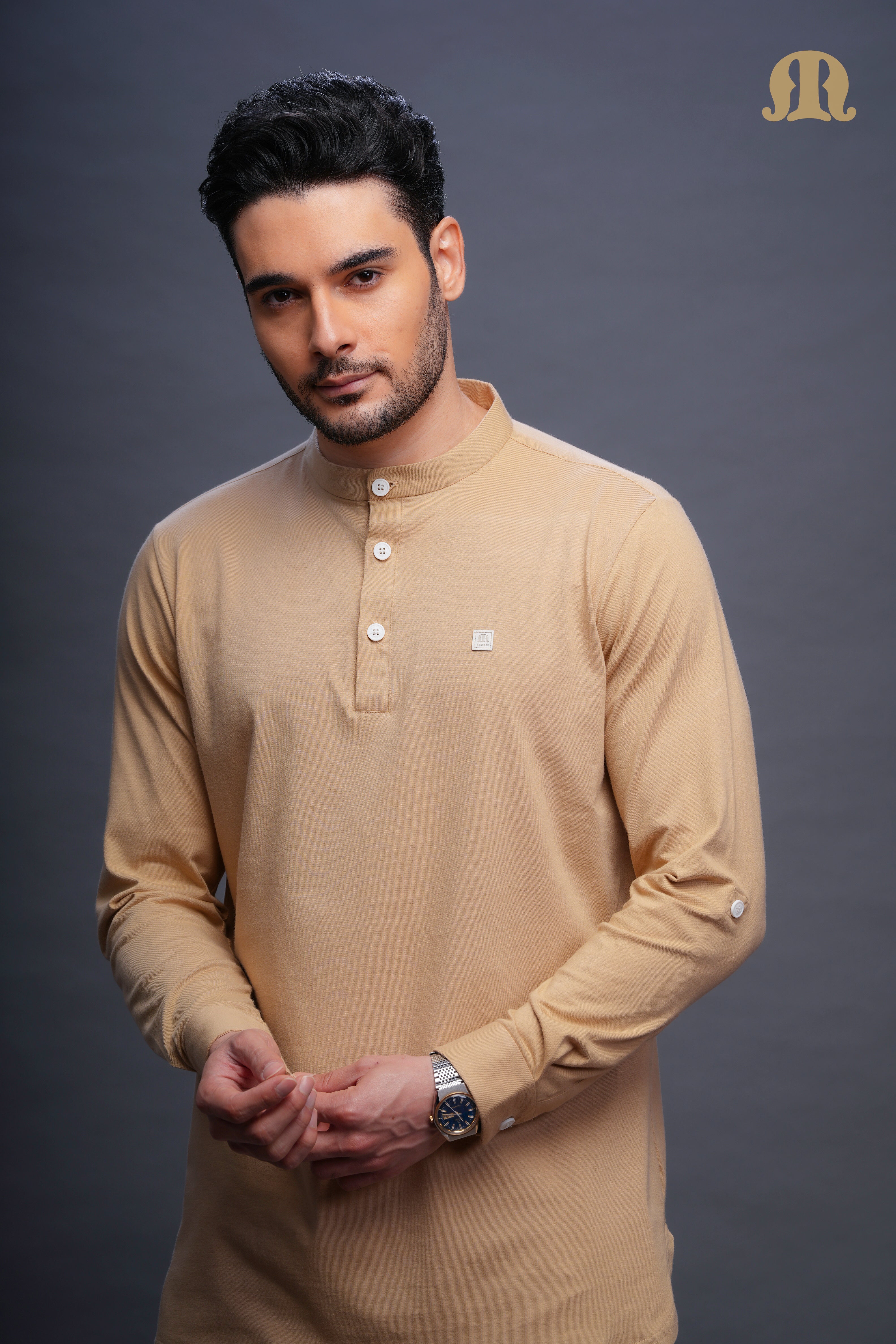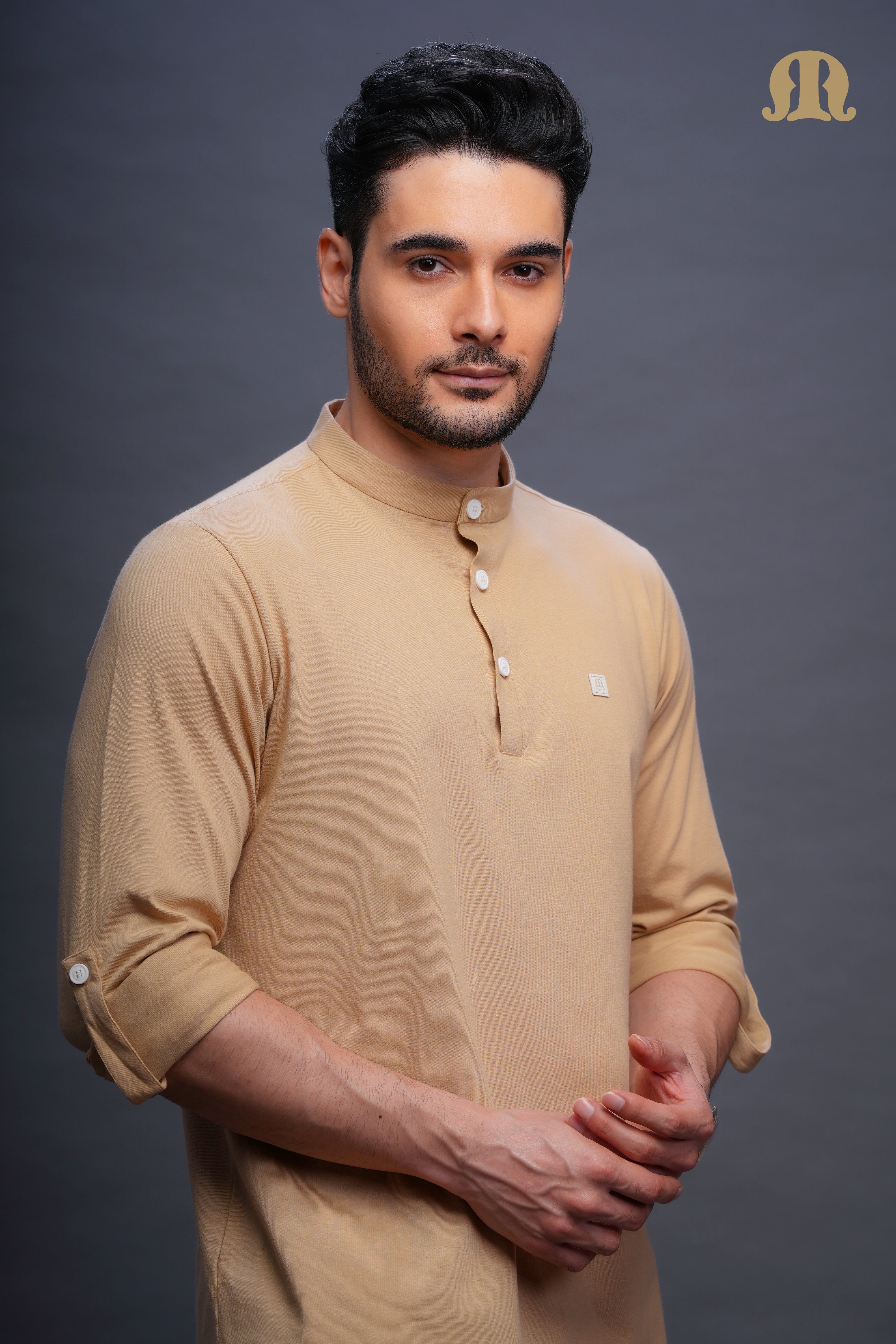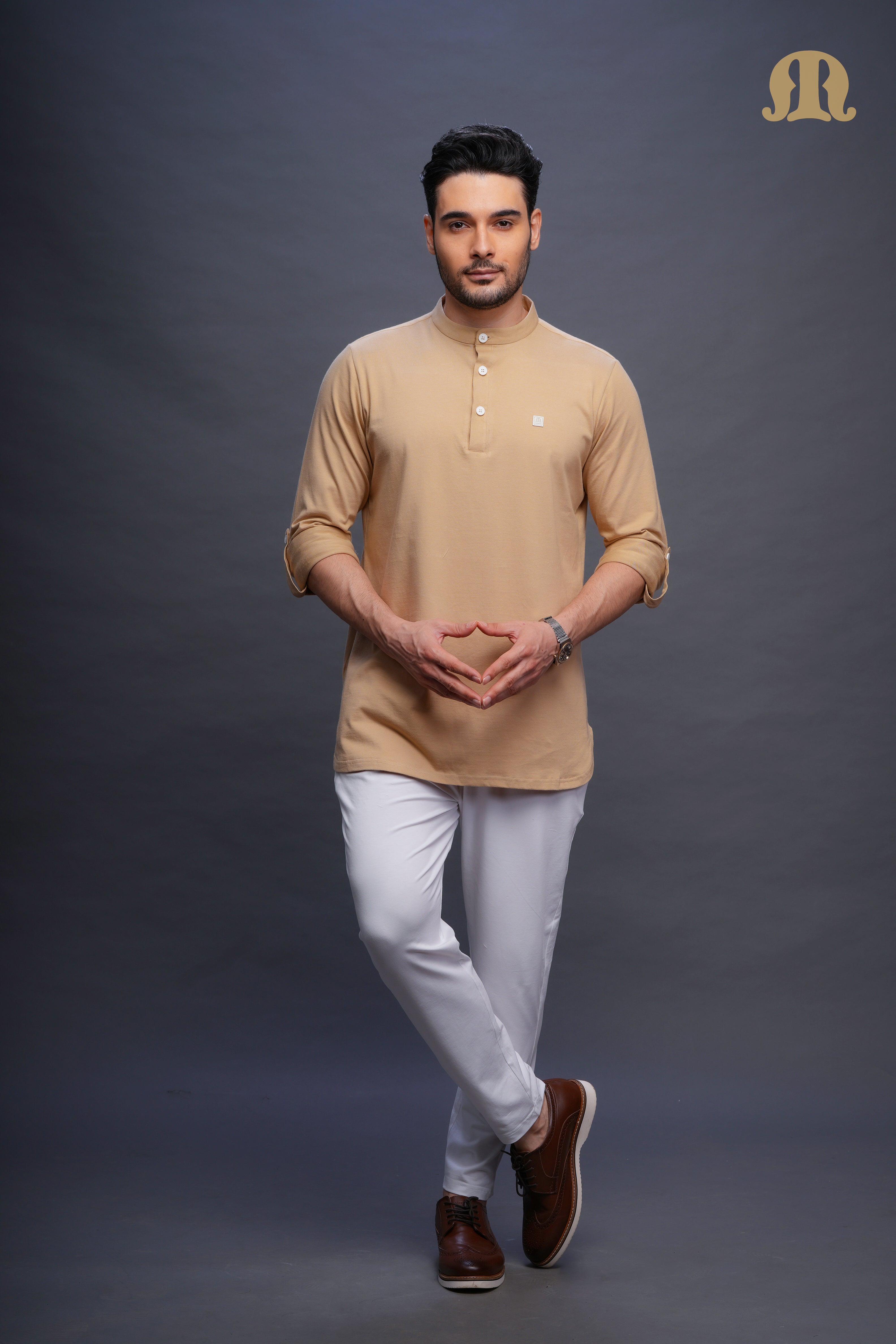 Asticus Knitted Short Kurta Payjama Set Beige Men