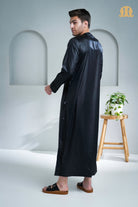Introducing our Emirati-style Thobe, a sartorial masterpiece that seamlessly merges tradition and opulence. Crafted from lustrous polyester fabric, this garment embodies the regality and modern elegance synonymous with the rich cultural heritage of the Emirates.