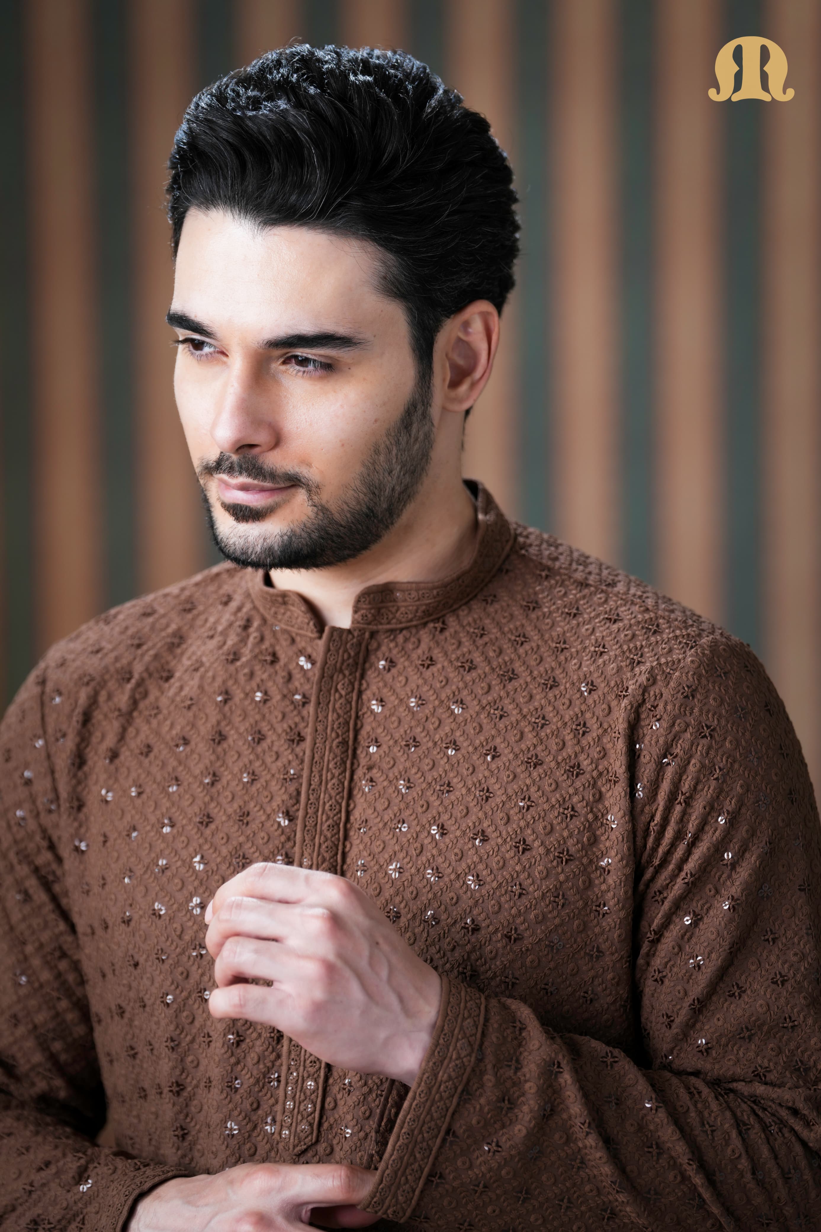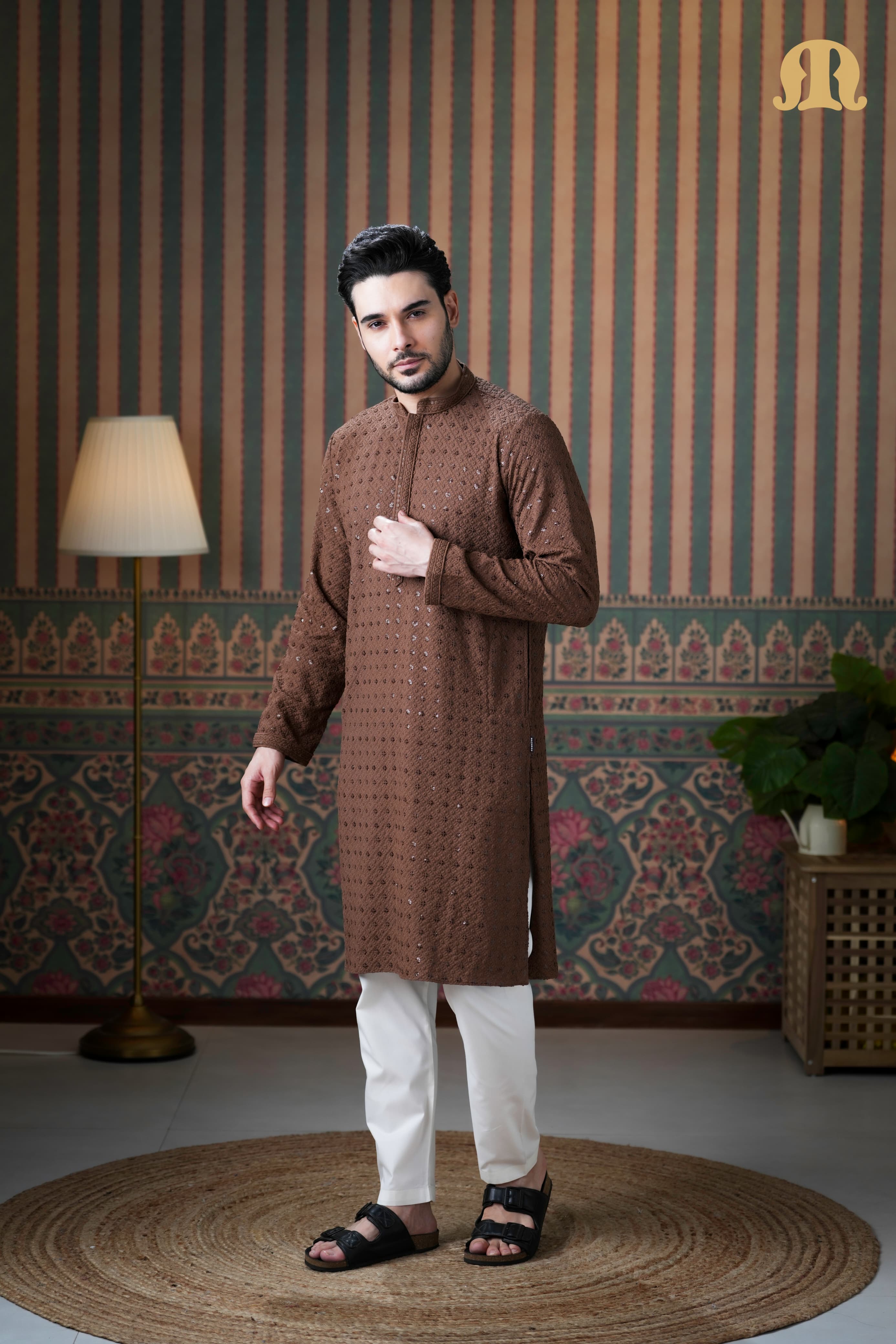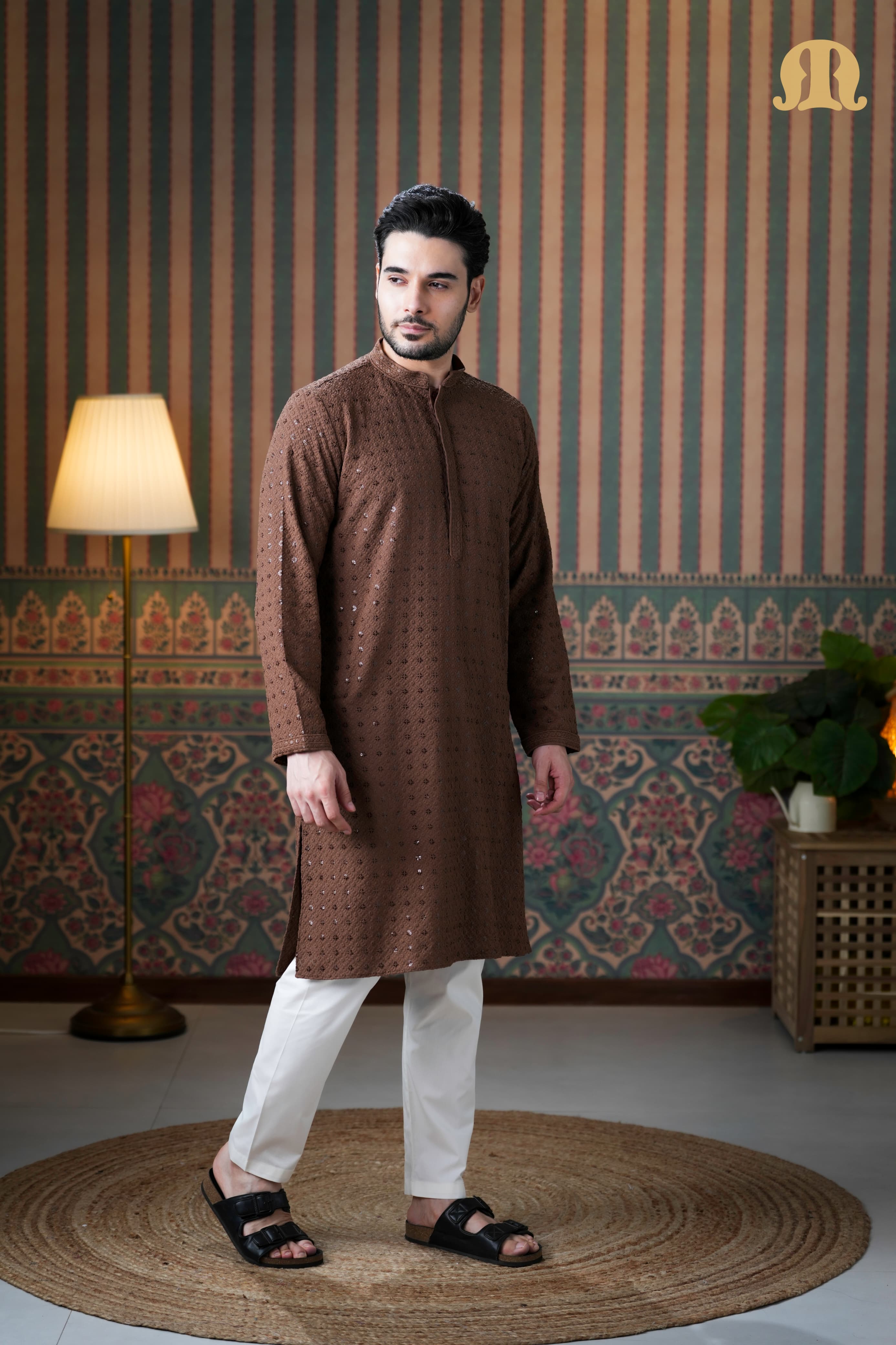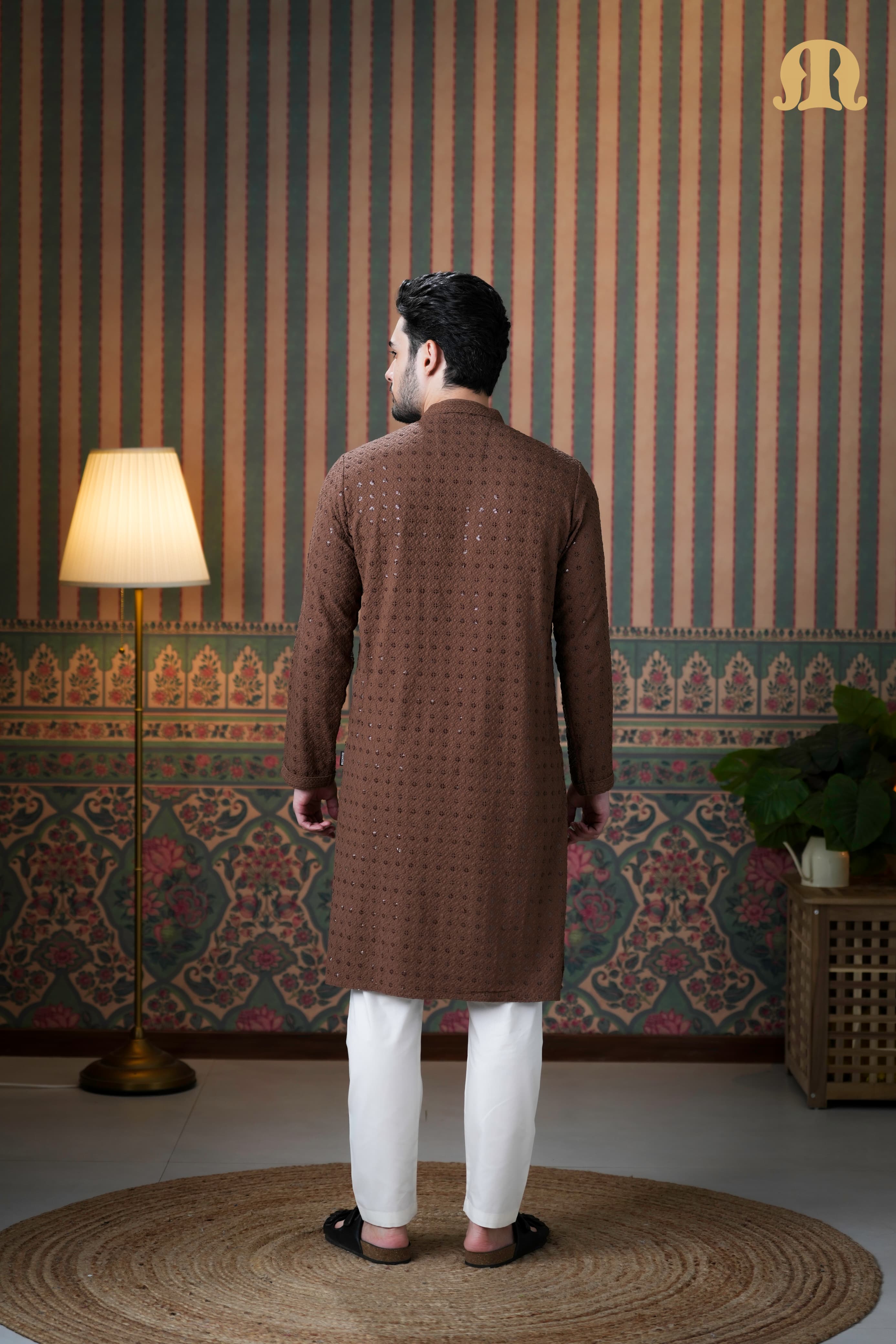 Haydos Chikankari Kurta Brown 2.0 for Men