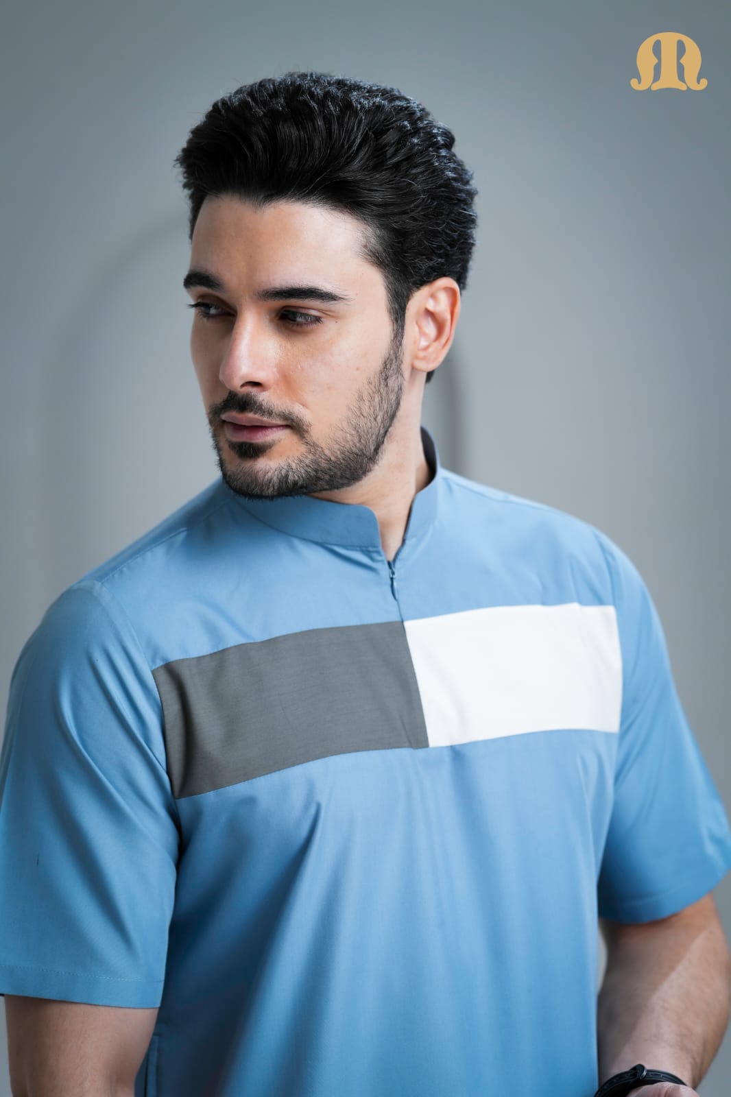 The Kostas Thobe by Mashroo offers a contemporary and stylish twist on traditional thobes, crafted from premium poly-cotton fabric for exceptional comfort and durability. Designed with half sleeves, this thobe is perfect for warmer weather or casual occasions while maintaining a sharp, modern appearance.