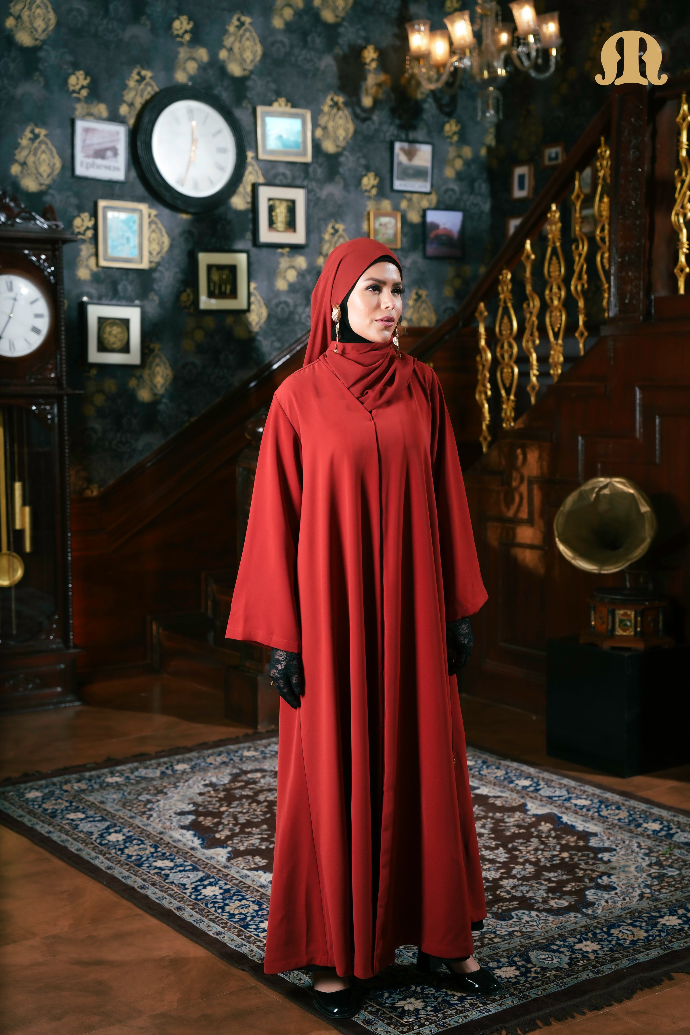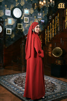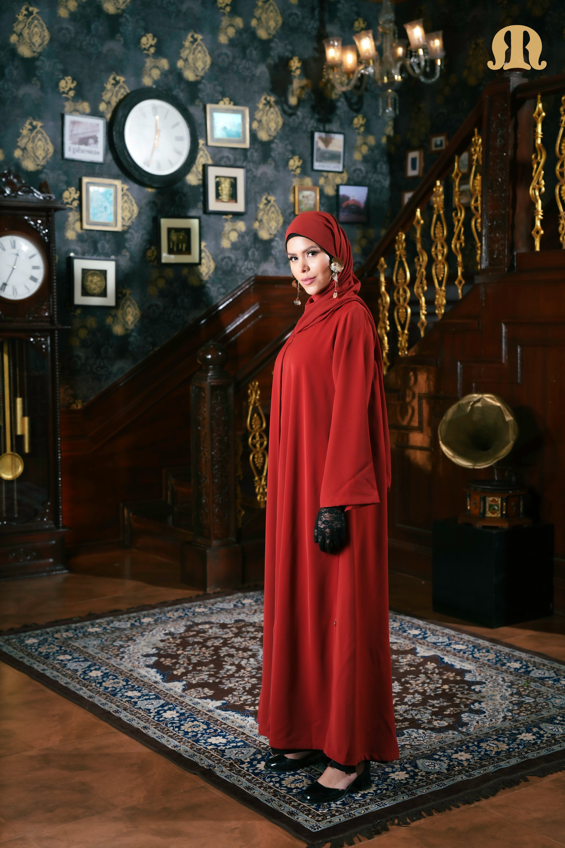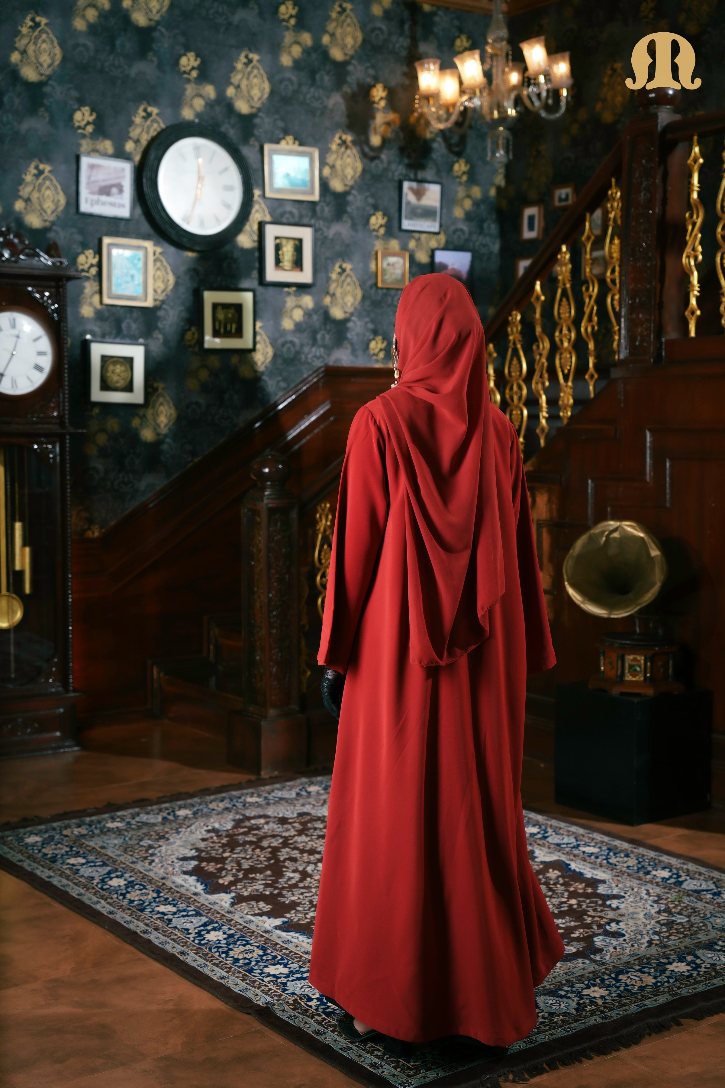 Discover timeless elegance with the Kilts Abaya, crafted from luxurious imported imperial fabric in a warm red shade — a refreshing twist to the classic abaya palette. The front-open silhouette exudes effortless grace, designed for women who value understated sophistication. With its clean lines and minimal detailing, this abaya transitions seamlessly from everyday wear to refined occasions.