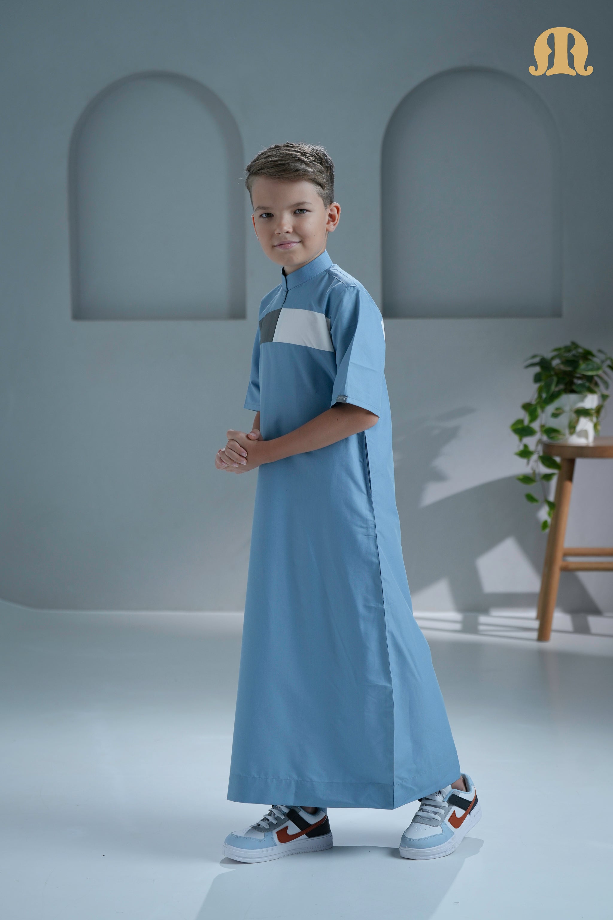 The Kostas Thobe by Mashroo offers a contemporary and stylish twist on traditional thobes, crafted from premium poly-cotton fabric for exceptional comfort and durability. Designed with half sleeves, this thobe is perfect for warmer weather or casual occasions while maintaining a sharp, modern appearance.