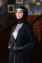Make an unforgettable impression with the Nexa Abaya, exquisitely crafted from premium Korean Nida fabric in a timeless black hue. This front-open abaya features a drop waistline and hand-embroidered Art Deco–inspired detailing, adding a sense of vintage charm and regal sophistication.