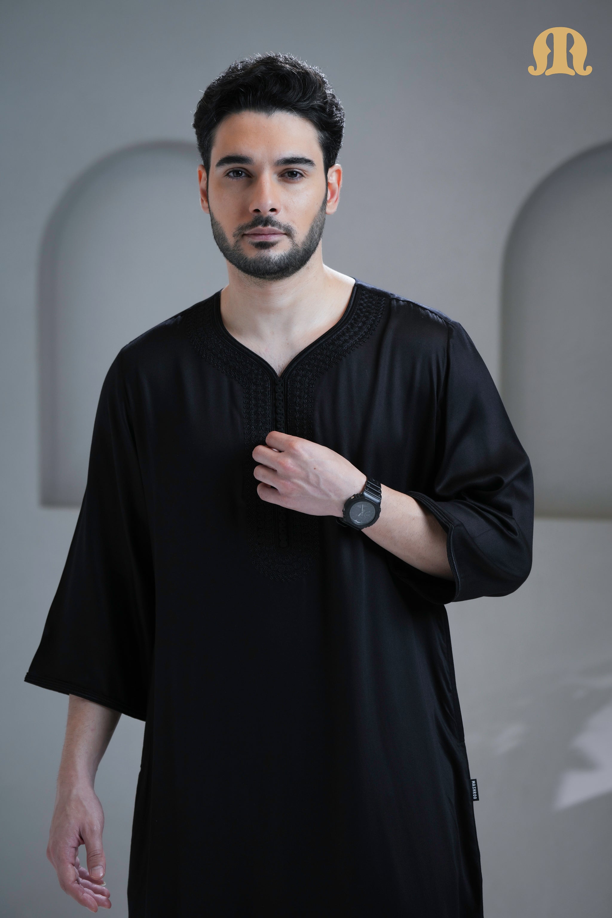 Experience the perfect blend of tradition and modern style with our Tiznit Black Moroccan Thobe. Order now!