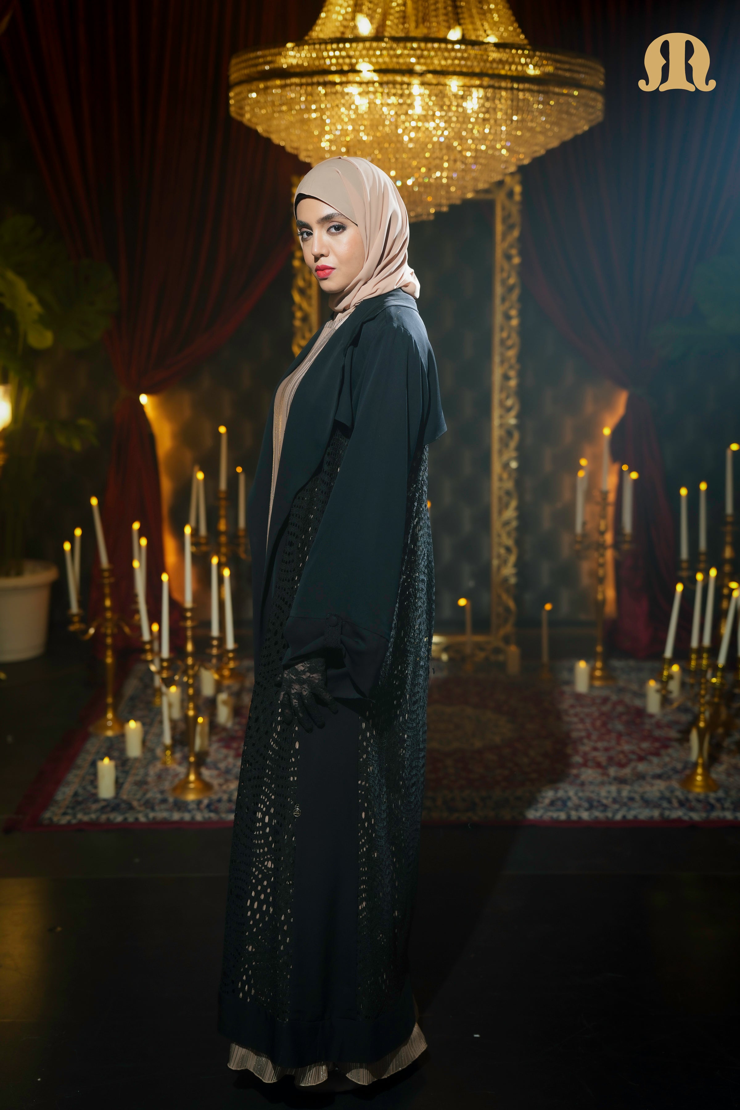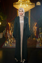 The minimal sleeves highlight the richness of the fabric, allowing the intricate lace detailing to stand out. Designed for versatility, the Veda Abaya transitions effortlessly from daywear to evening elegance — perfect for women who love modest fashion with a modern twist.
